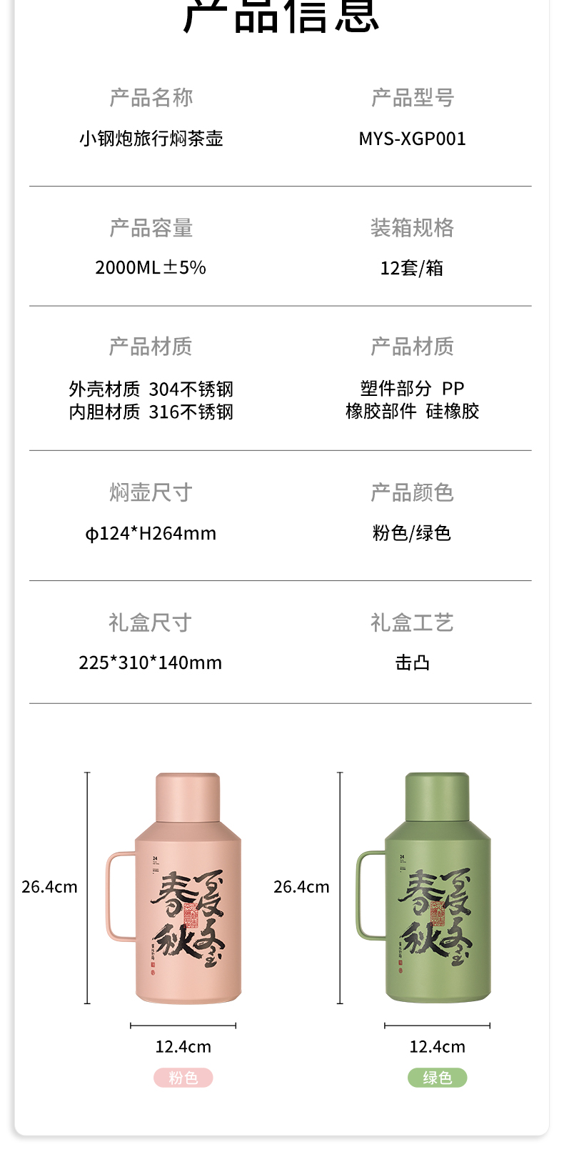 茗元素小钢炮春夏秋冬绿色新配色焖茶壶2000mlPA