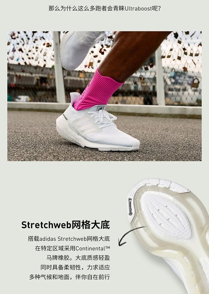 🔸鞋跟内部含有囊袋式设计,打造袜套般舒适贴合脚感,避免后跟滑动~🔸全掌Boost中底,使用有了具有减震,回弹等高科技性能的Boost材料~与Ultraboost 20相比 Boost材质含量增加了6% 🔸搭载adidas Stretchweb网格大底,在特定区域采用ContinentalTM马牌橡胶。大底质感轻盈同时具备柔韧性,力求适应多种气候和地面~Primeknit+ FORGED鞋面~弹力透气,设计别致,上脚完全不会有压迫感和拘束感~