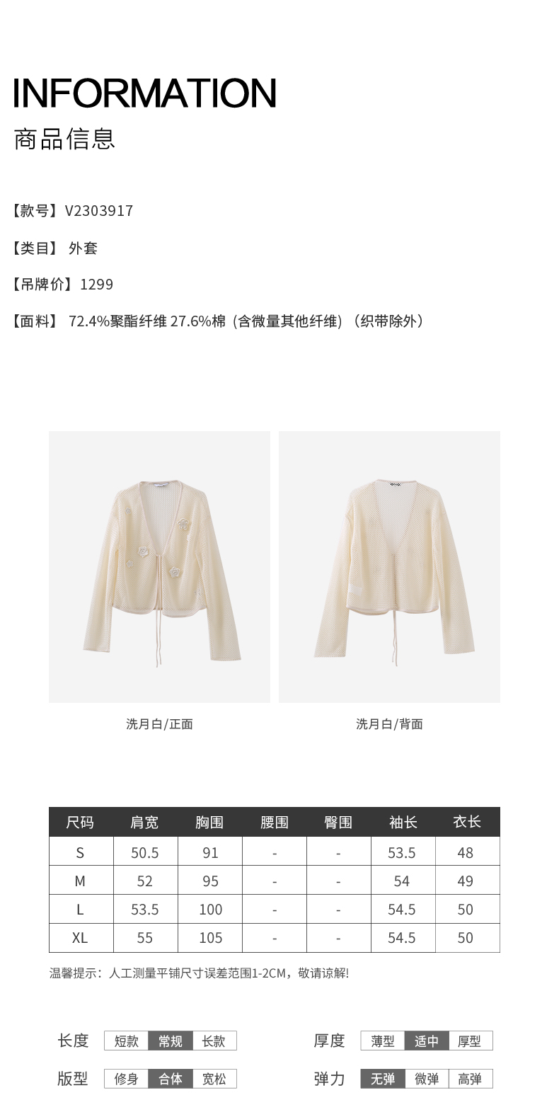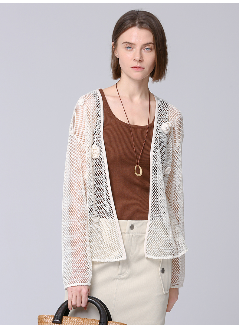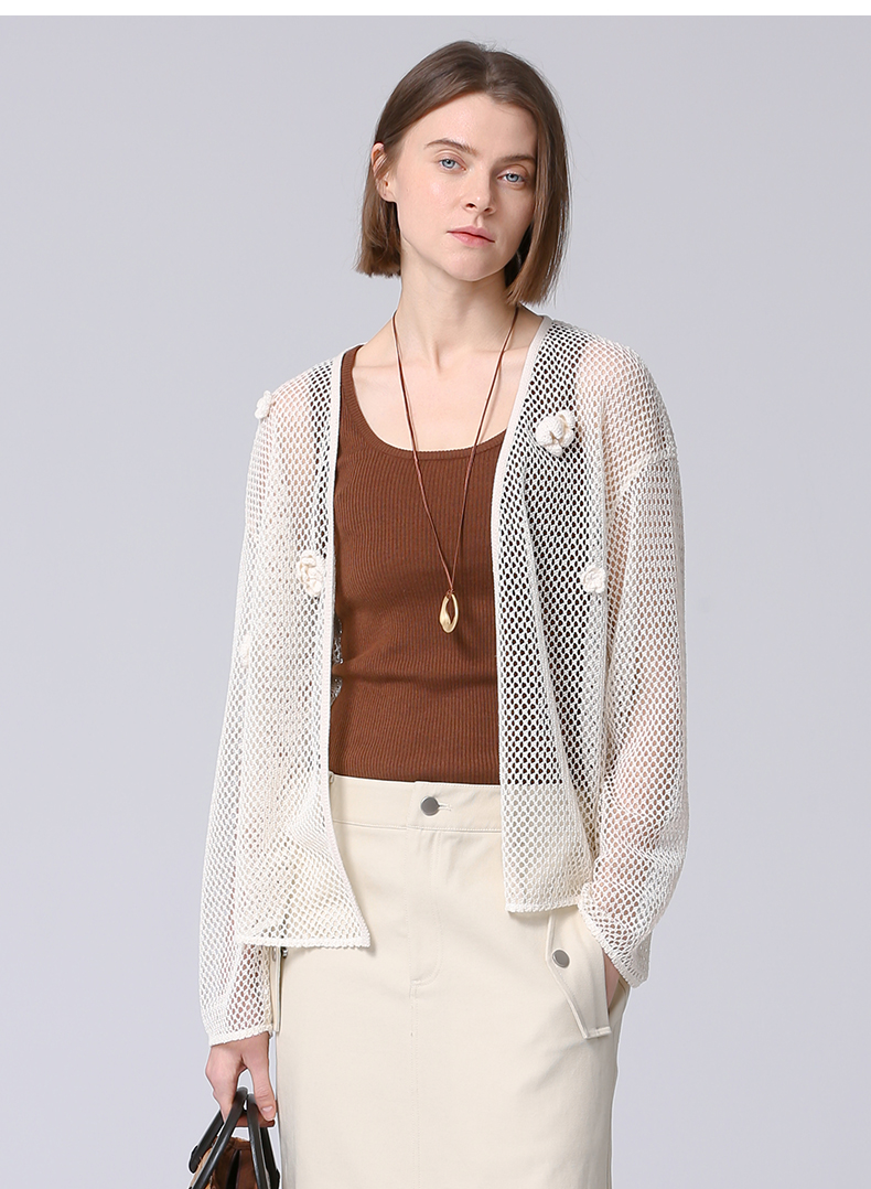VIMAGE纬漫纪立体花朵装饰网眼罩衫显瘦百搭针织开衫2025夏季新款V2303917