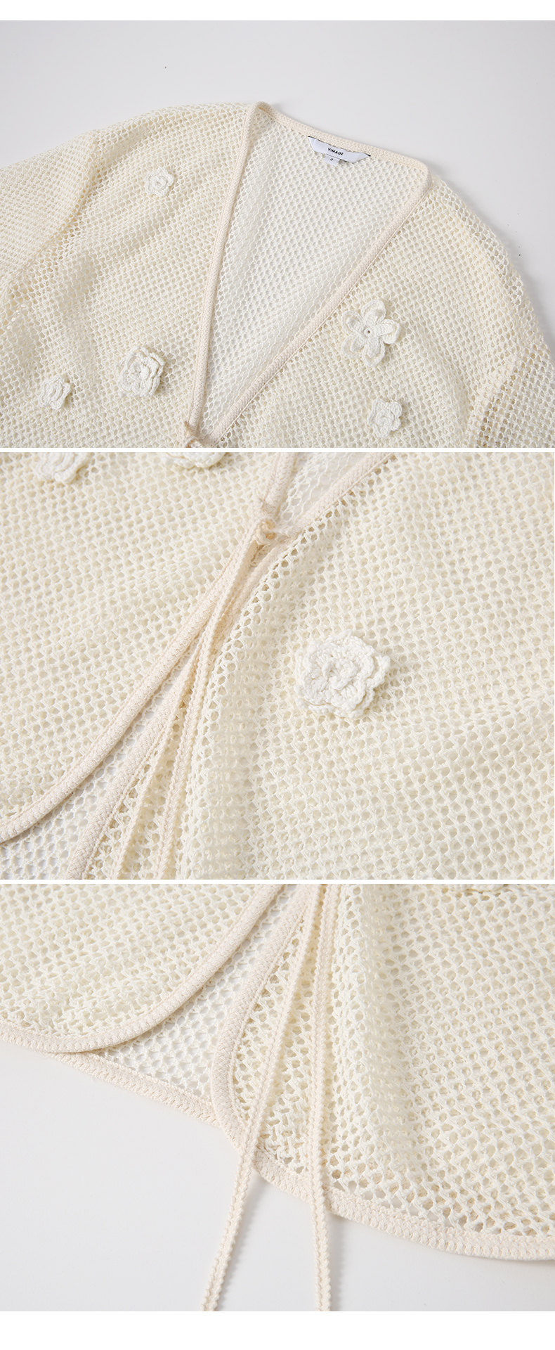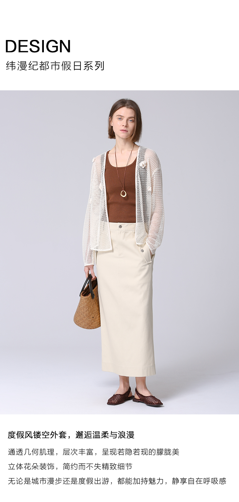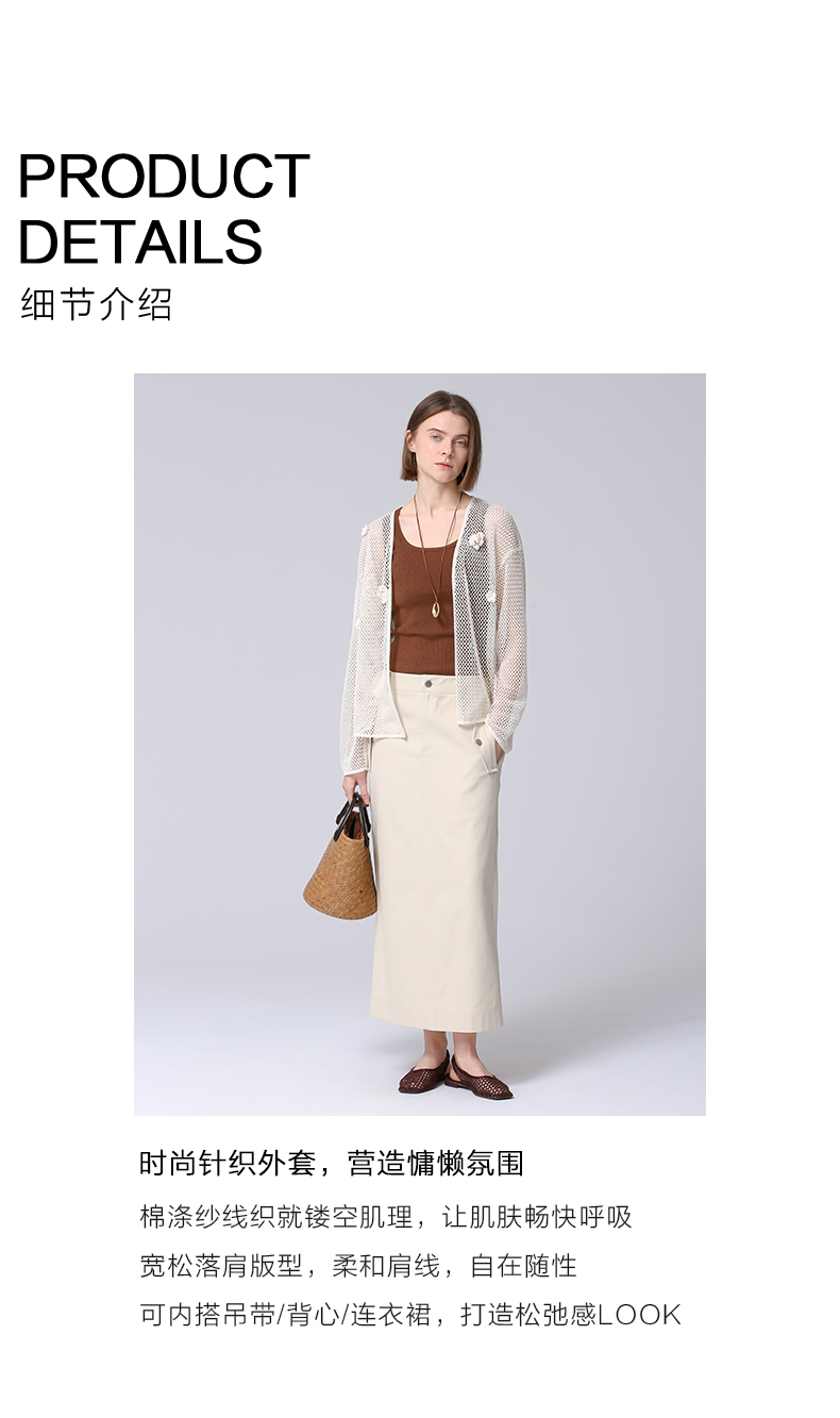 VIMAGE纬漫纪立体花朵装饰网眼罩衫显瘦百搭针织开衫2025夏季新款V2303917