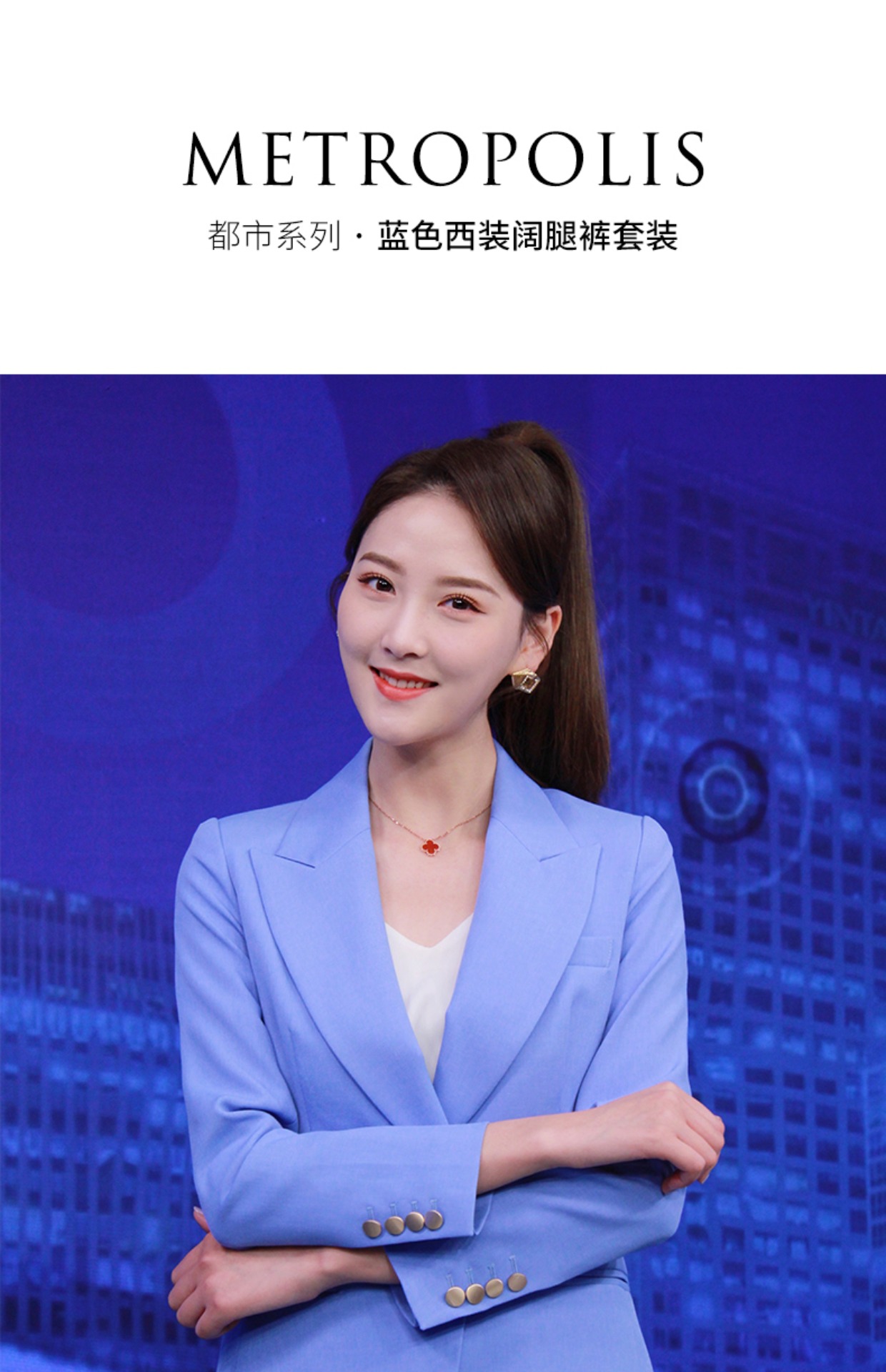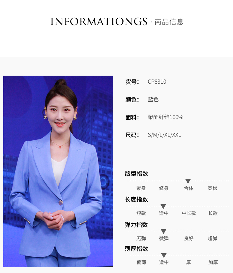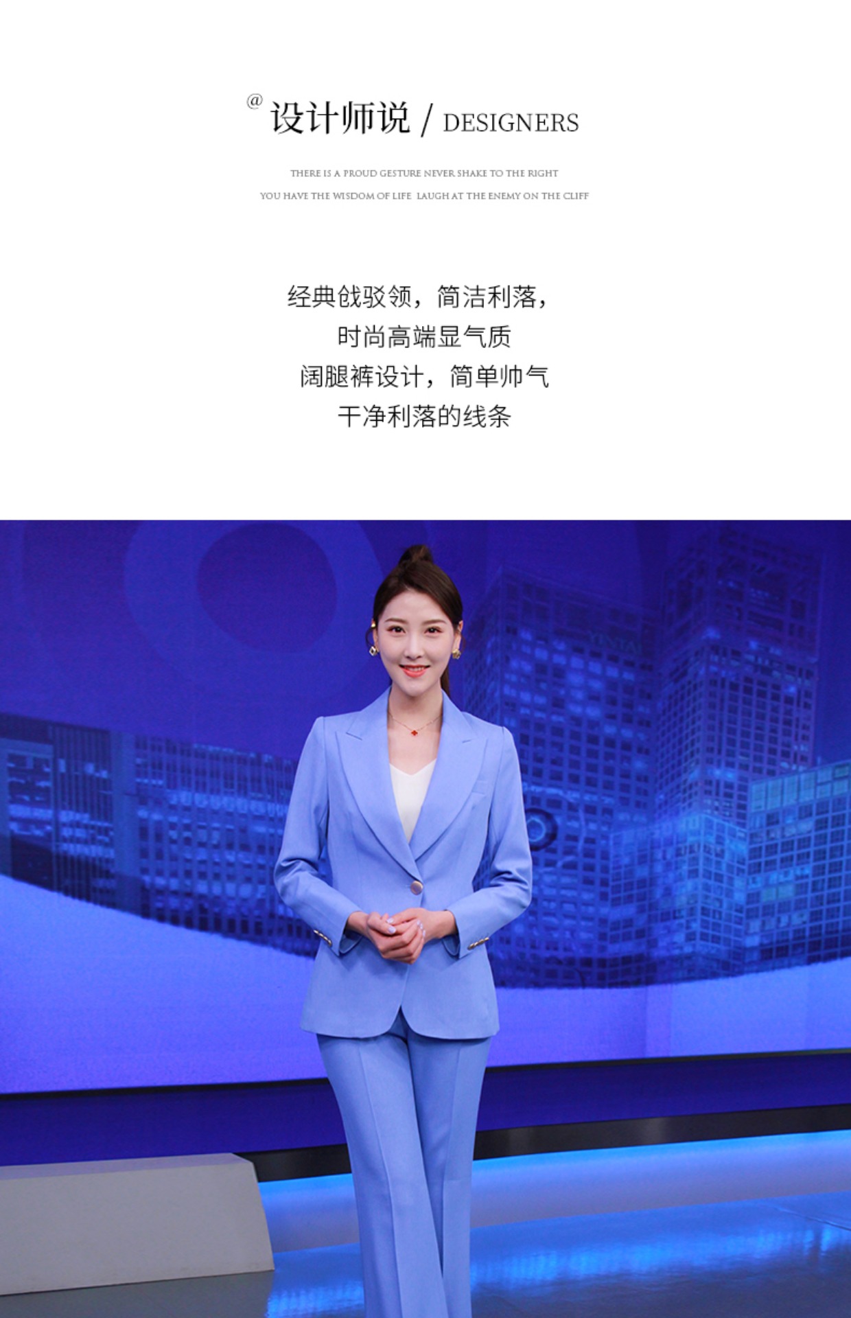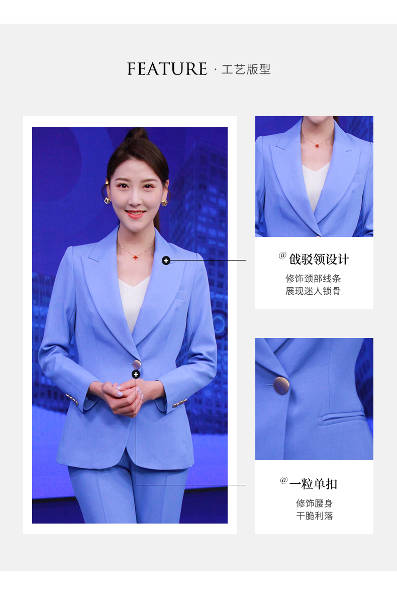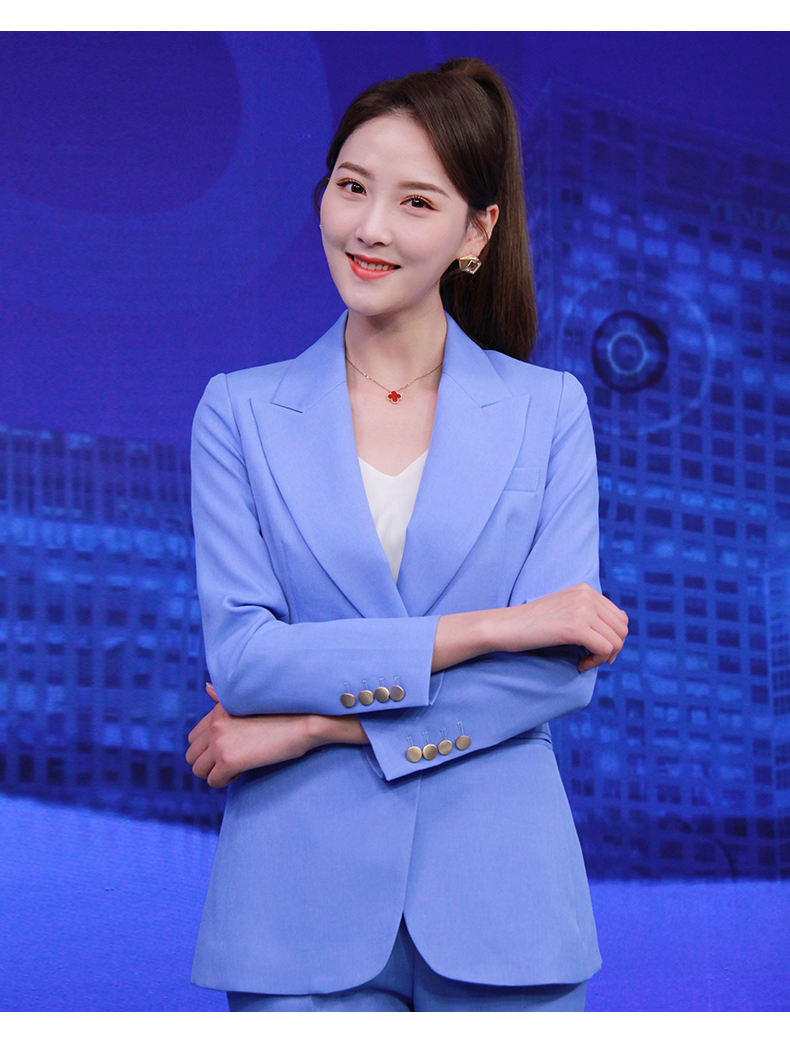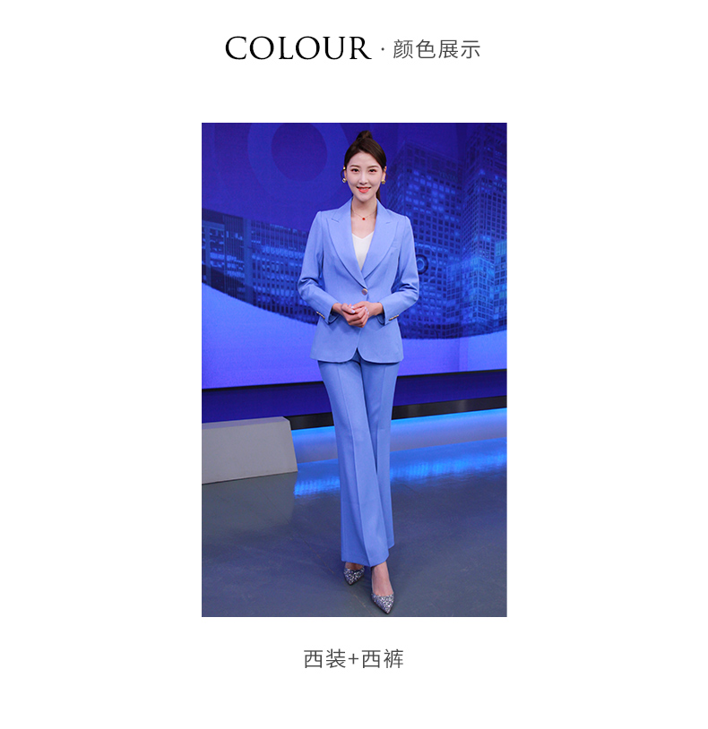 IWY/高级感蓝色西服套装新款西装阔腿裤面试正装主持人职业装olCP8310