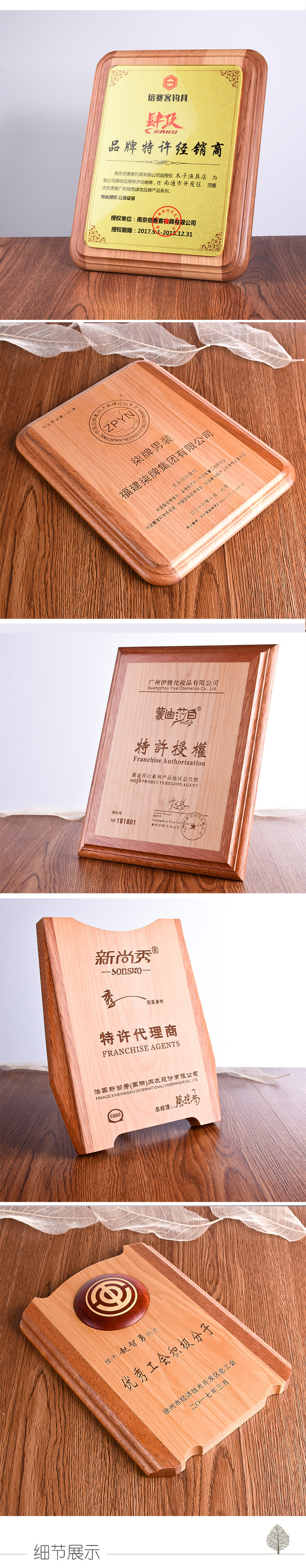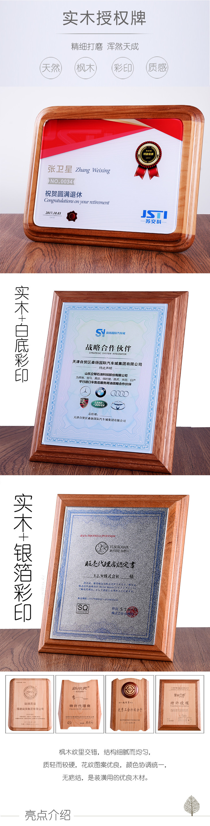 创意实木授权牌加盟牌定做高档实木牌匾奖牌代理商荣誉证书定制