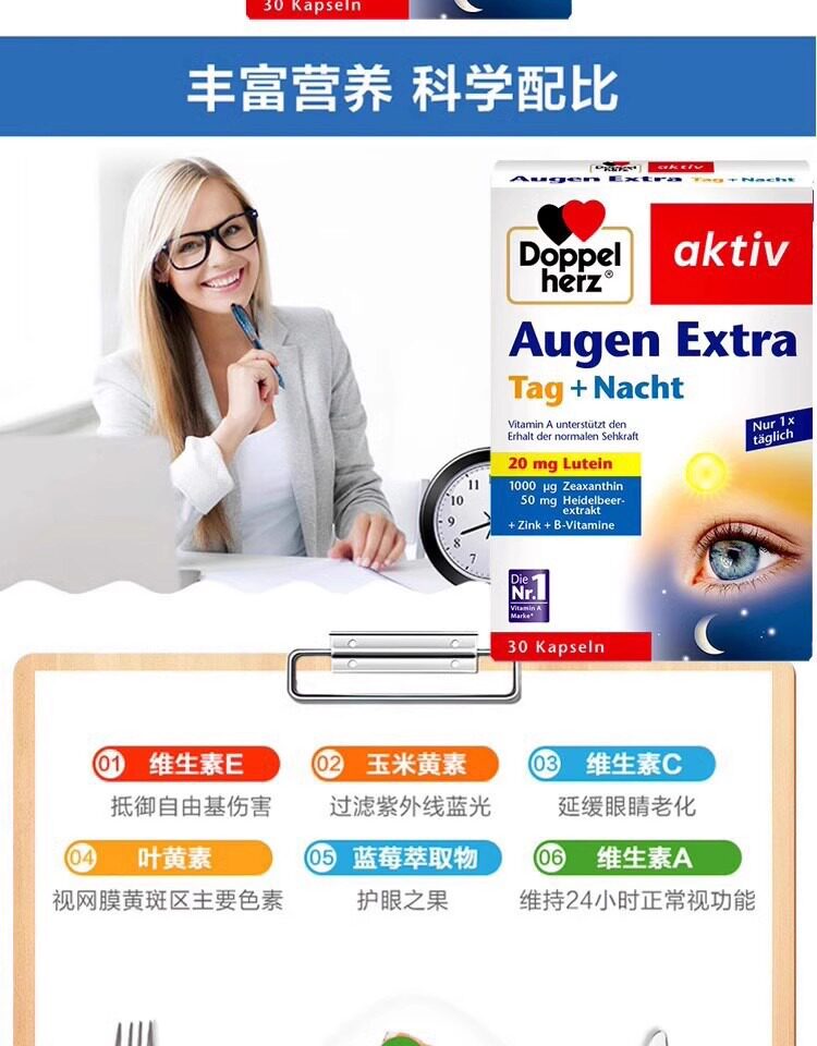 【保税】德国双心蓝莓叶黄素护眼胶囊30粒,每日一粒 日夜眼护眼胶囊专利成人眼疲劳