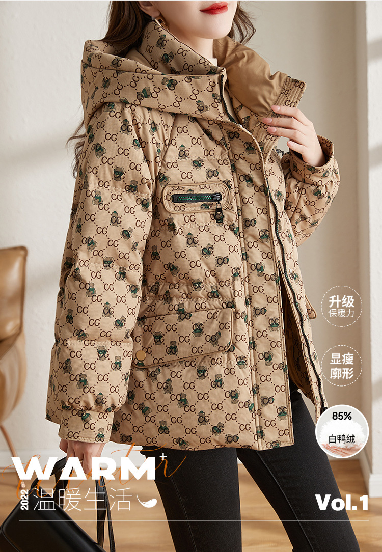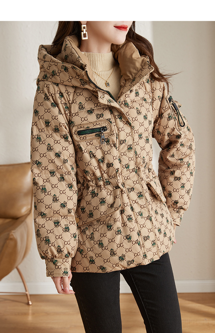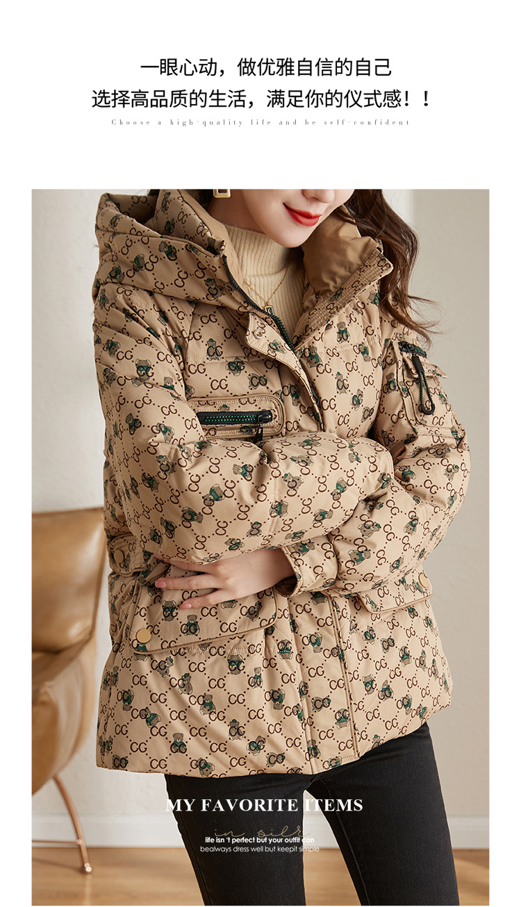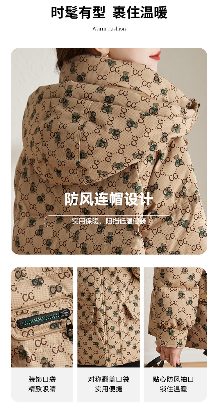 防风连帽驼色小个子短外套鸭绒羽绒服ZS-9112