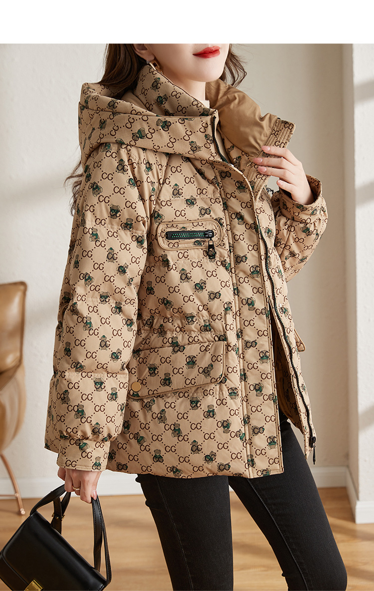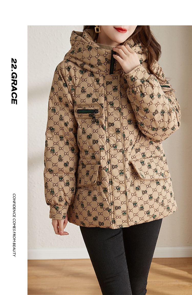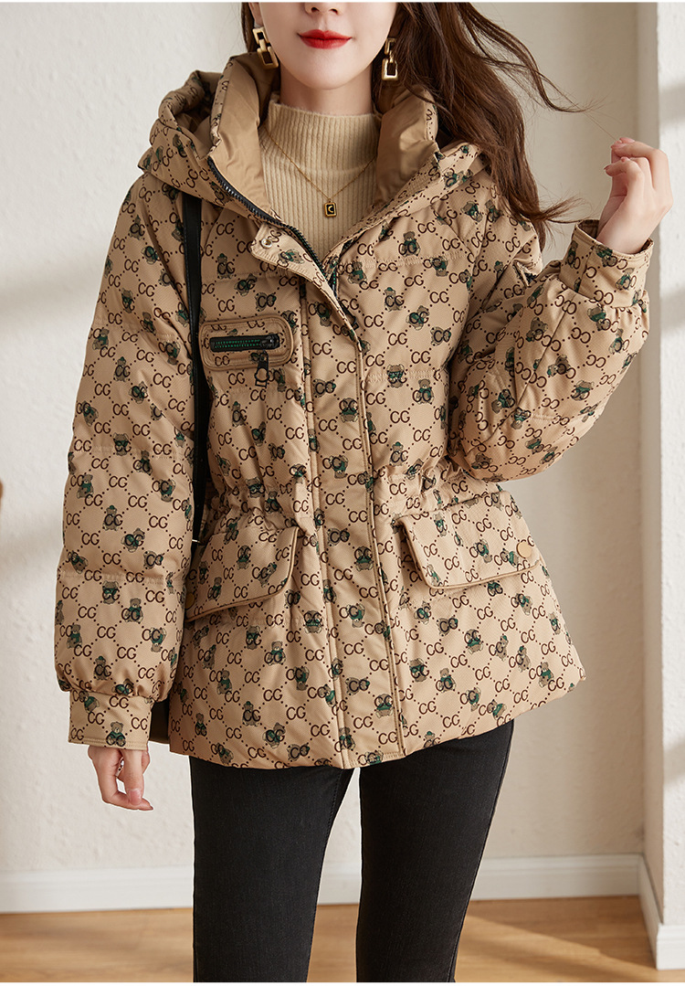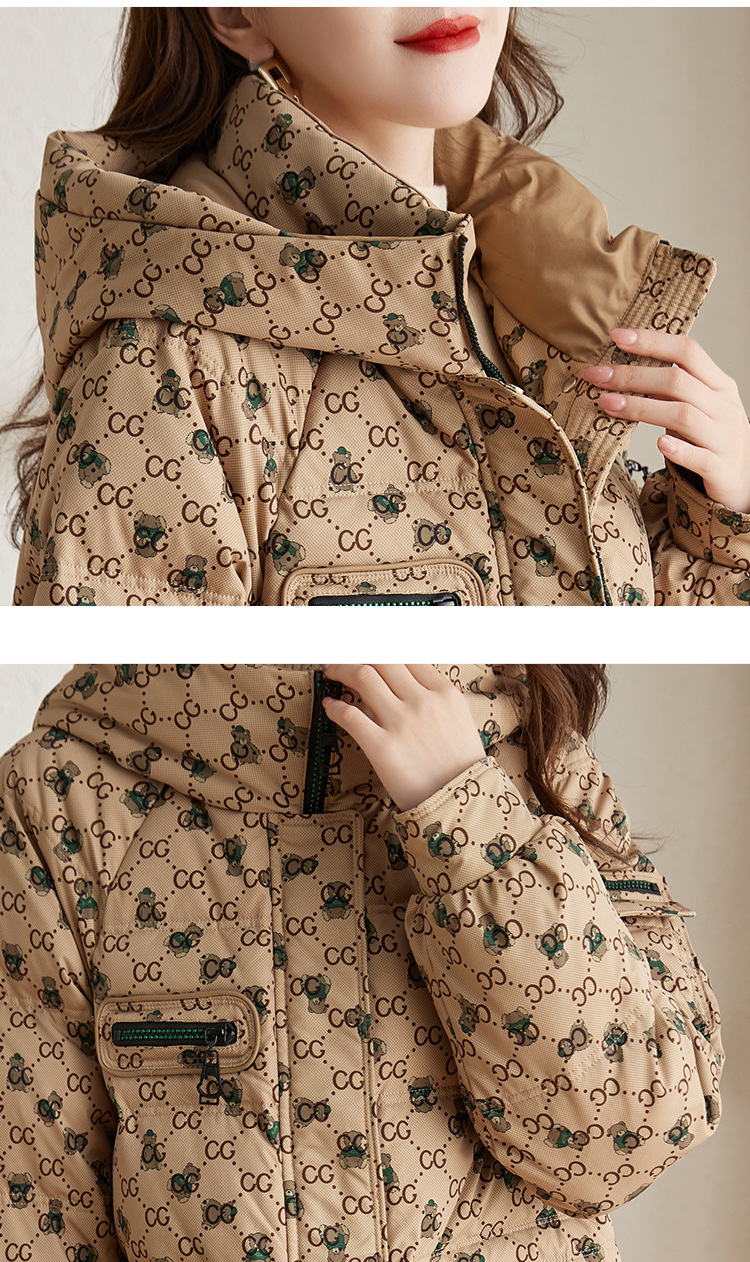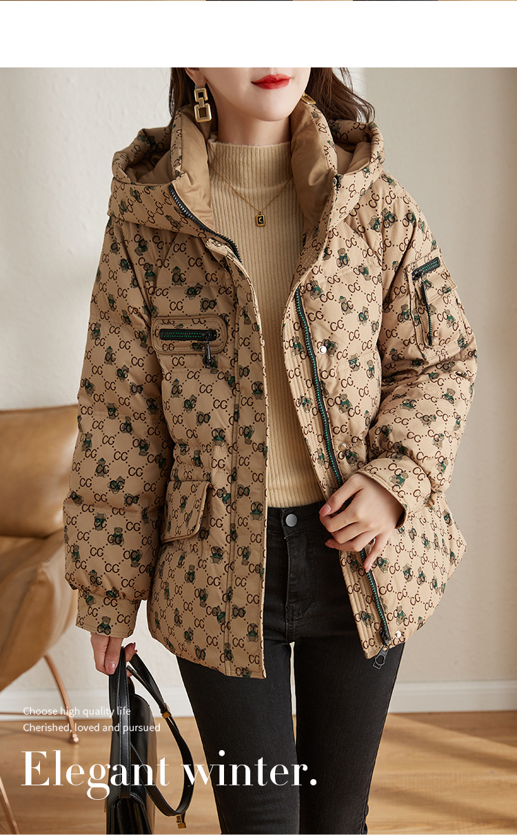 防风连帽驼色小个子短外套鸭绒羽绒服ZS-9112