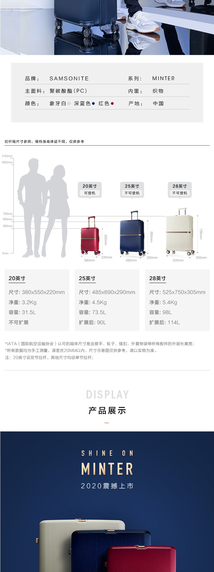 新秀丽MINTER系列小红书达人同款新品时尚流金箱PC材质拉杆箱HH5