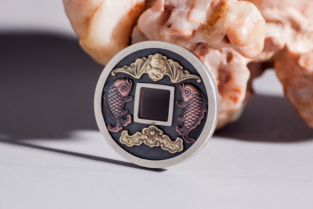 矩德泉坊 纯银手作 永乐通宝背吉庆有余(3.3厘米镶嵌版)gq220300534