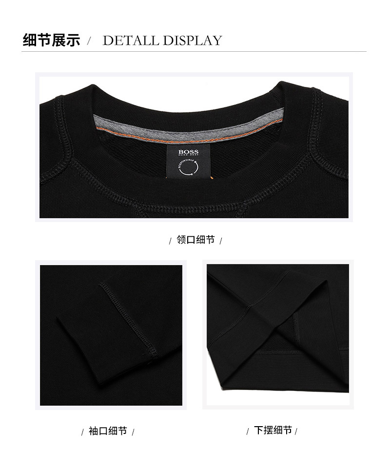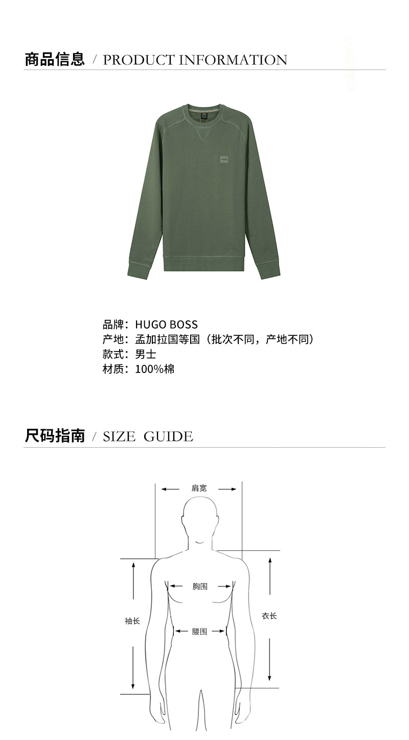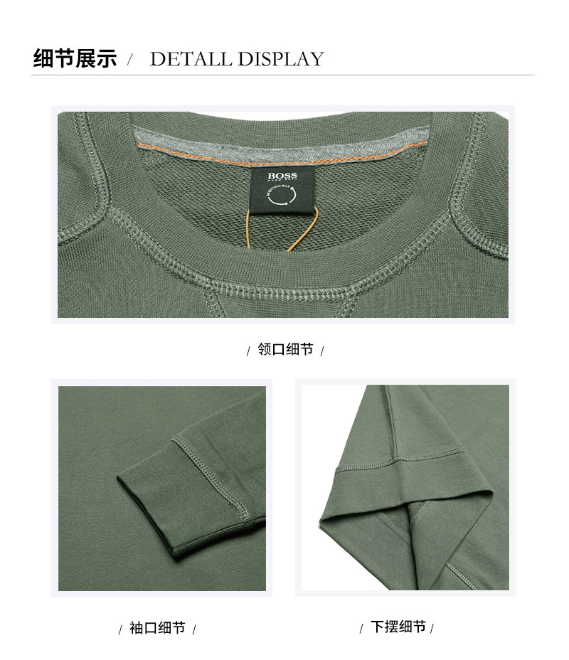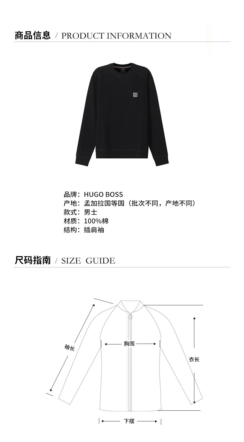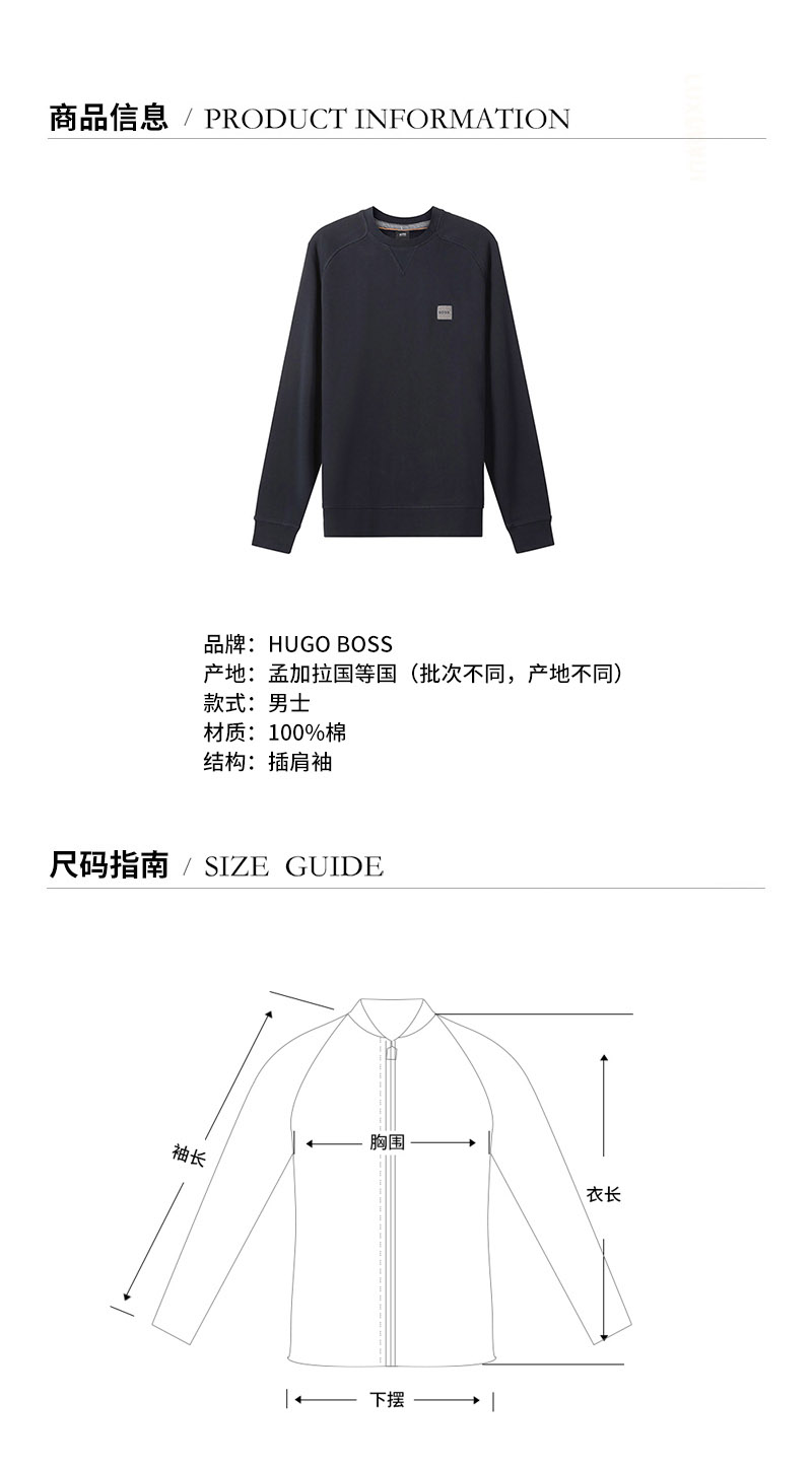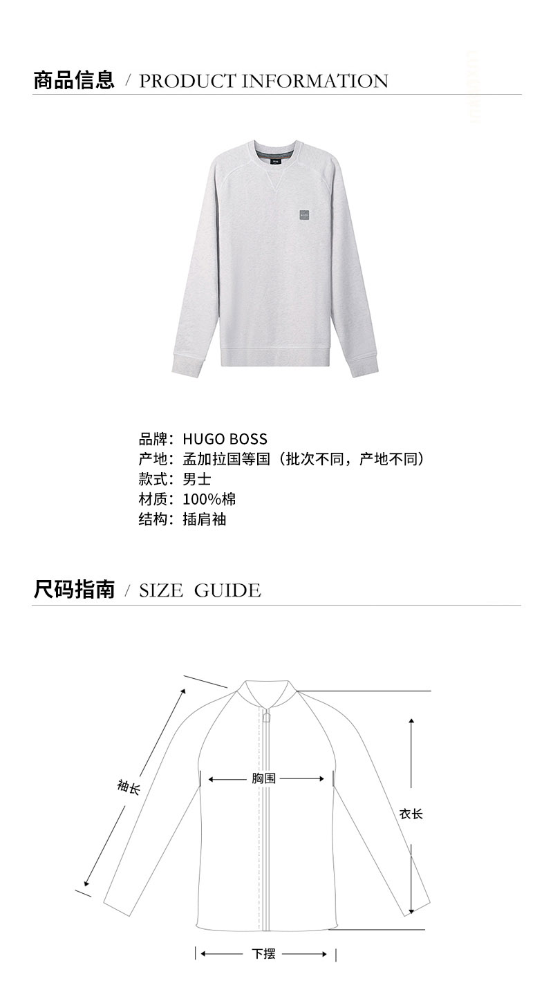 HUGO BOSS/雨果博斯 【22春夏新款】 男士棉质宽松版圆领长袖卫衣运动衫徽标饰片 50462769