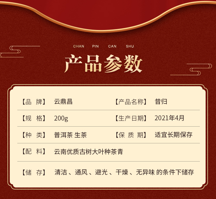 云鼎昌【2021年昔归】2021年临沧昔归古树纯料普洱生茶200g