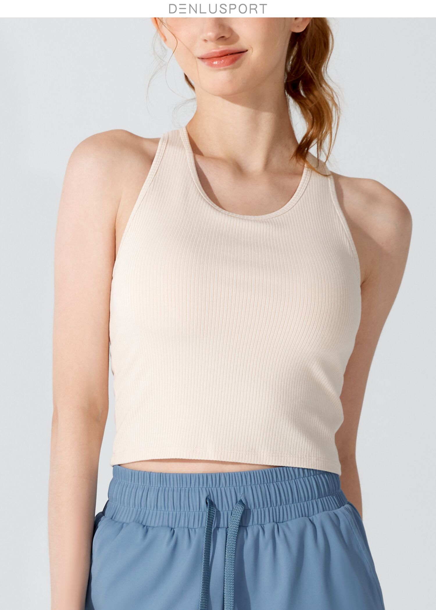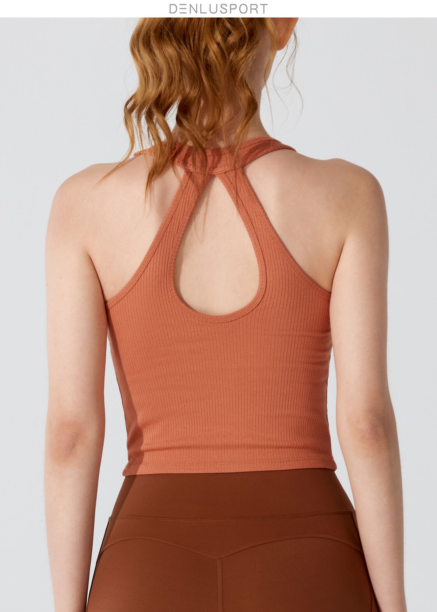 新款水滴镂空螺纹美背DY66162可拆卸胸垫自由随性圆领复古螺纹百搭JL-YW292