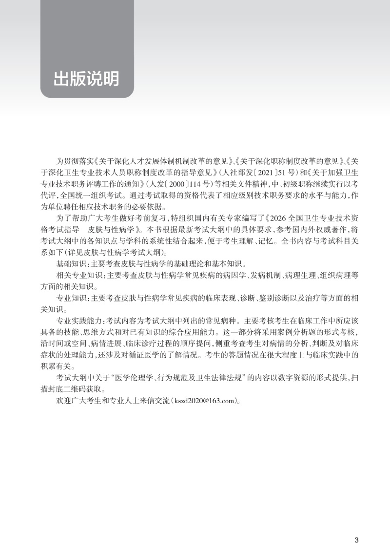 2026皮肤与性病学 全国卫生专业技术资格考试指导 全国卫生专业技术资格考试用书编写专家委员会编写 (中级) 338 人民卫生出版社