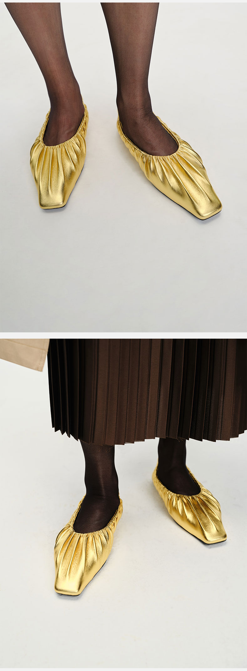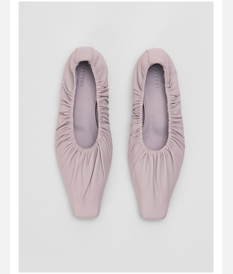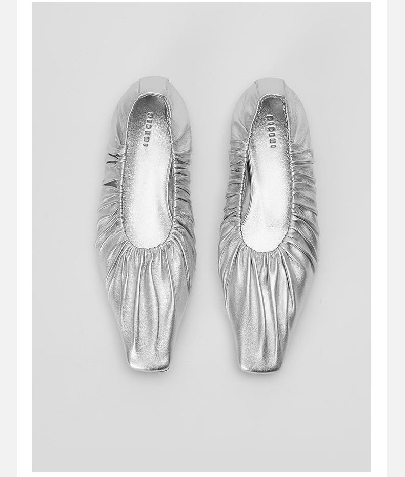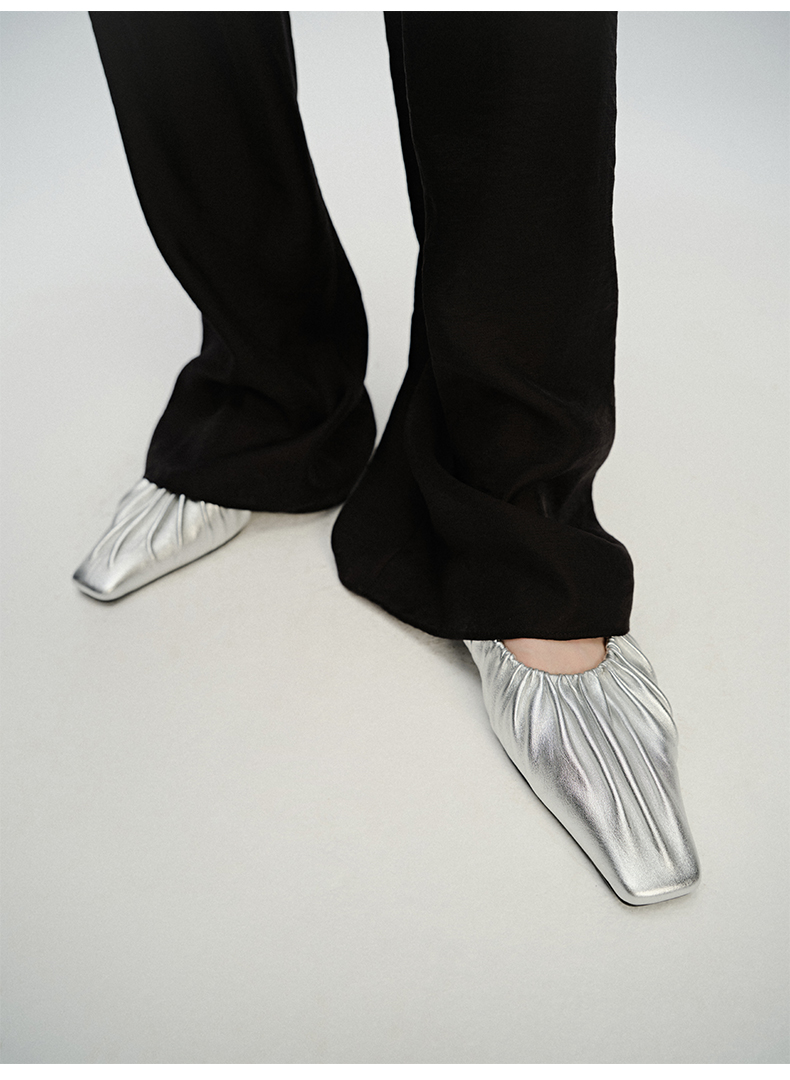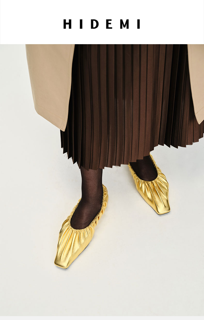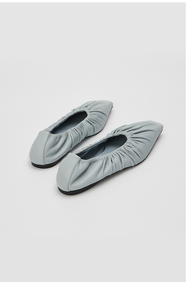 HIDEMI 褶皱小羊皮方尖头平底鞋 黑色/马卡龙蓝/酒红色/银色
