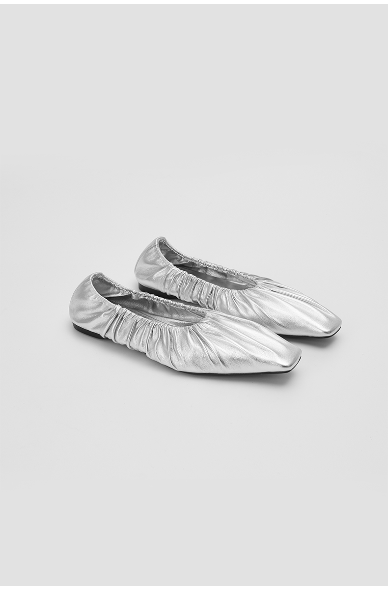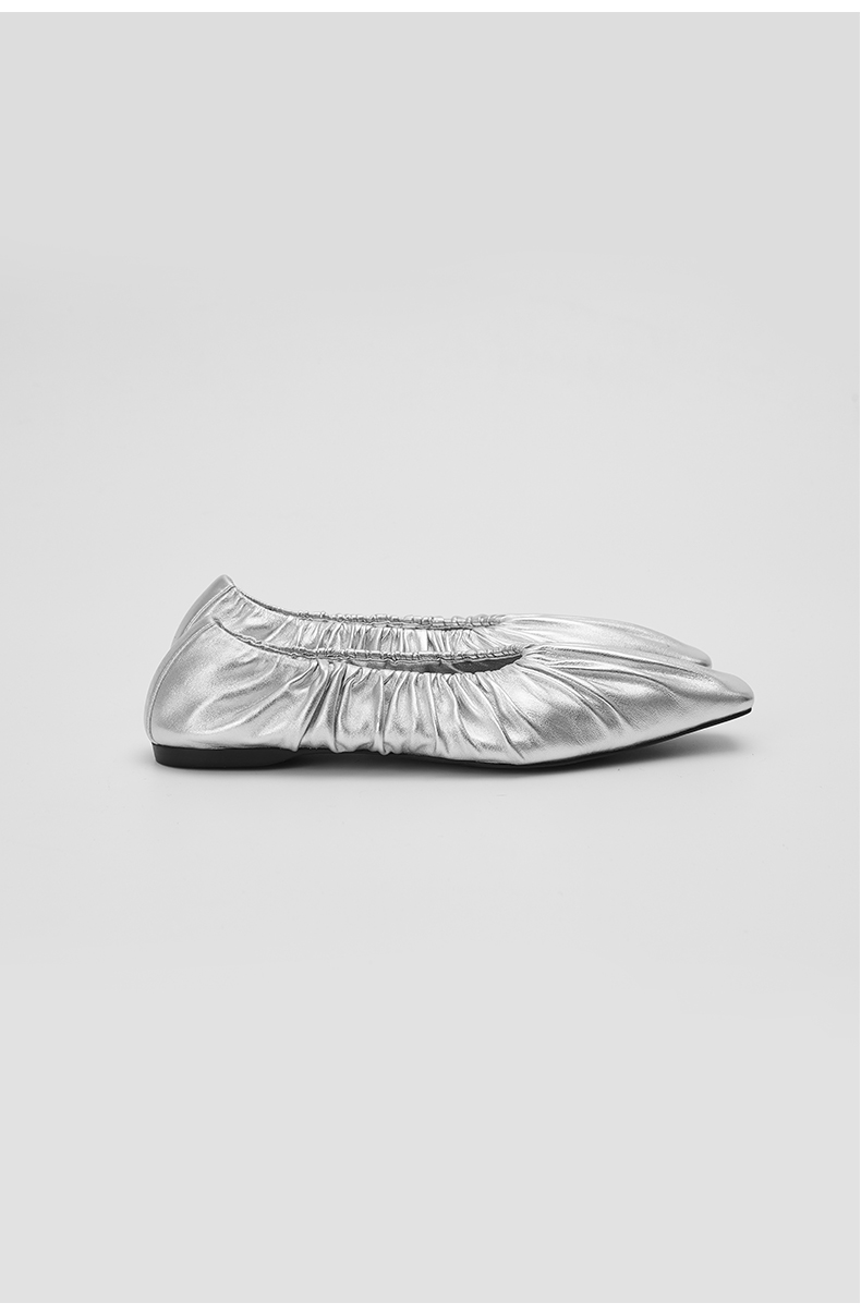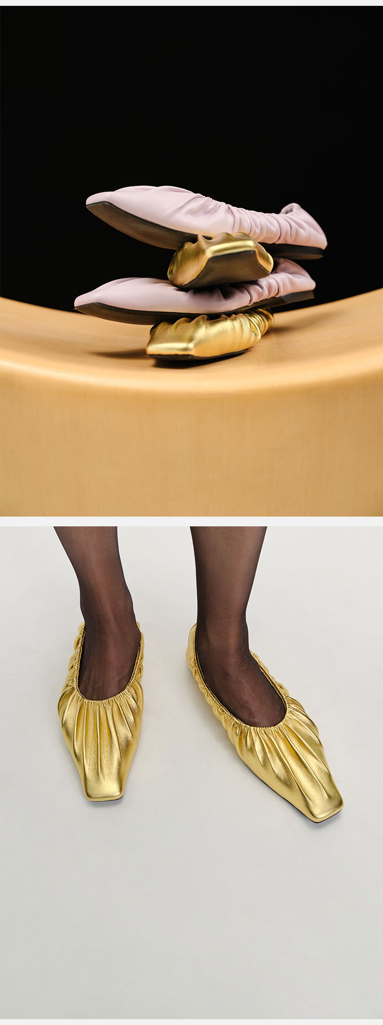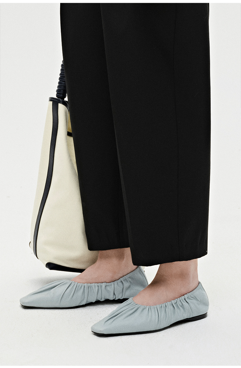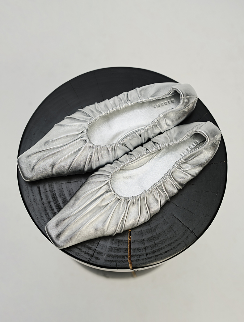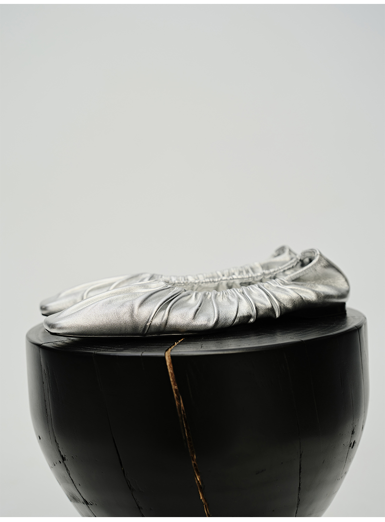 HIDEMI 褶皱小羊皮方尖头平底鞋 黑色/马卡龙蓝/酒红色/银色