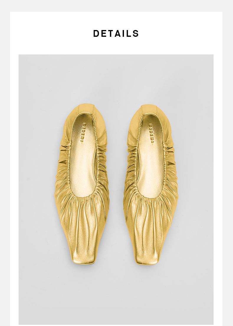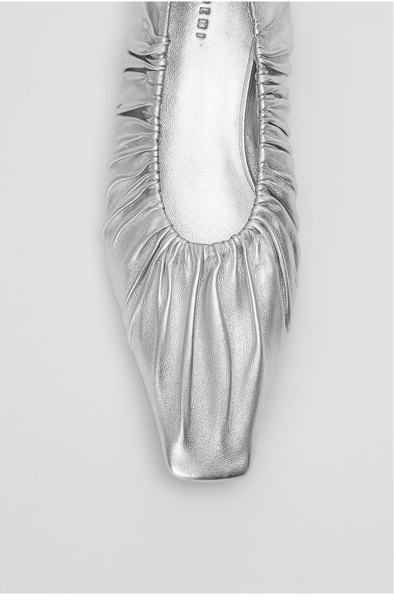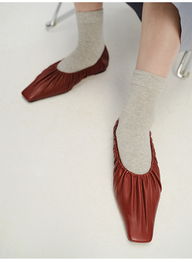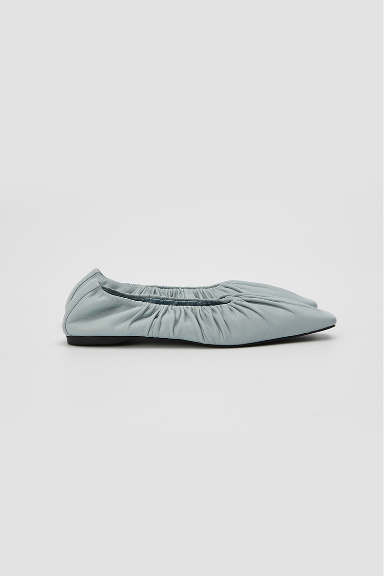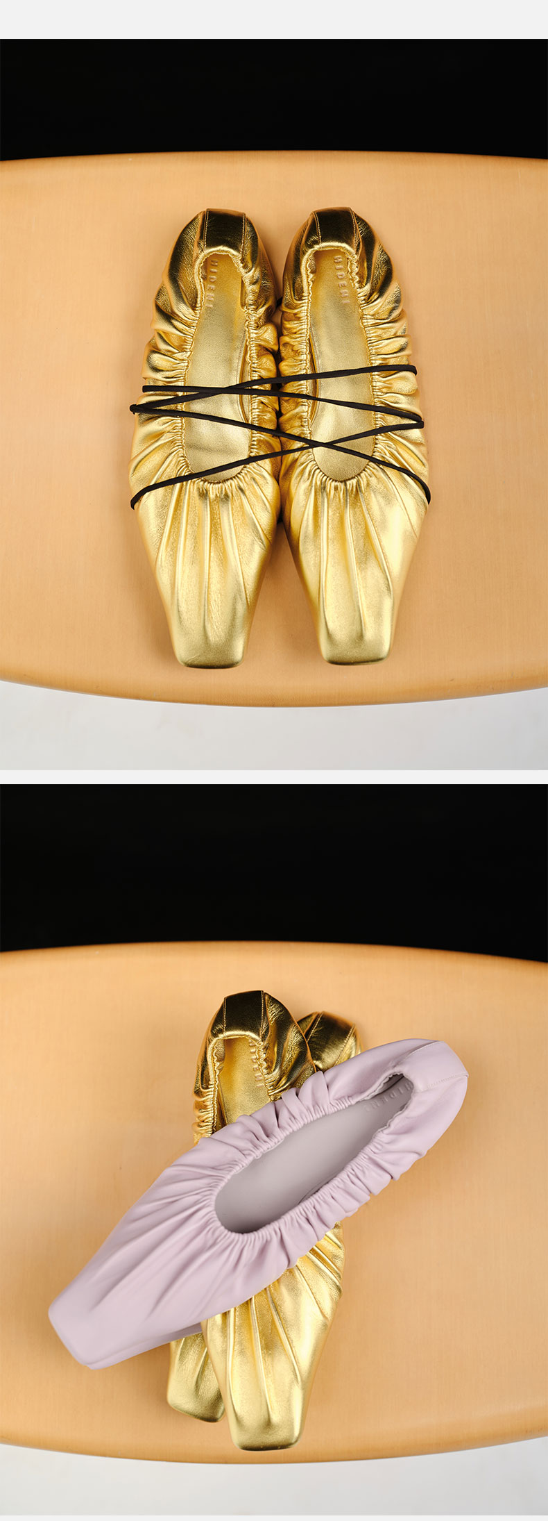 HIDEMI 褶皱小羊皮方尖头平底鞋 黑色/马卡龙蓝/酒红色/银色