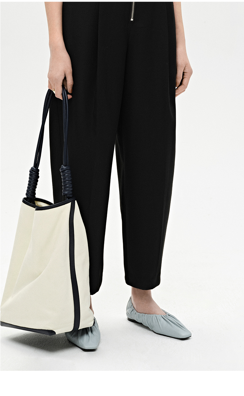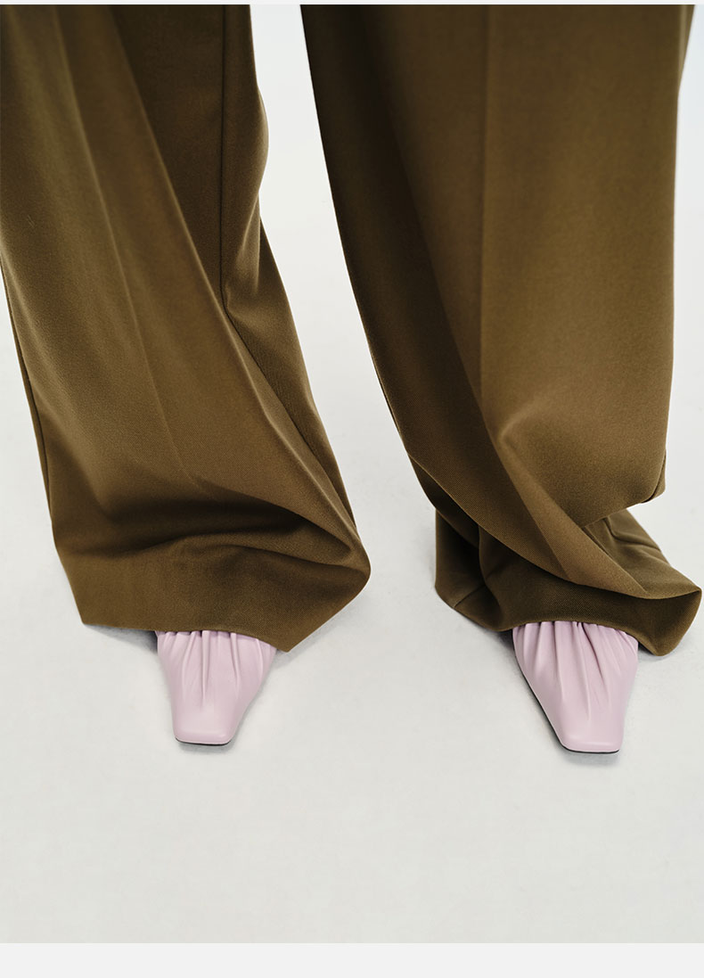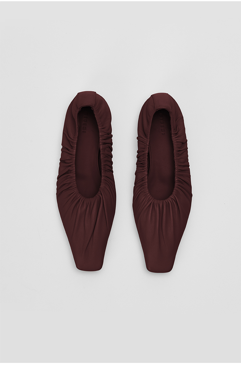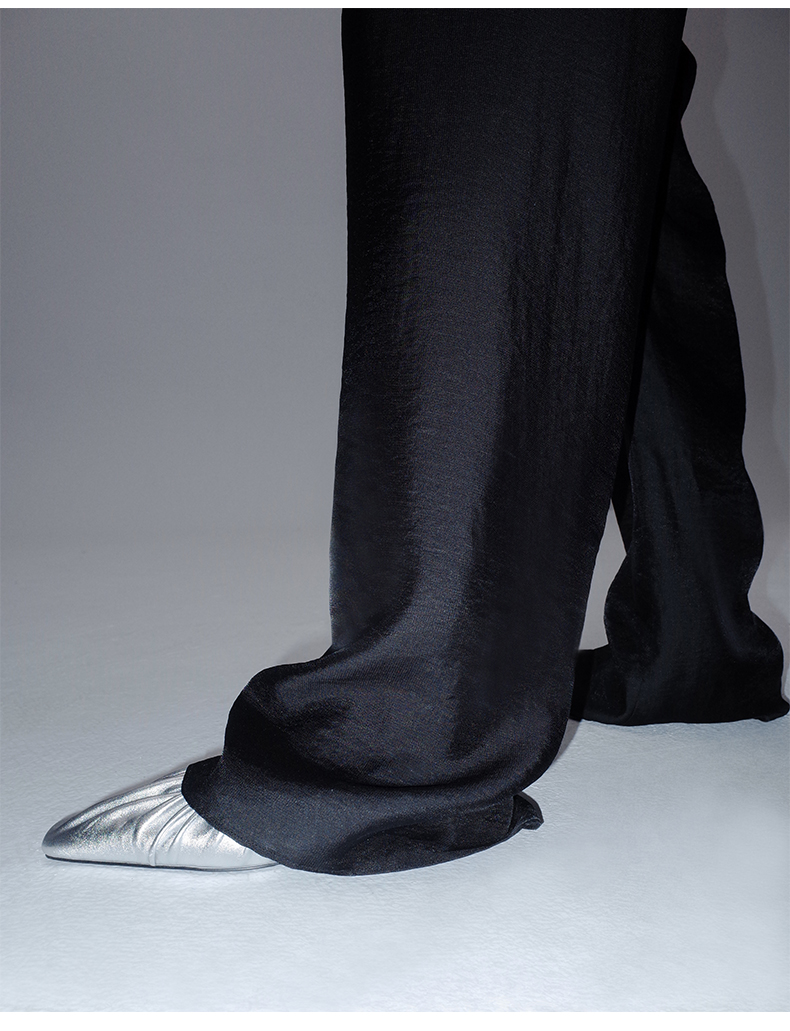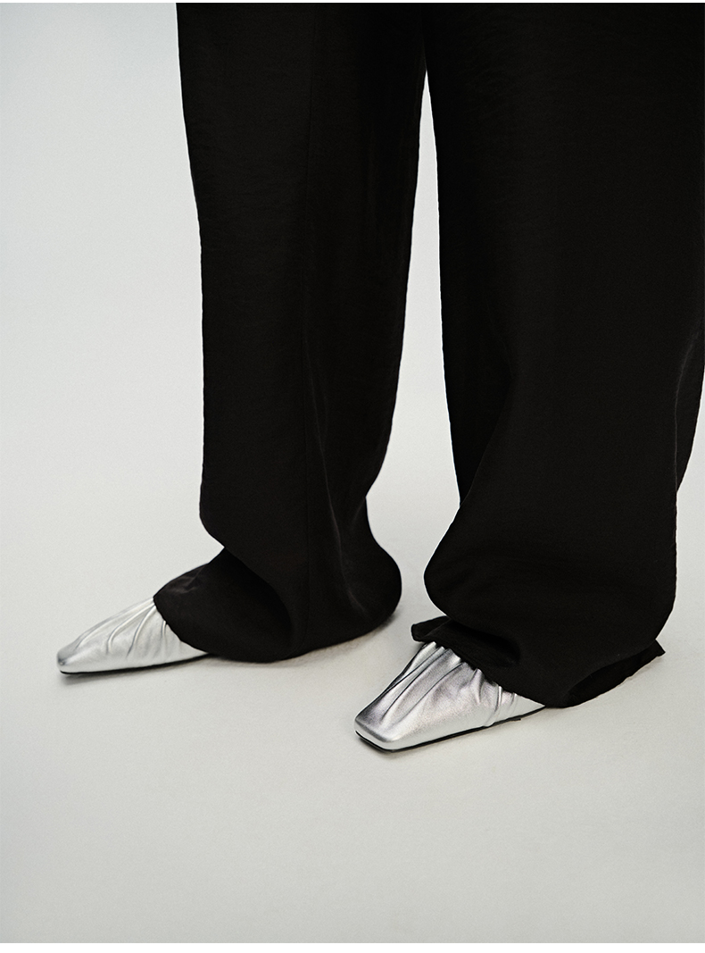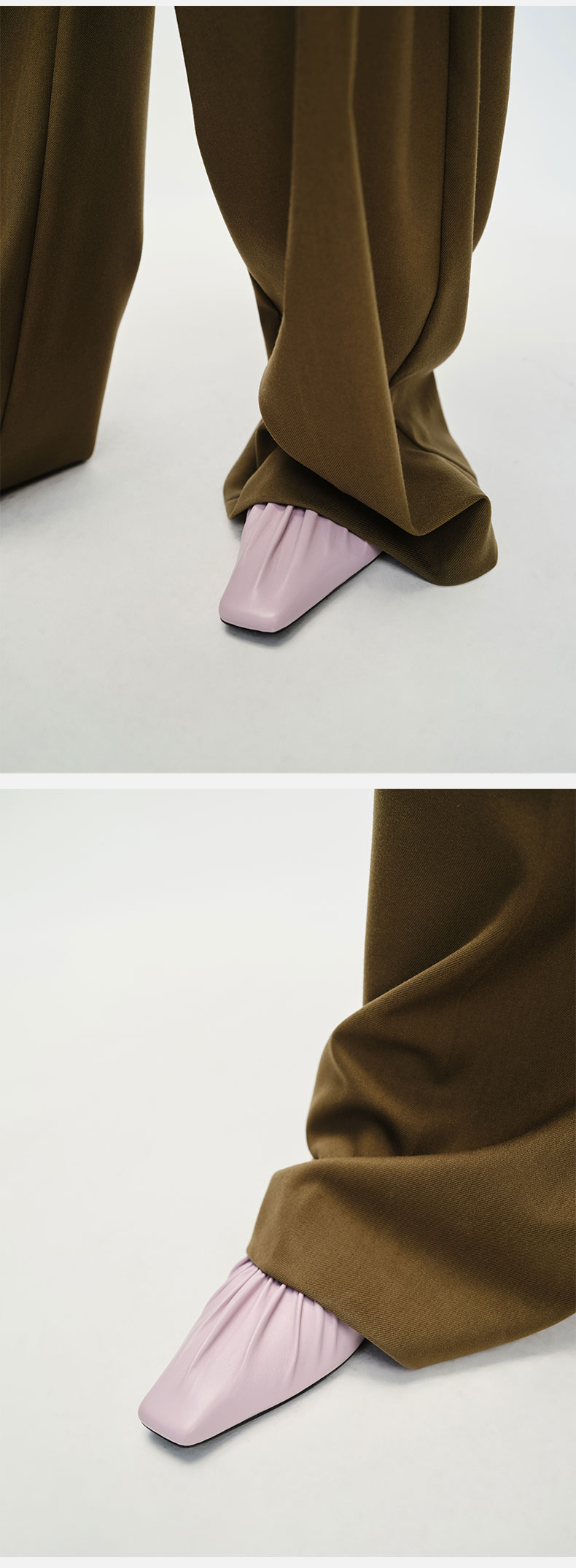HIDEMI 褶皱小羊皮方尖头平底鞋 黑色/马卡龙蓝/酒红色/银色