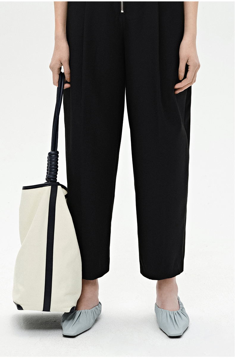 HIDEMI夜灰色简约不对称设计感一粒扣阔腿裤