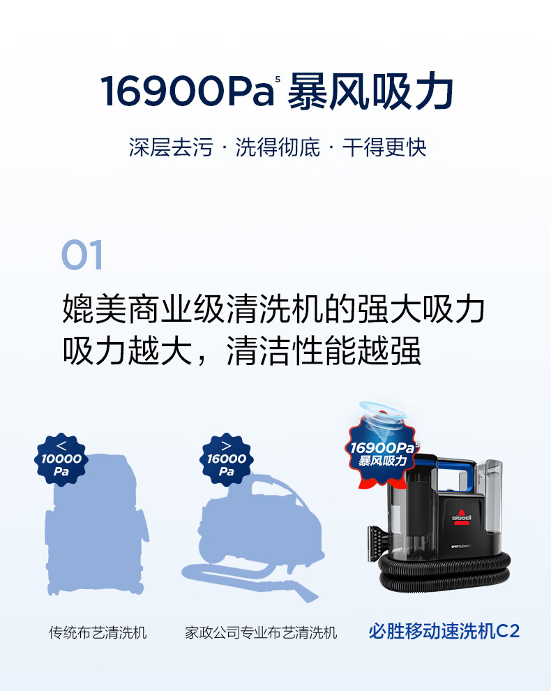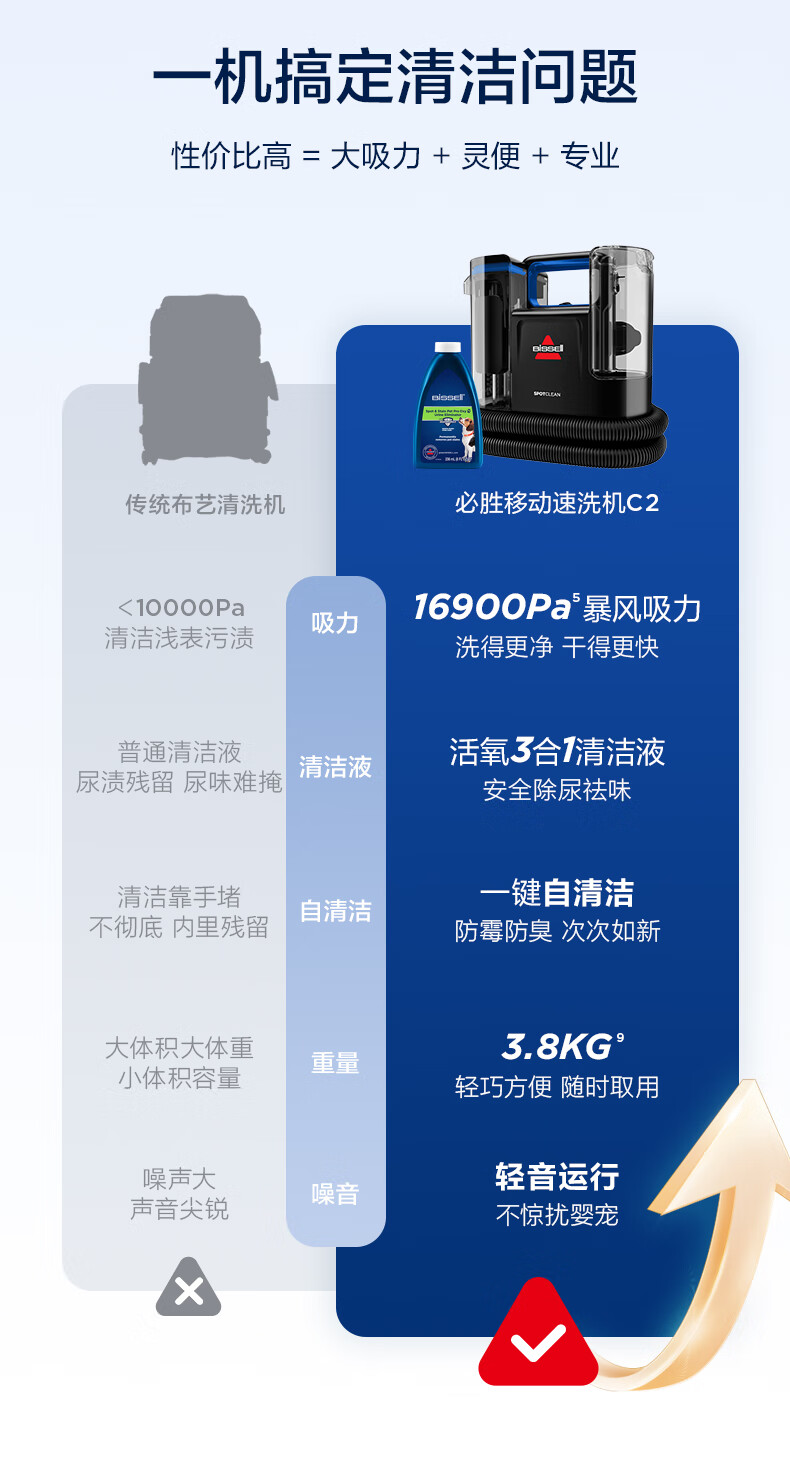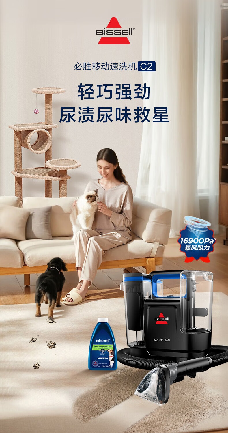 必胜(BISSELL)新品C2布艺清洗机多功能清洁机洗地毯沙发窗帘清洗机喷抽吸一体机 布艺沙发洗地毯神器3861Z 布艺清洗机新品C2-3861Z
