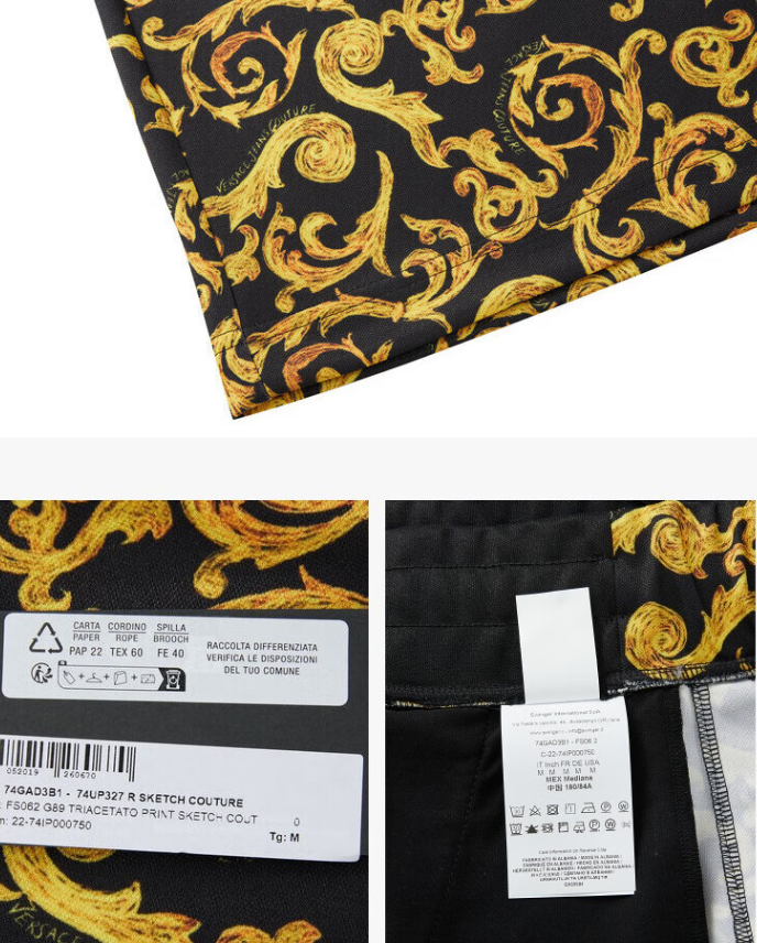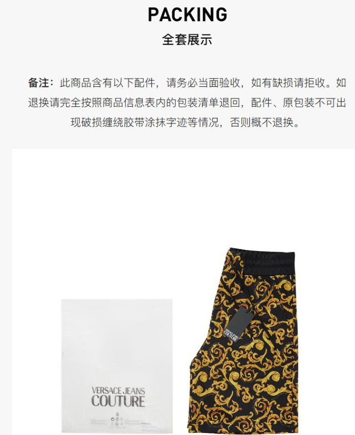 VERSACE JEANS 范思哲 男士巴洛克印花抽绳休闲短裤五分裤 七夕礼物 黑色 74GAD3B1 FS062 G89