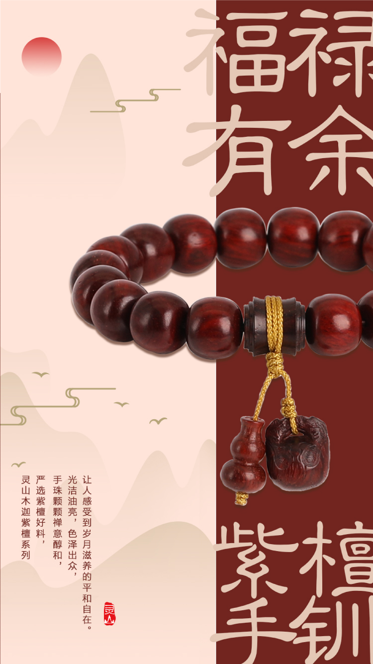 灵山木迦·福禄有余紫檀手钏