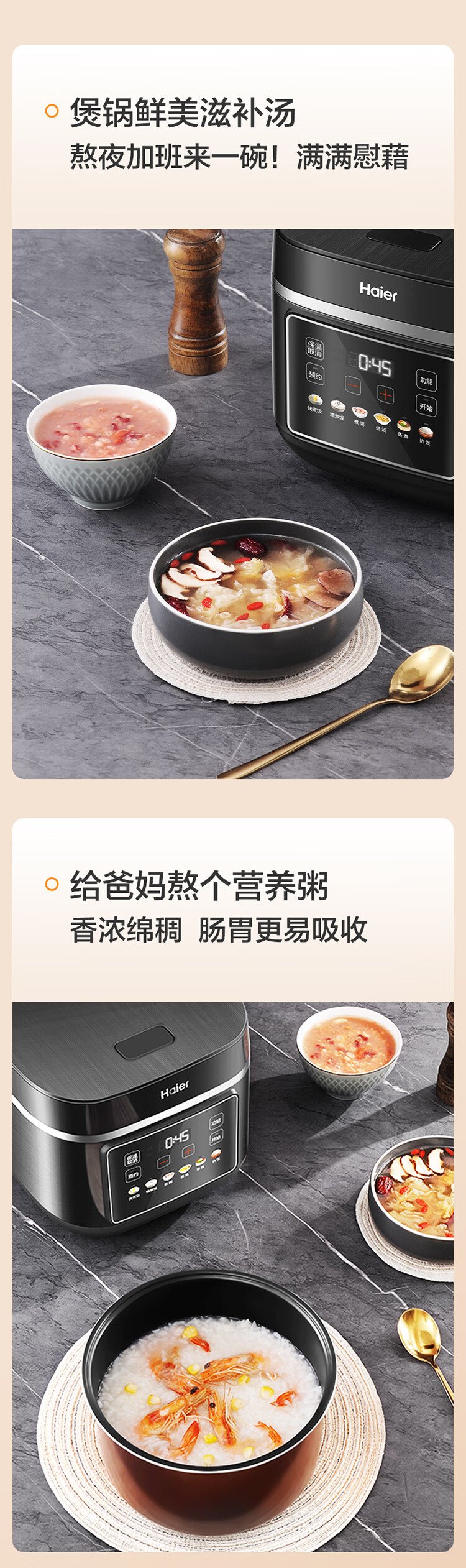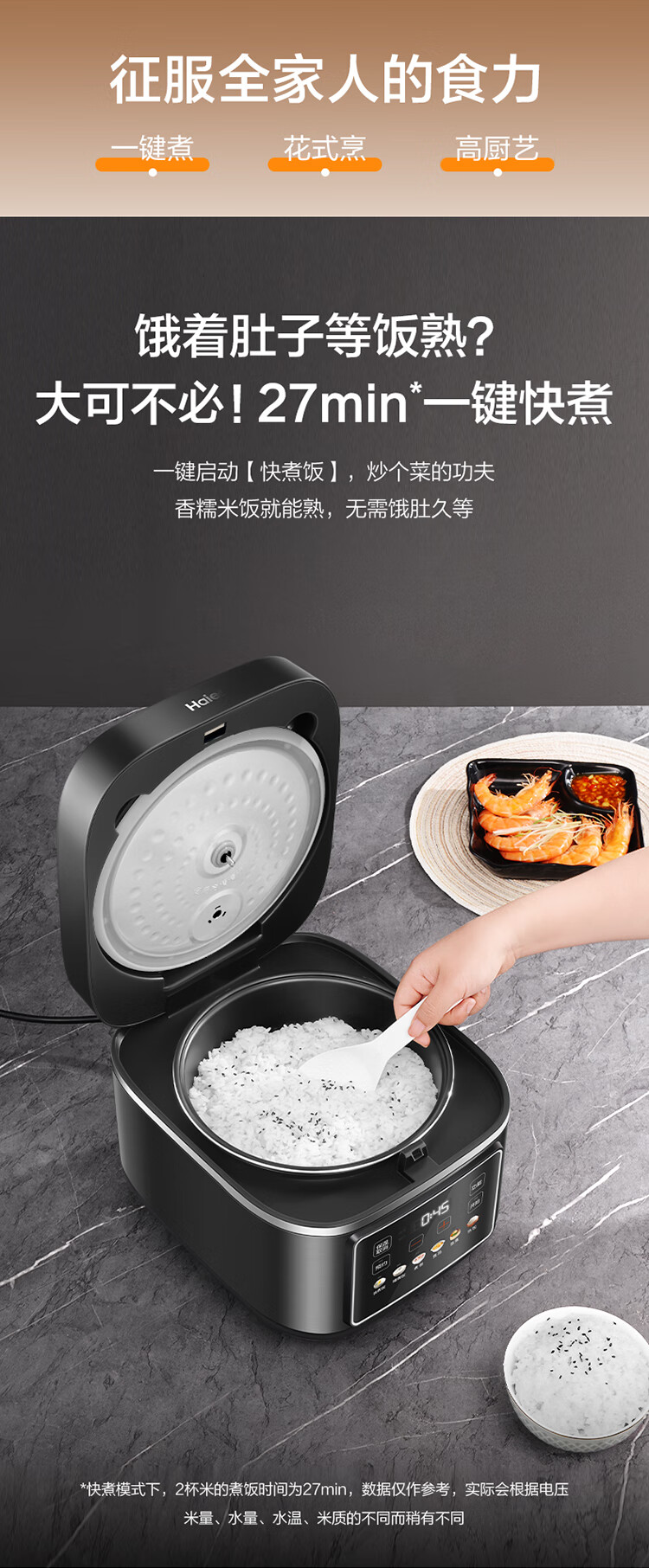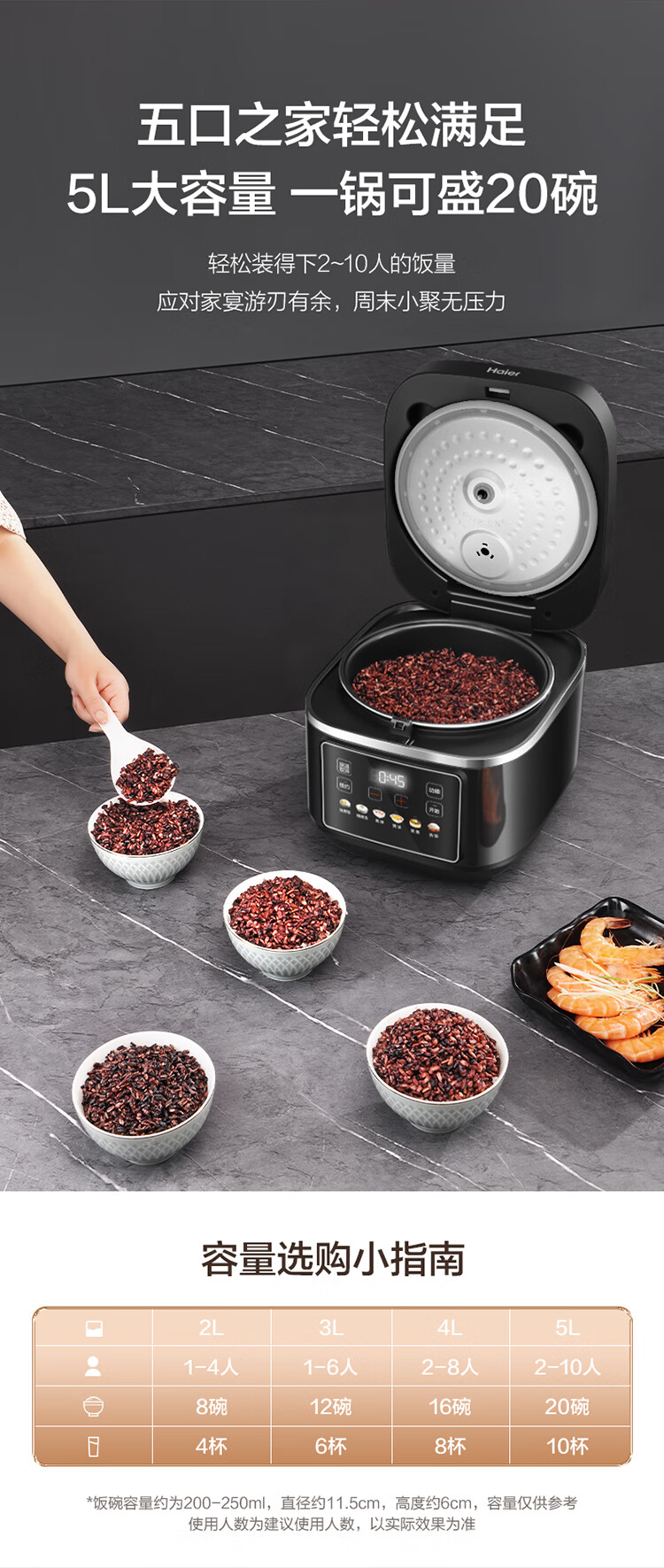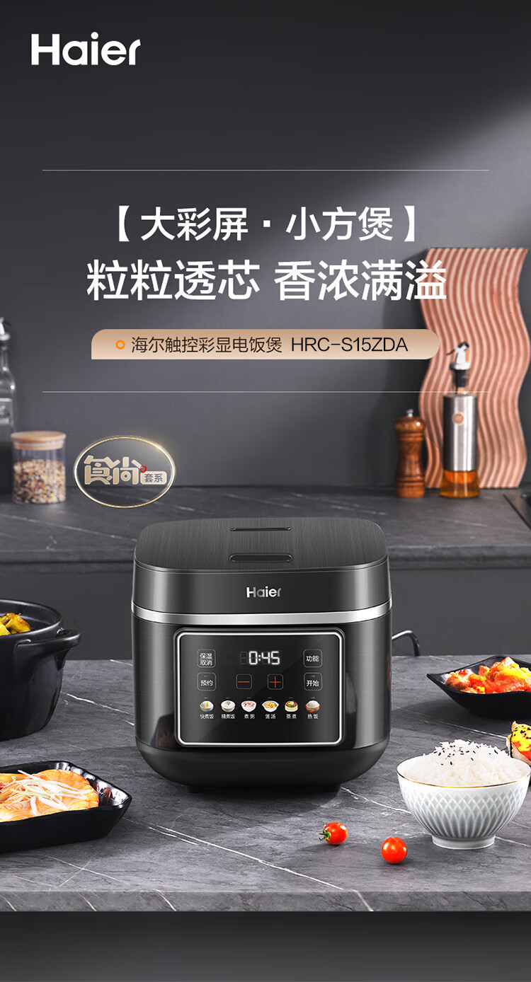 海尔电饭煲家用多功能家用易清洁微压无涂层智能预约不沾内胆米饭饭煲大容量5L HRC-S15ZDA
