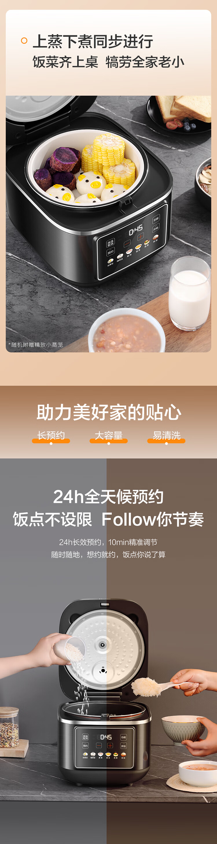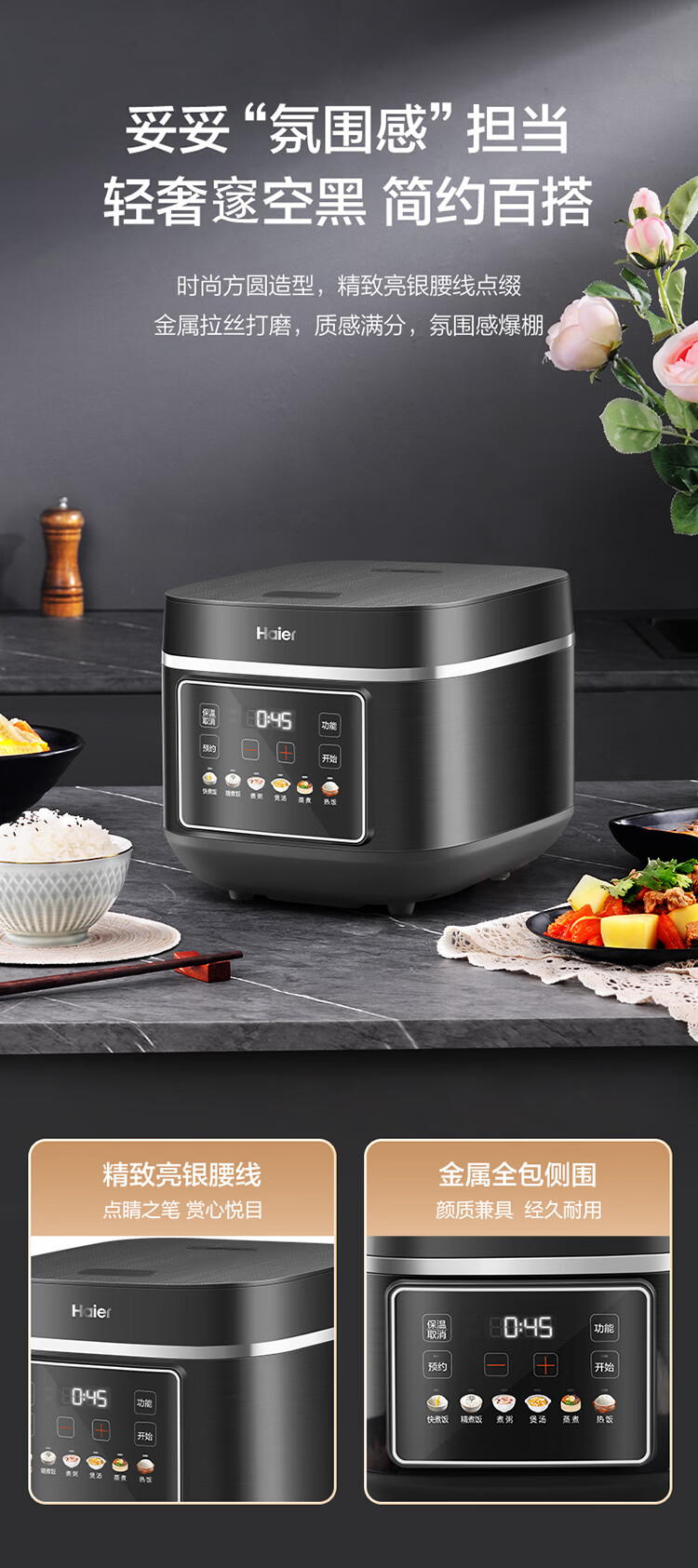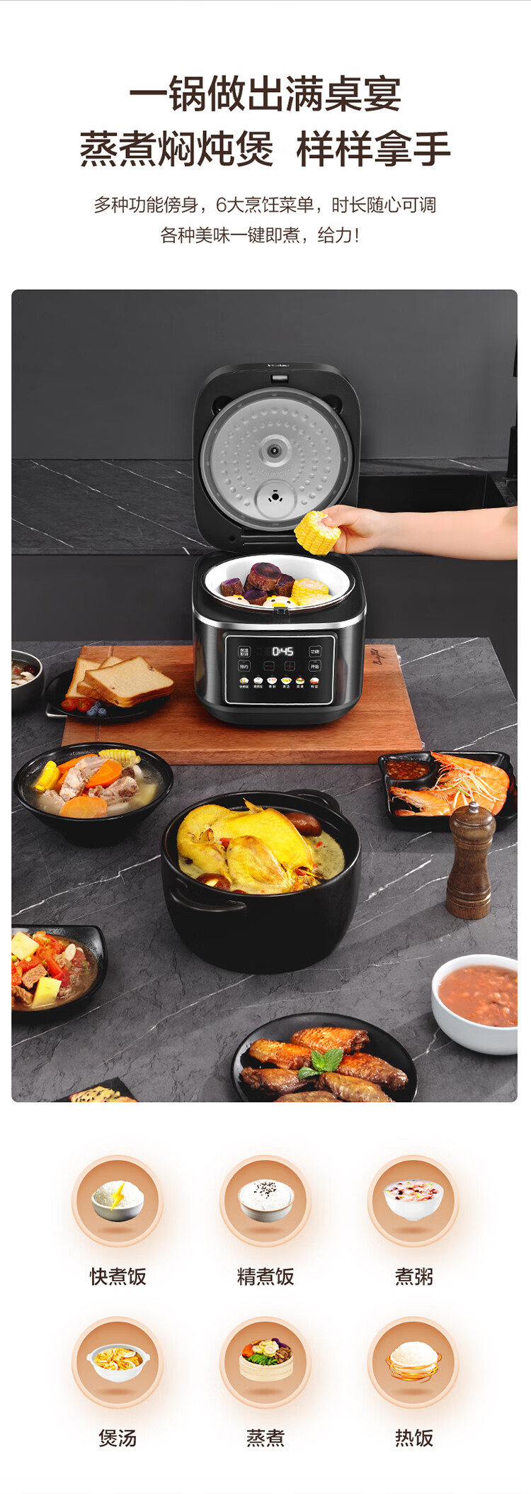 海尔电饭煲家用多功能家用易清洁微压无涂层智能预约不沾内胆米饭饭煲大容量5L HRC-S15ZDA