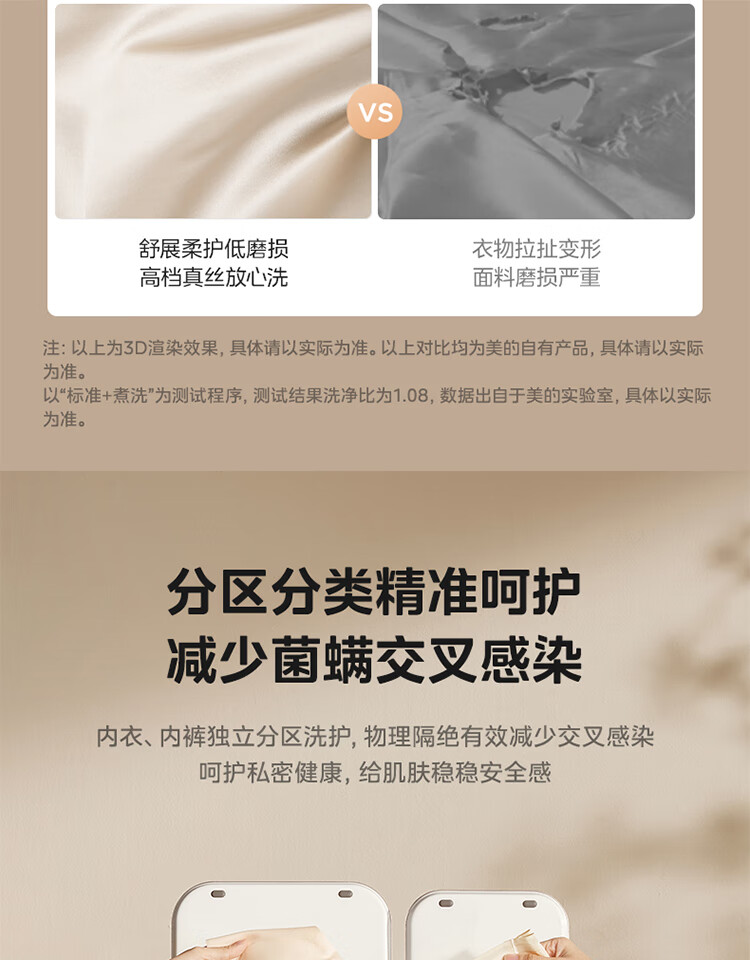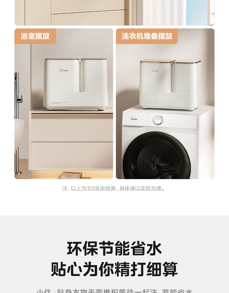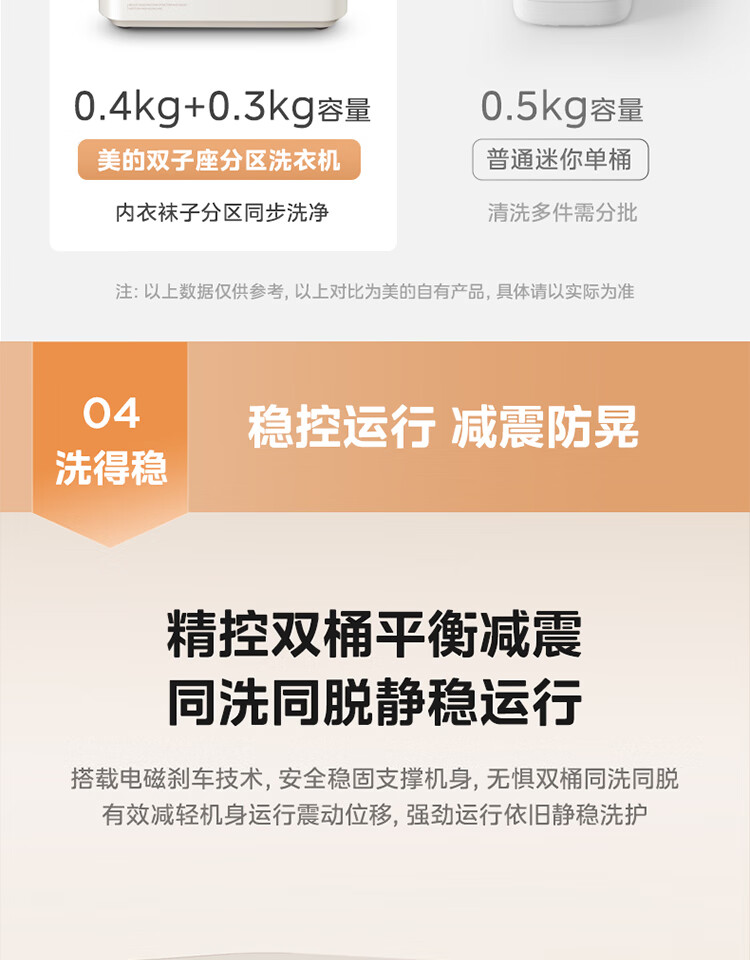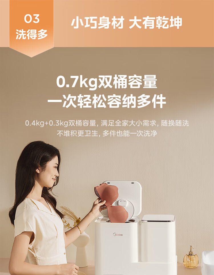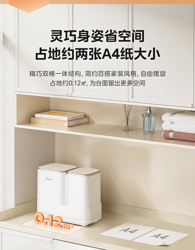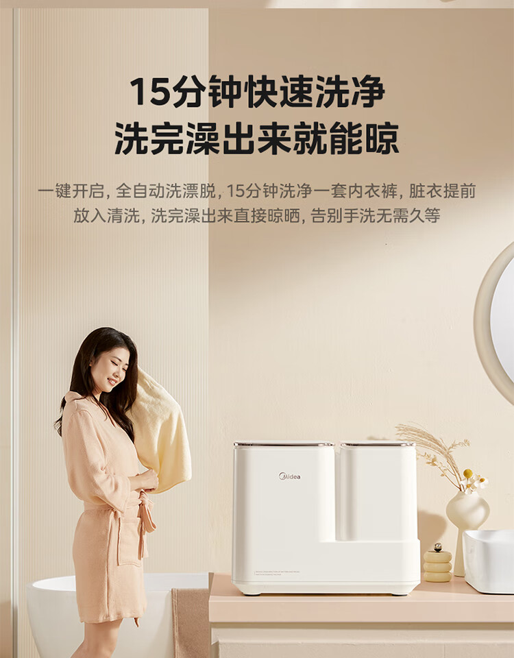 美的(Midea)双子座分区洗衣机 迷你小型全自动内衣裤袜台式波轮 高温煮洗除菌除螨 小巧不占地一键筒自洁 双桶分区洗