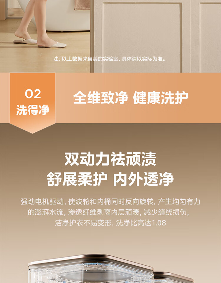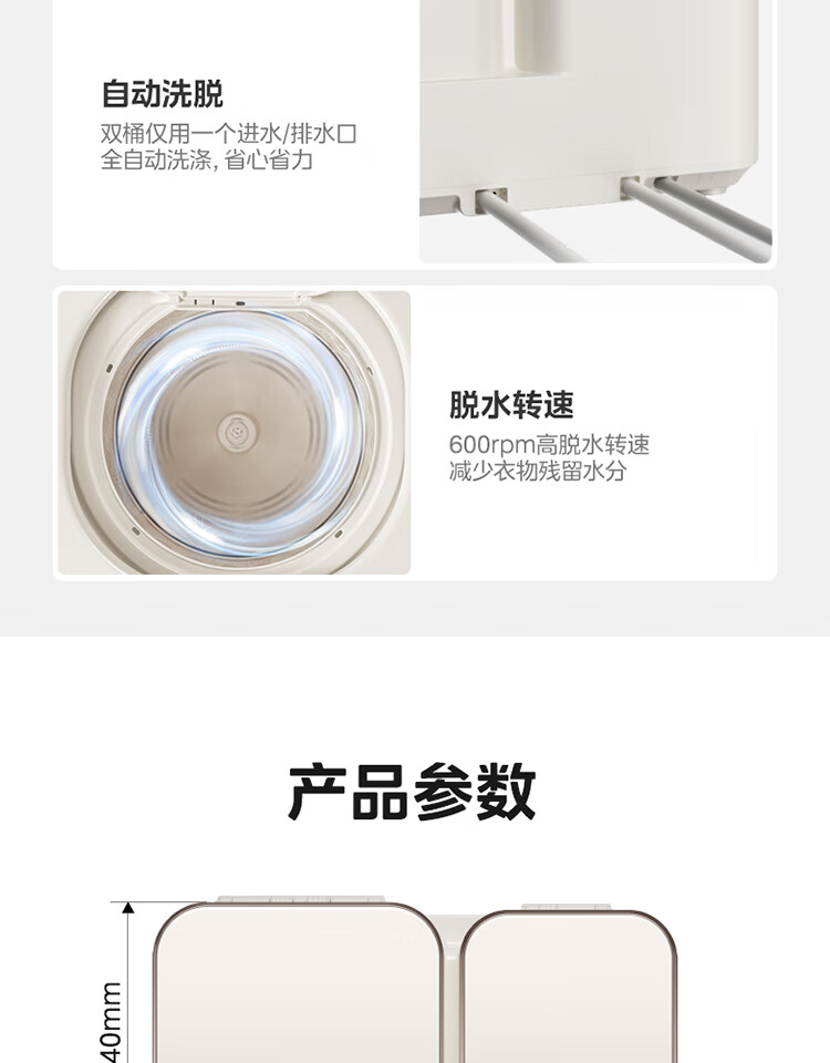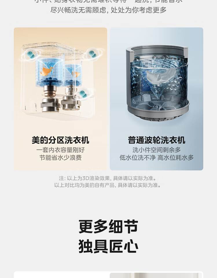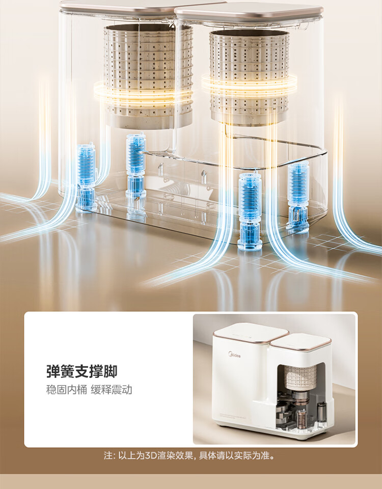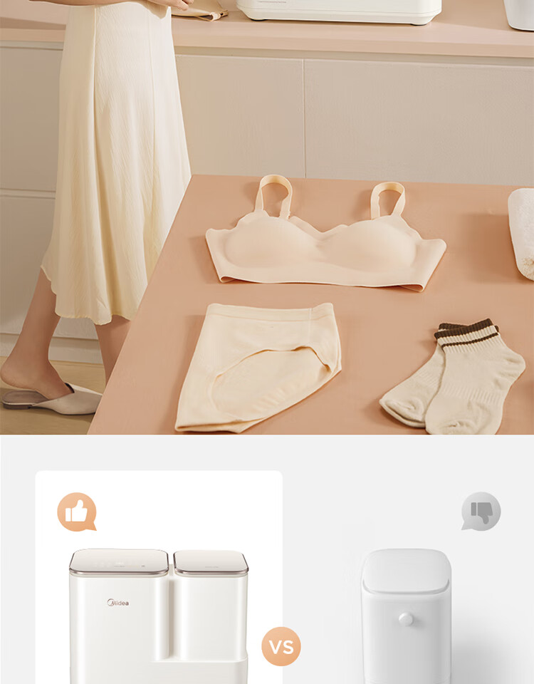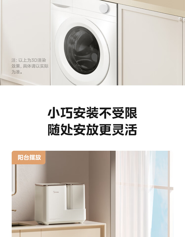 美的(Midea)双子座分区洗衣机 迷你小型全自动内衣裤袜台式波轮 高温煮洗除菌除螨 小巧不占地一键筒自洁 双桶分区洗