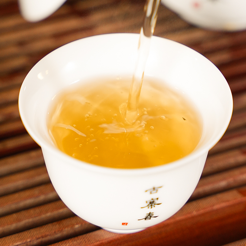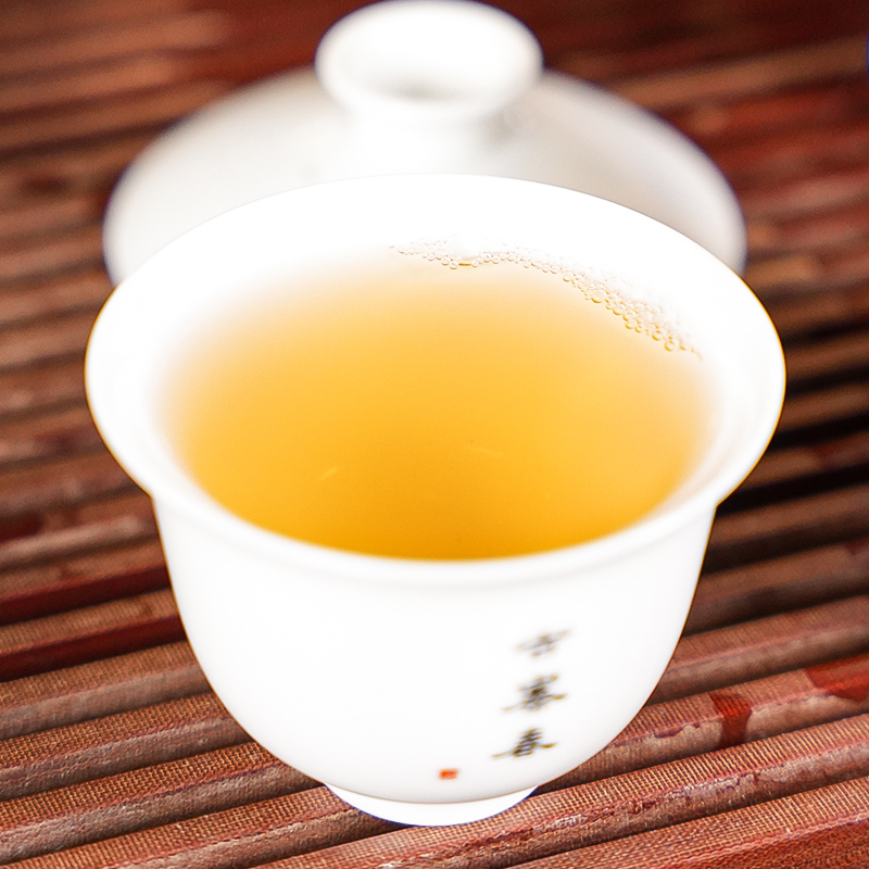 100°沸水开汤,茶汤黄亮透明,入口细腻,水路清晰冰糖香裹夹着花香沁人心脾,呈现出茶人久寻不得的满足感茶汤,带有丝丝的花果幽香和山野气韵,入口鲜爽清新,生津迅速回甘明显喉韵带有幽幽的冰糖甜韵;总体来说这款茶不挑人,不管是老茶客还是新茶友都适口,入口后像喝到一杯冰水入口时很平淡,但随后整个口腔都充满清凉的茶味,舌根部位回甘两颊生津不断,品饮过后回甘悠久冷杯后闻出点冰糖香。