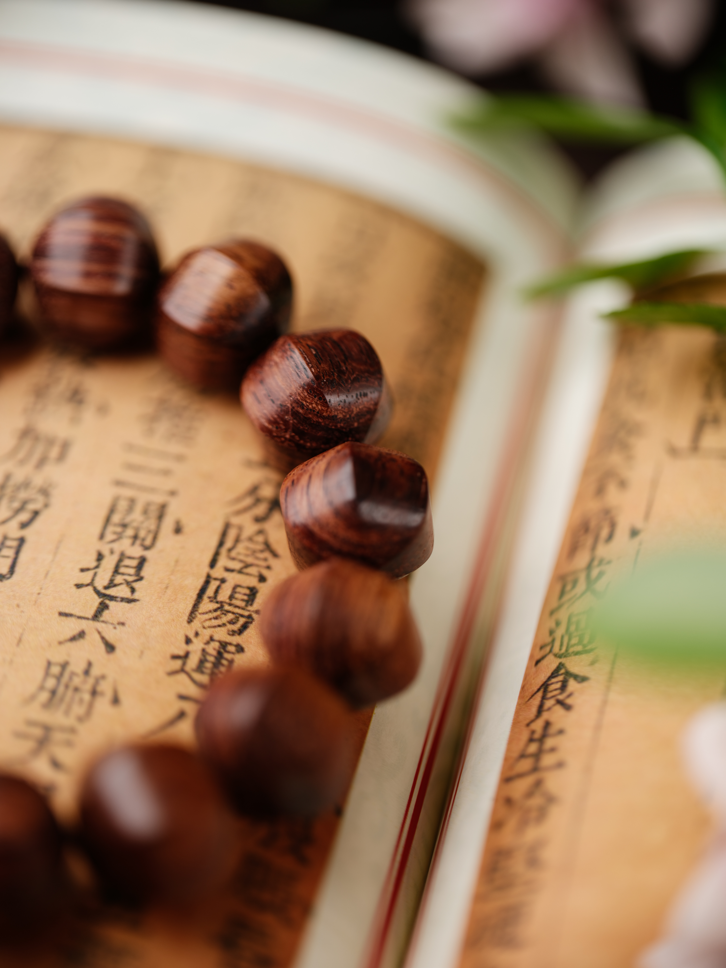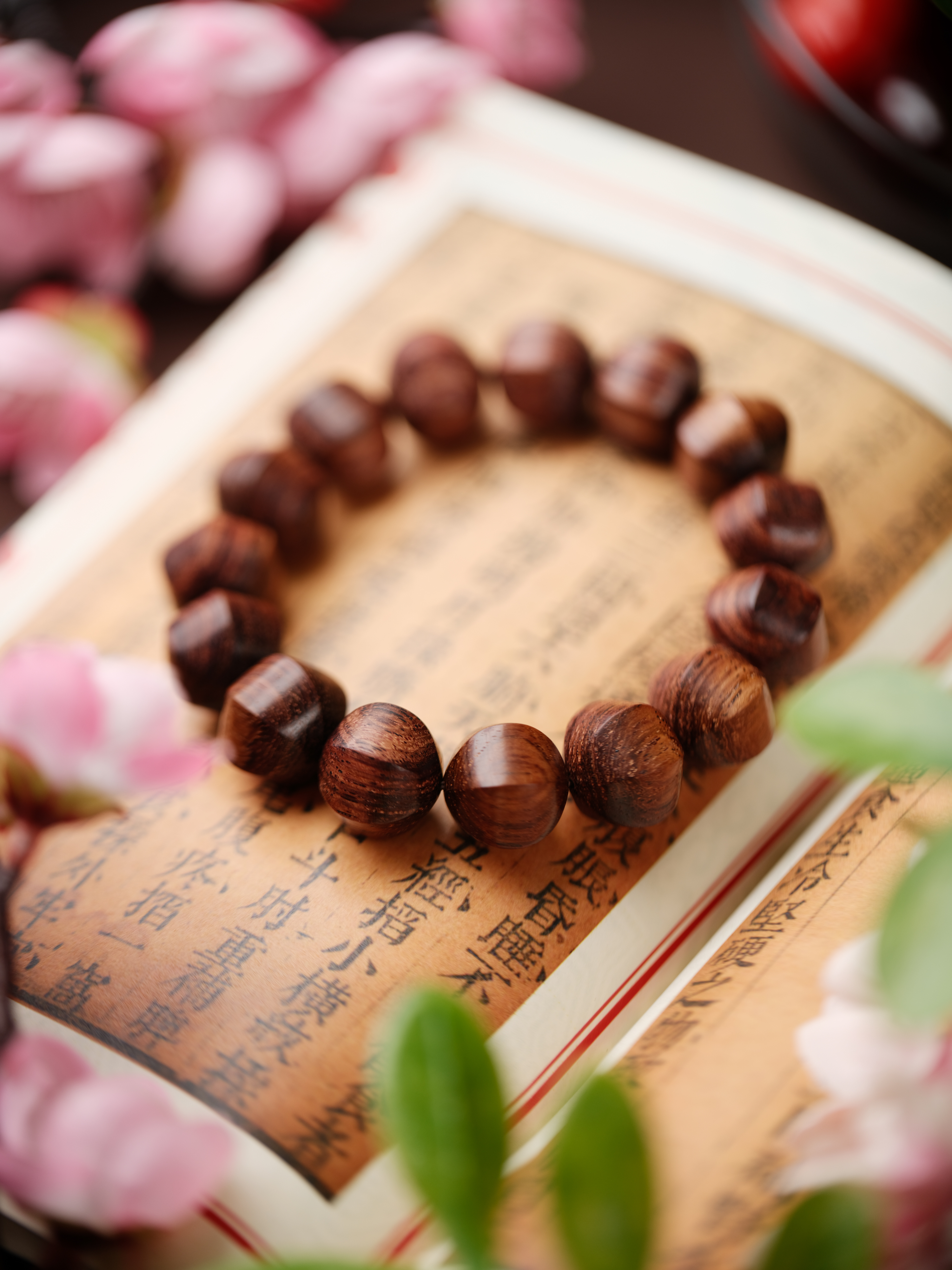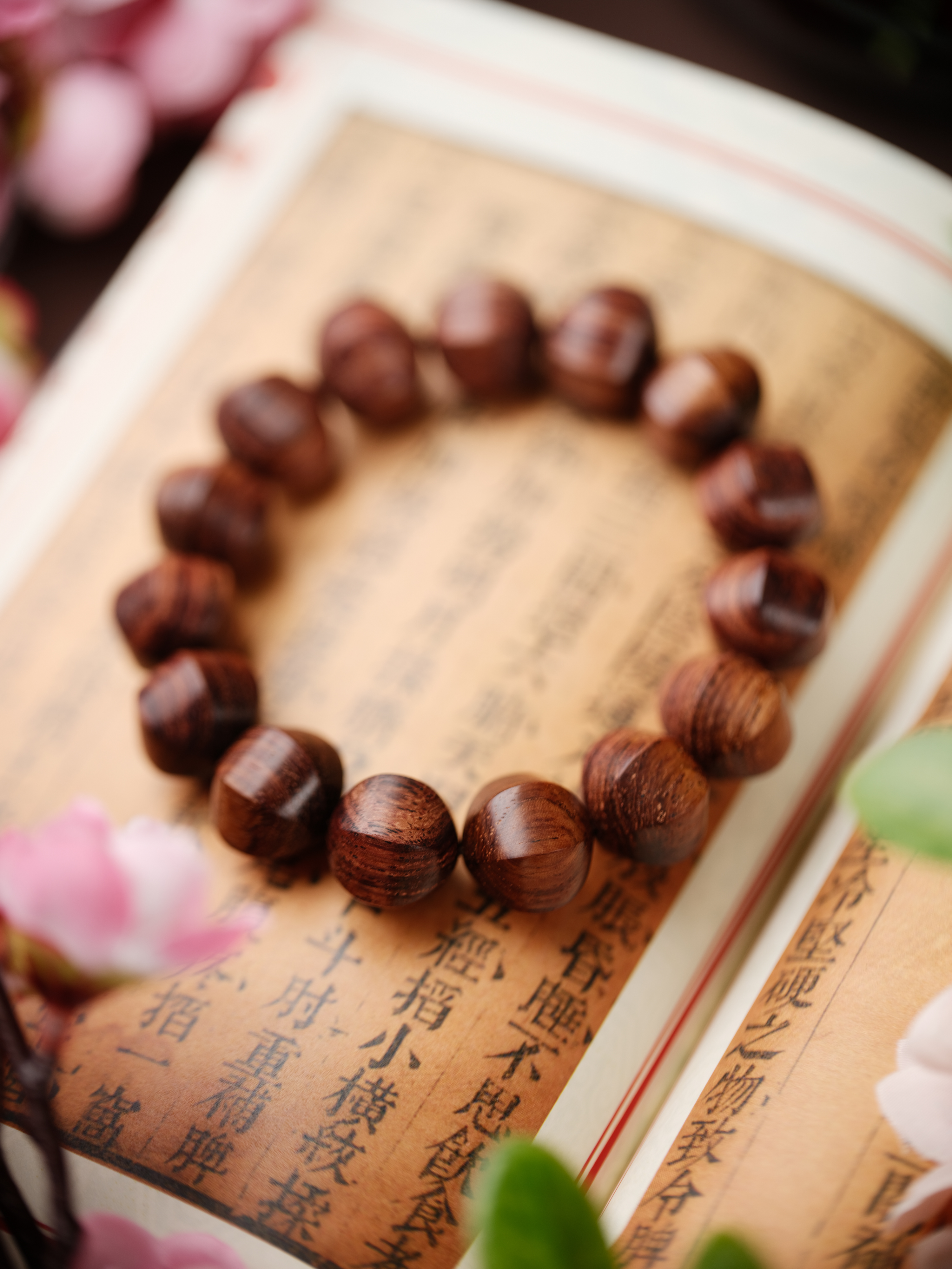 A46海南黄花梨六面钻石珠六时吉祥珠型1.8CM【器悟雅玩】