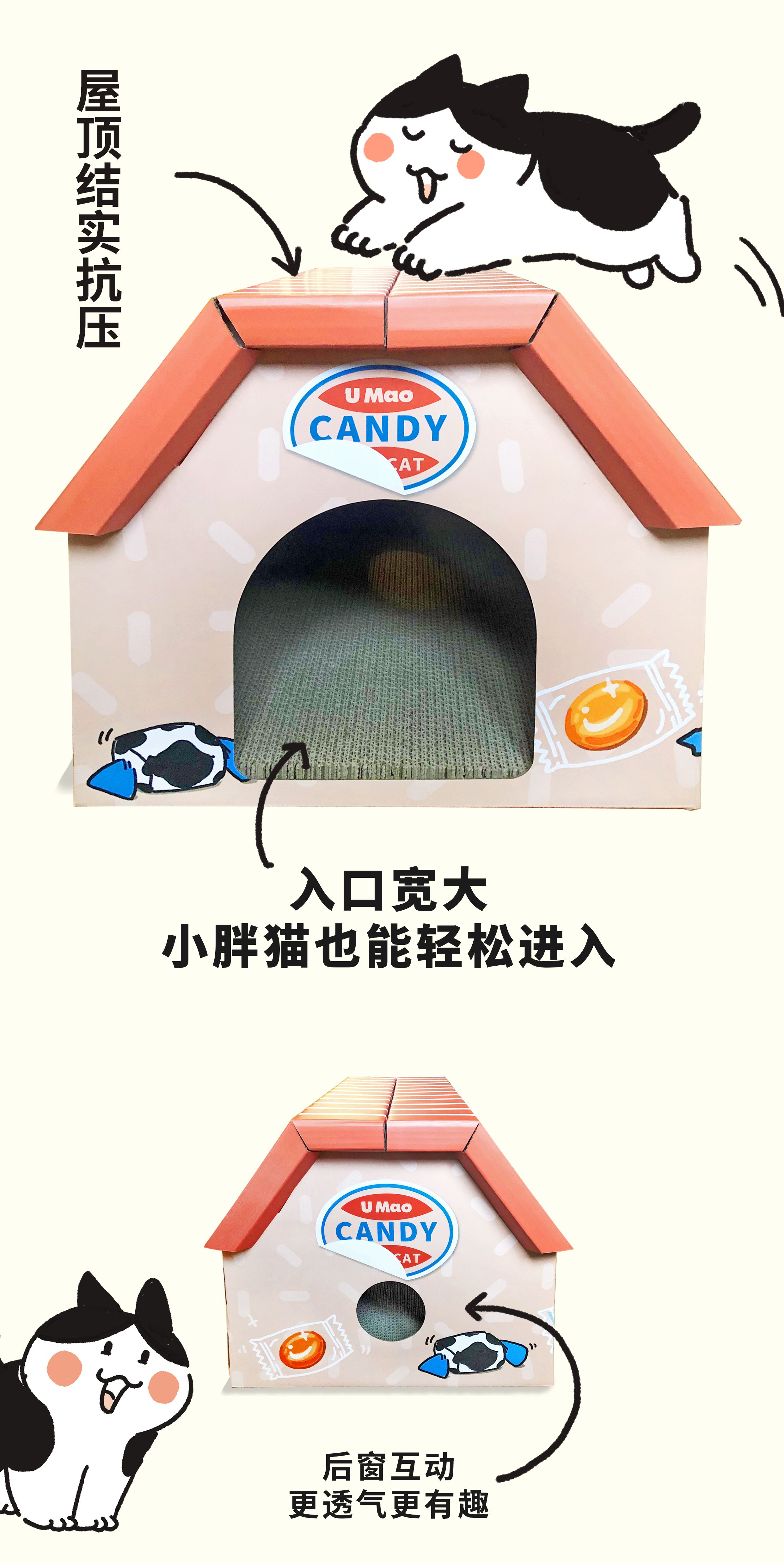 Umao有毛 奶糖橘子糖毛毛甜甜糖果猫屋猫窝 猫抓板+纸猫窝 大容量屋顶可趴