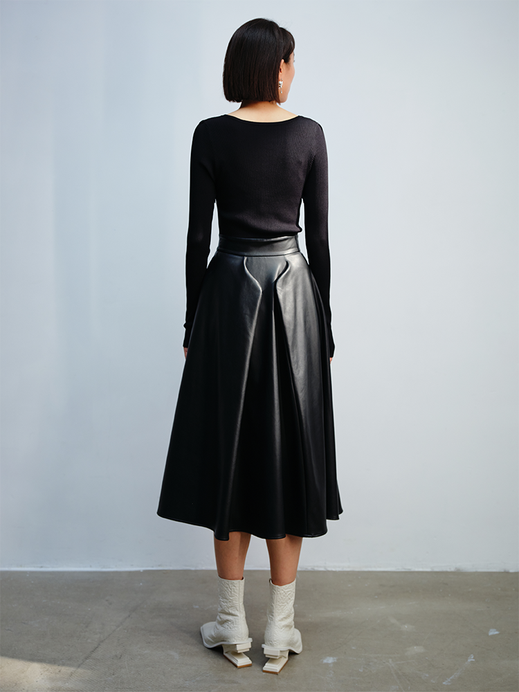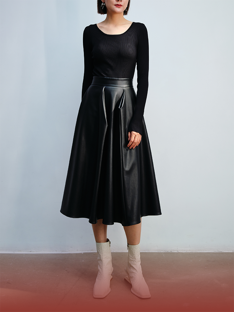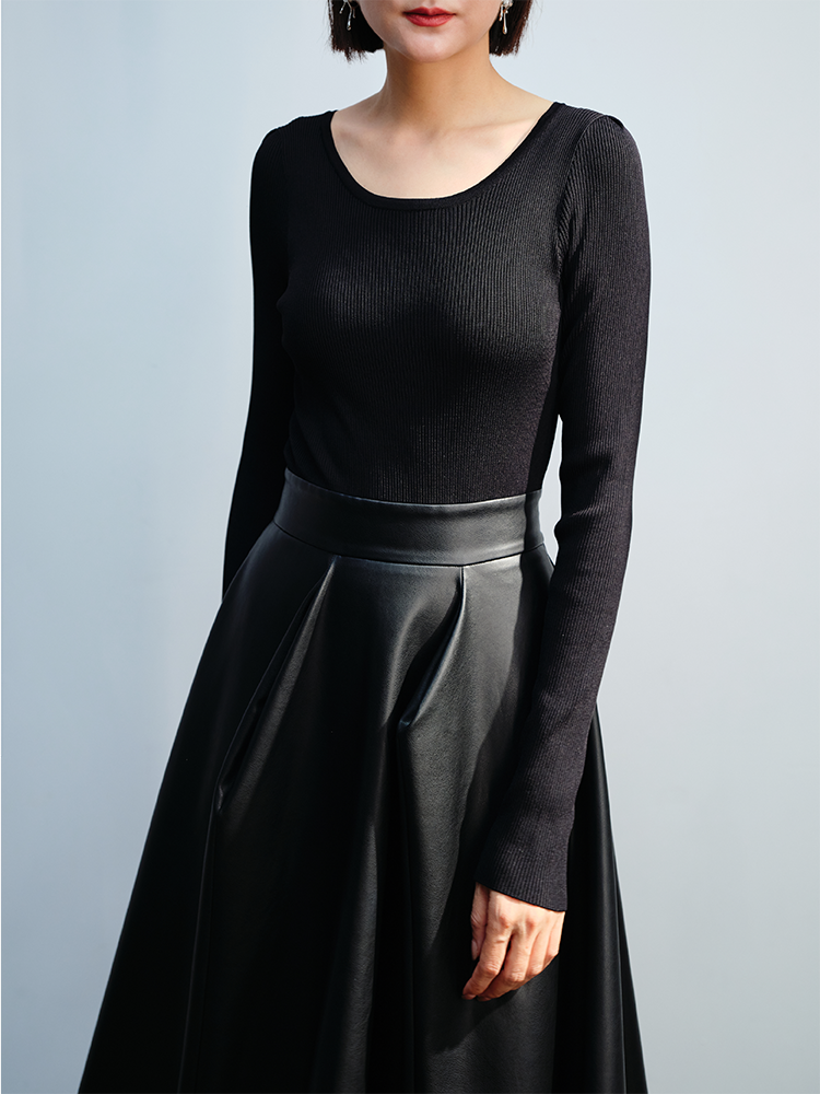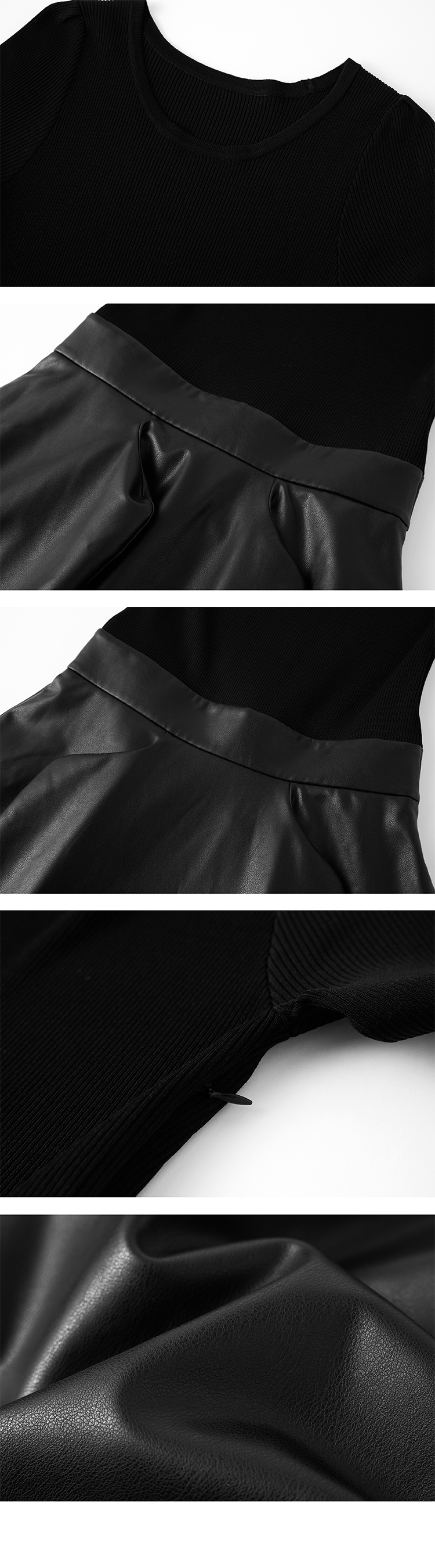 LIYIHAN 毛织拼皮连衣裙 Y233L08090