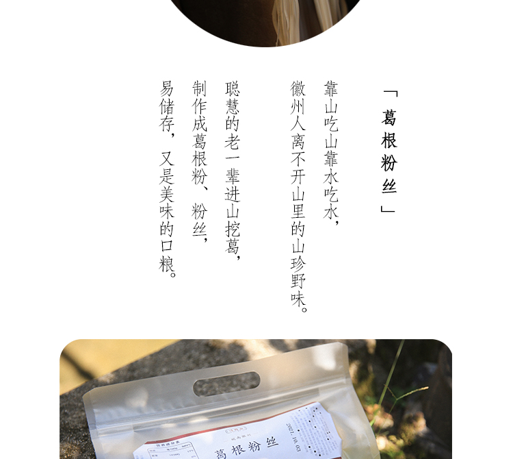 浔隐山 葛根粉丝 徽州野生葛根制 0脂细厥根蕨根粉凉拌葛根酸辣非土豆宽川粉丝粉条 250g/袋
