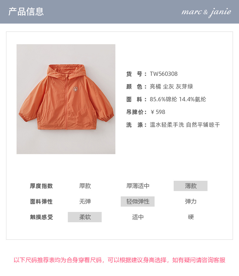 马克珍妮时髦户外男童蝙蝠袖防晒衣2026年夏装新款560308