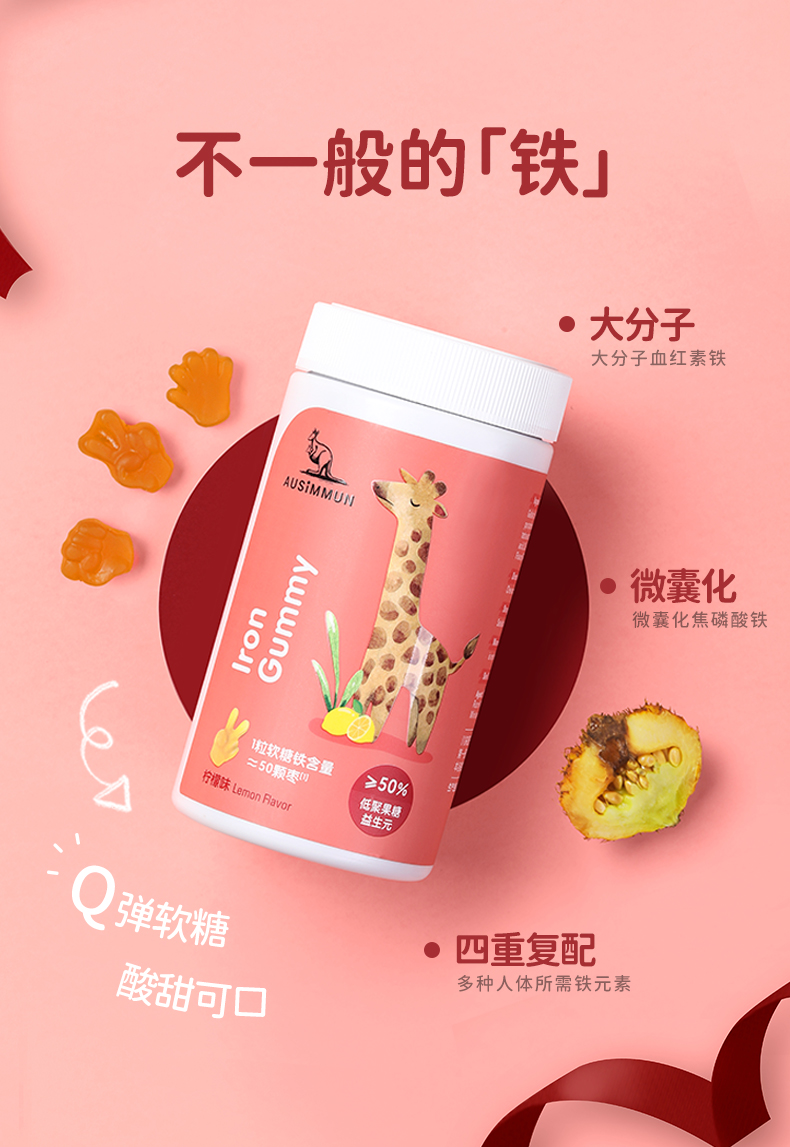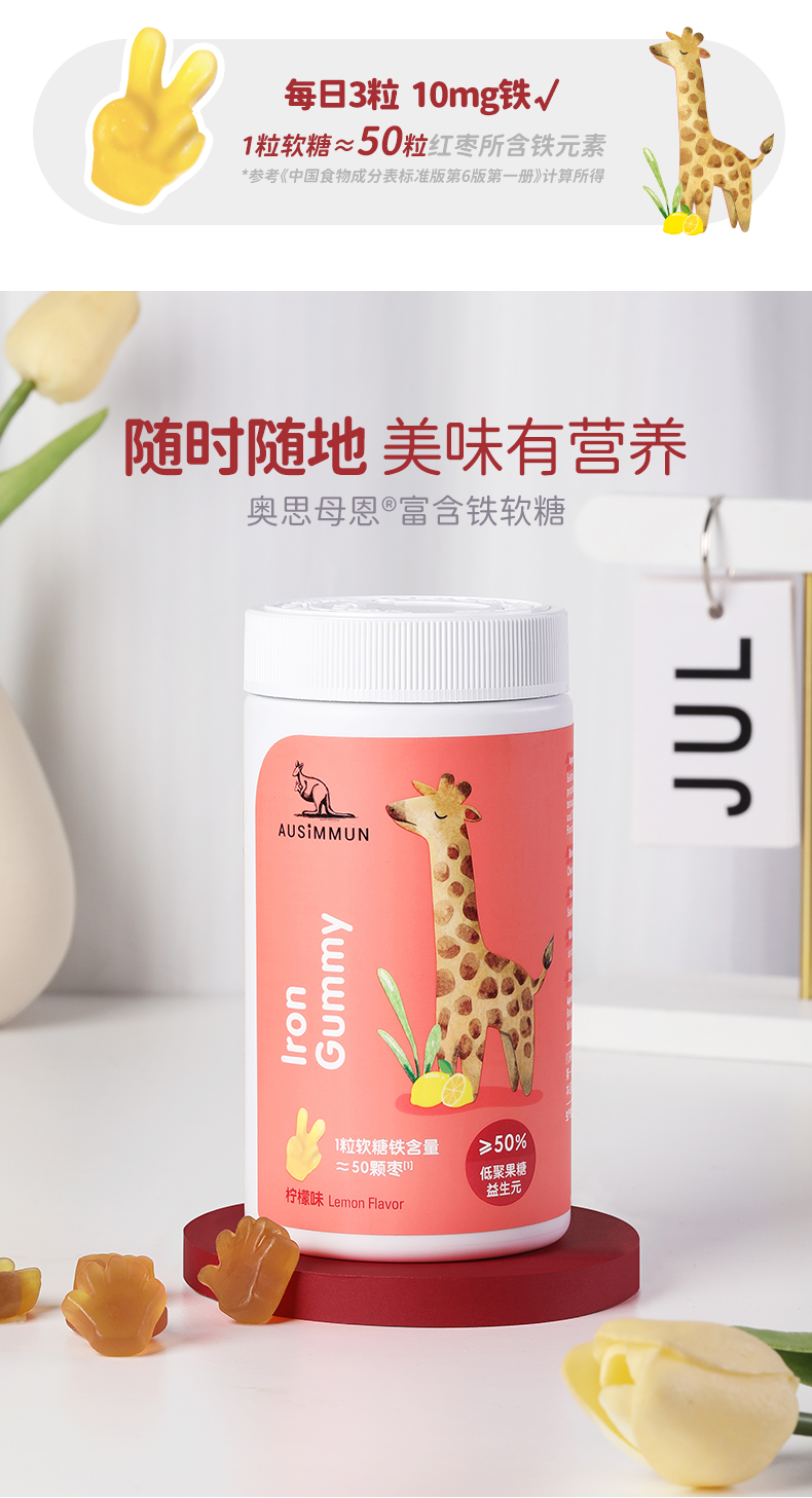 【新品上架】奥思母恩富含铁软糖3克*60粒/瓶