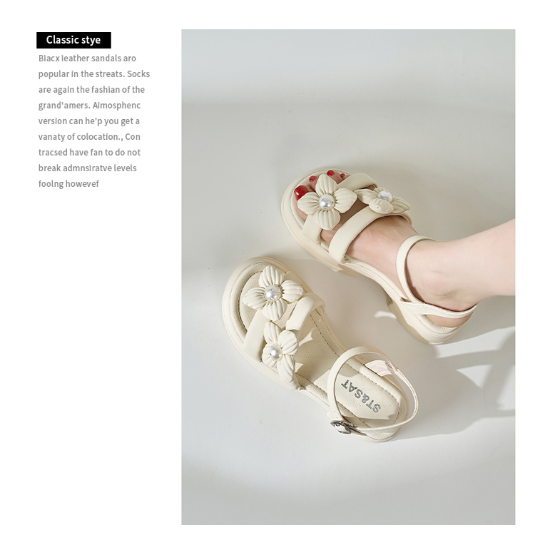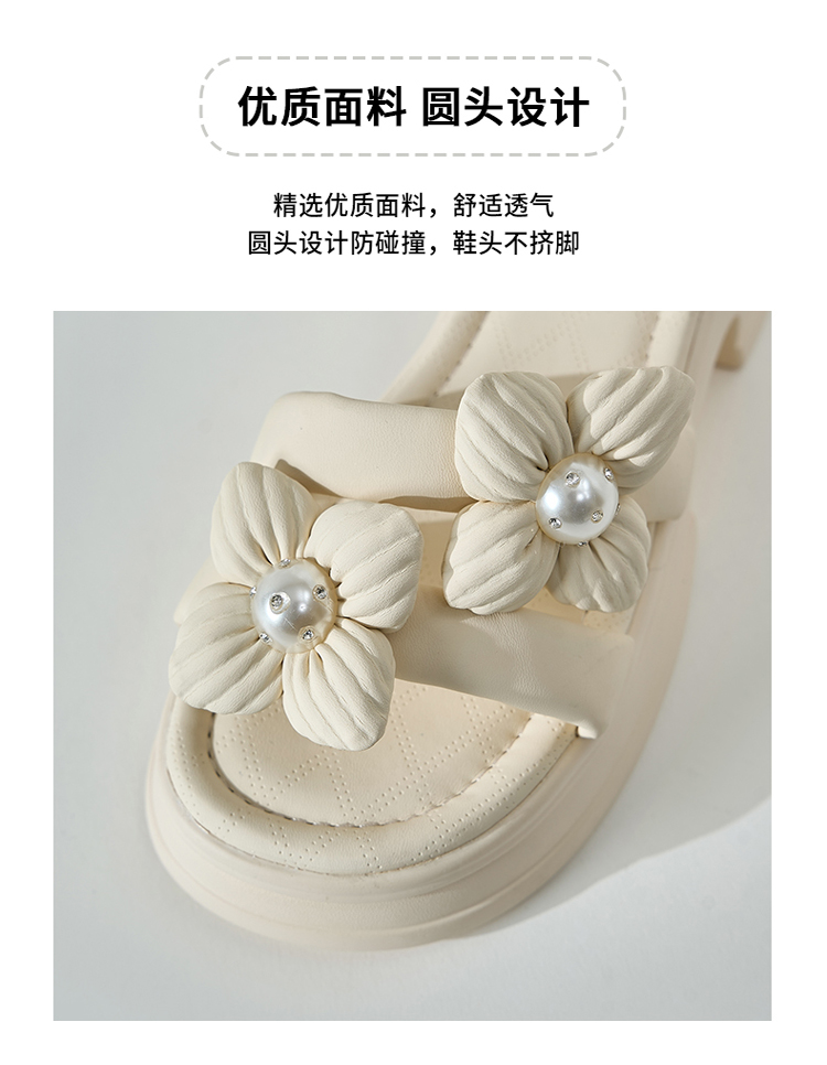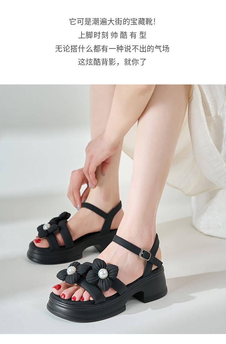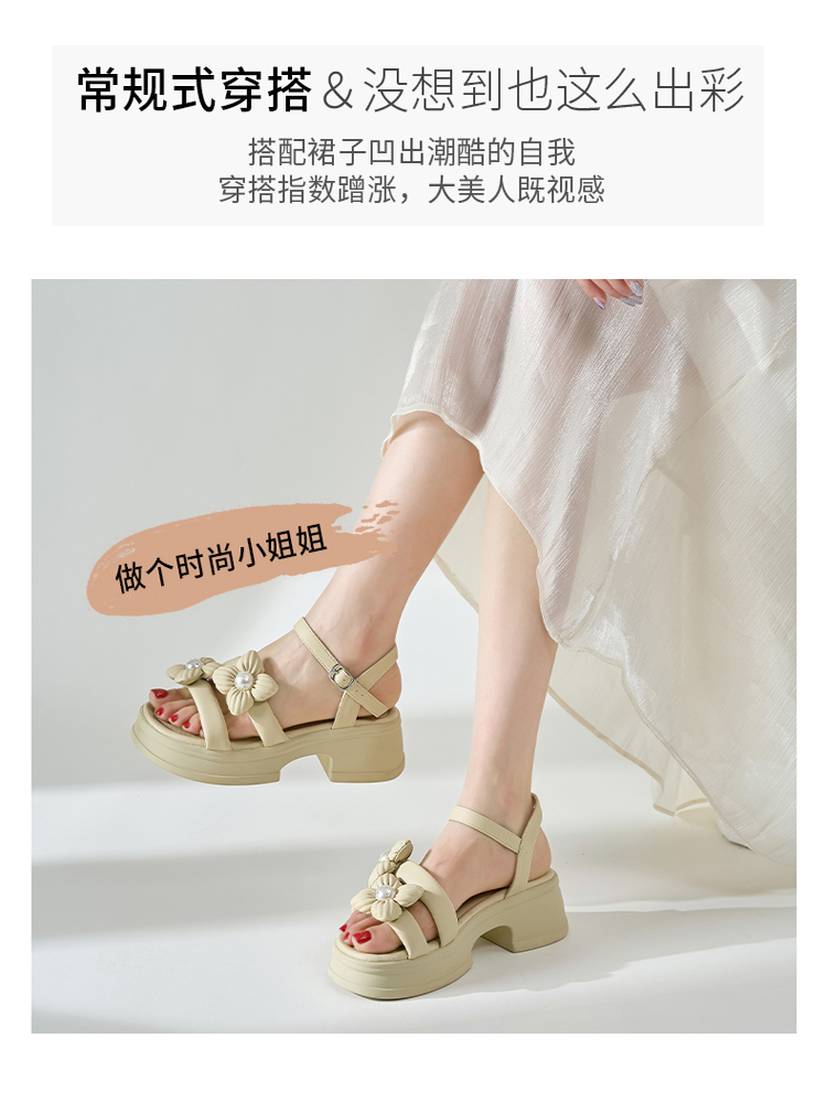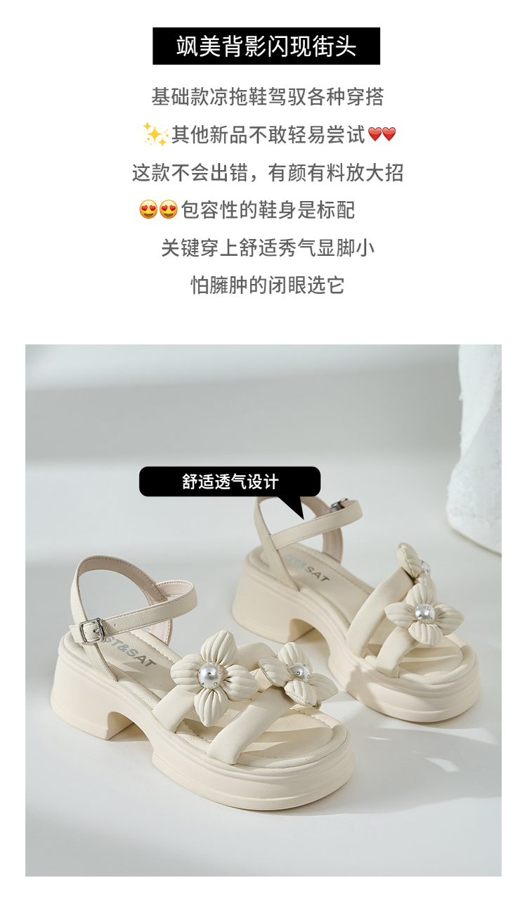 星期六花朵珍珠一字带沙滩厚底凉鞋SSD2115CRK