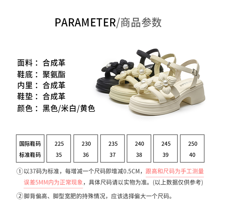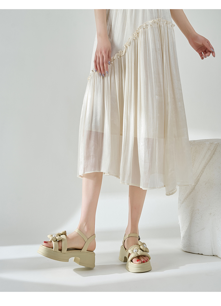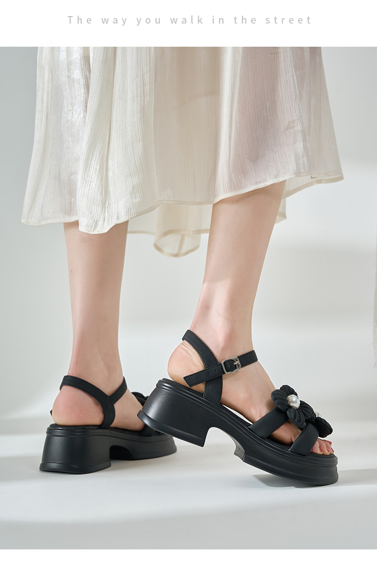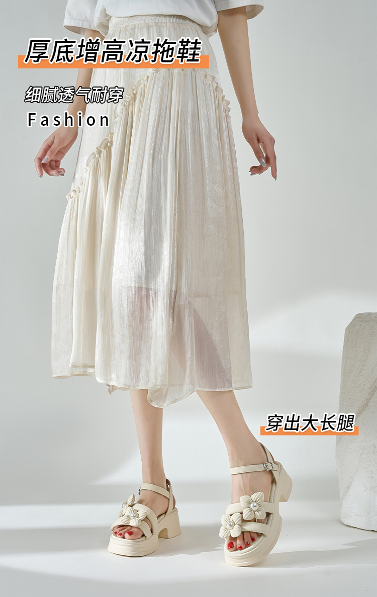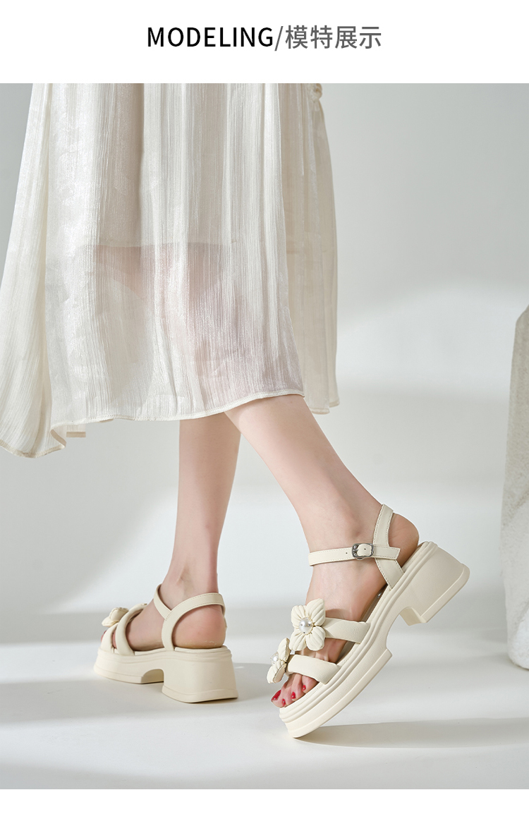 星期六花朵珍珠一字带沙滩厚底凉鞋SSD2115CRK