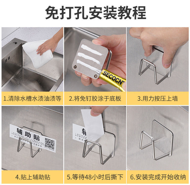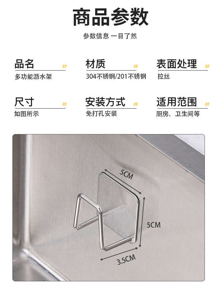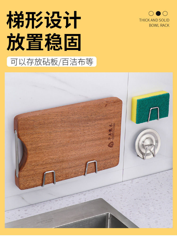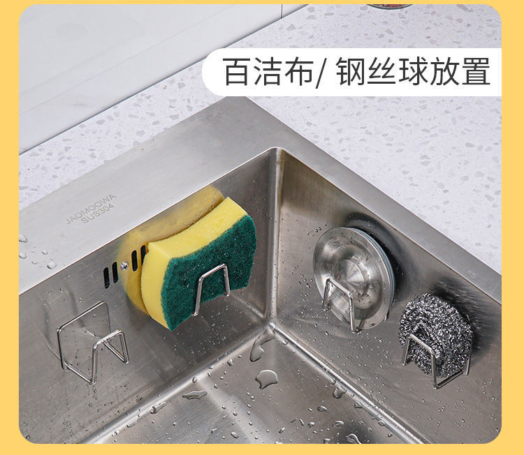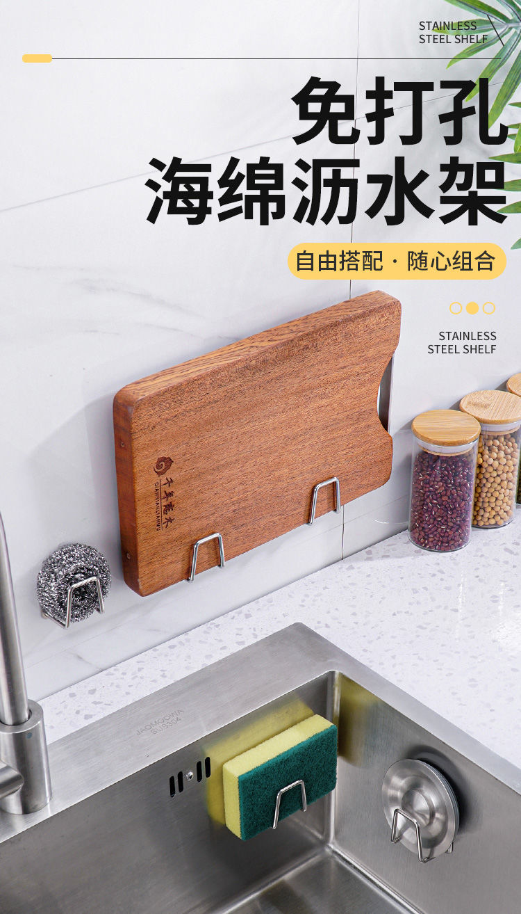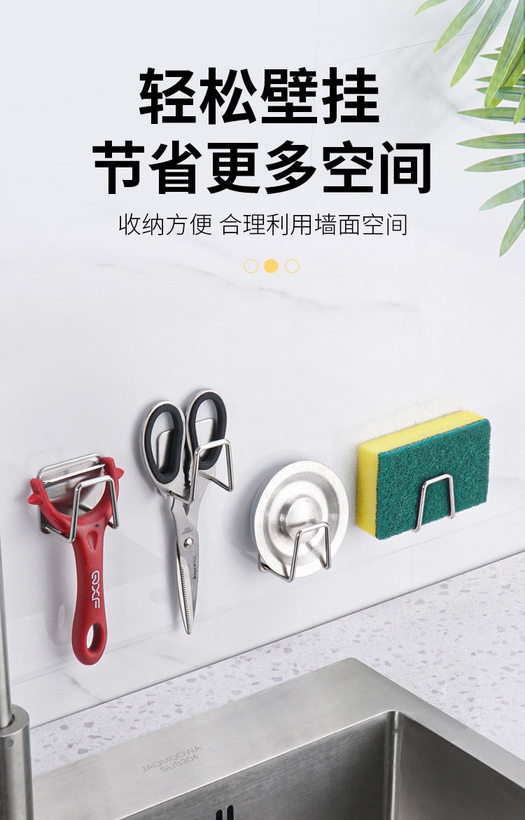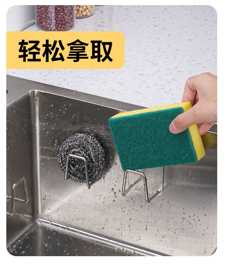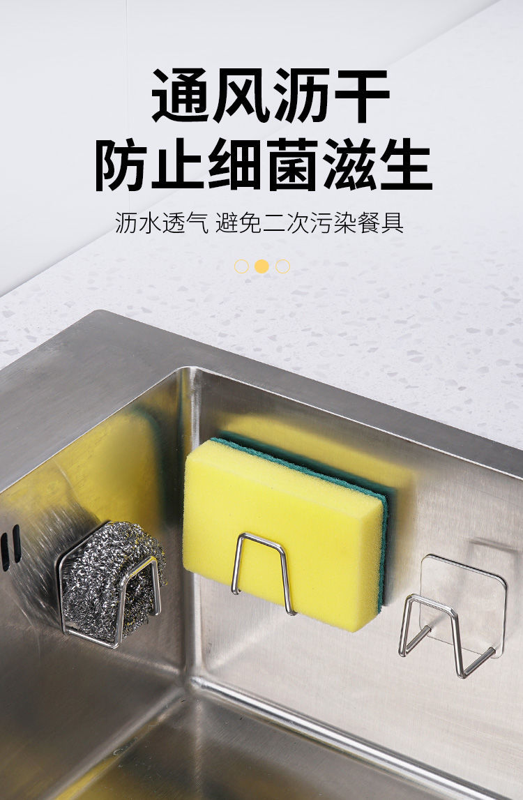 【免打孔厨房挂钩*4个装】不锈钢海绵沥水架钢丝球水槽盖收纳架壁挂锅盖架收纳整理厨房用品