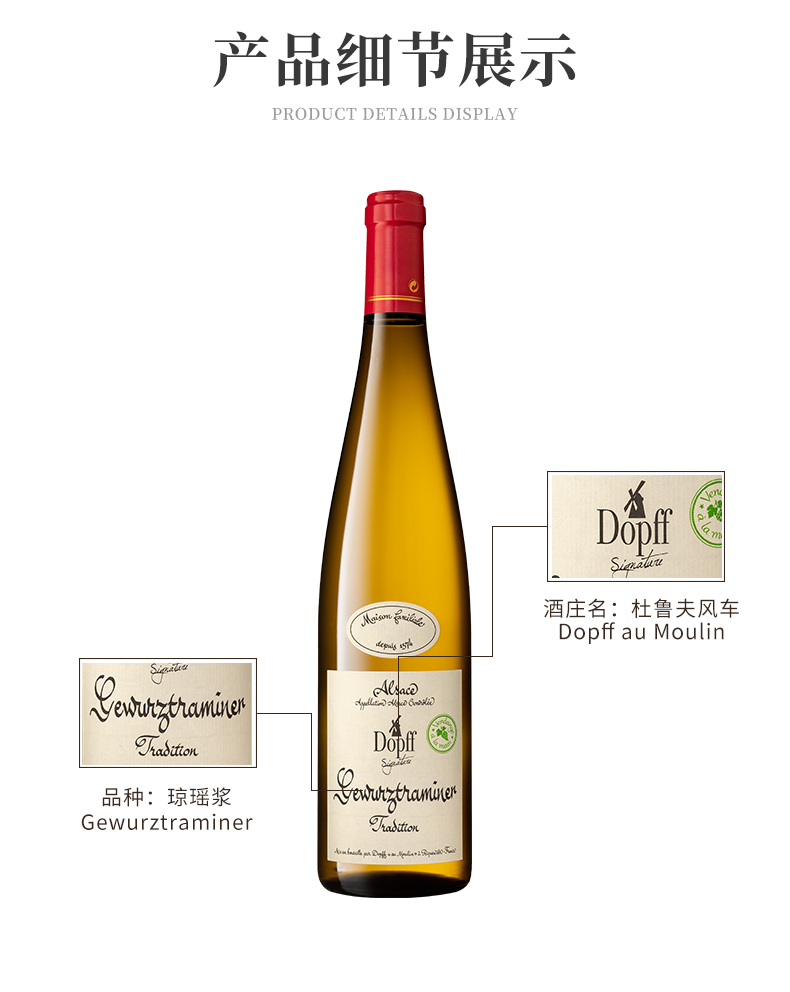 "杜鲁夫风车-琼瑶浆-半甜白葡萄酒Dopff au Moulin Tradition Gewurztraminer"