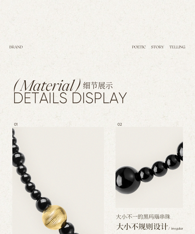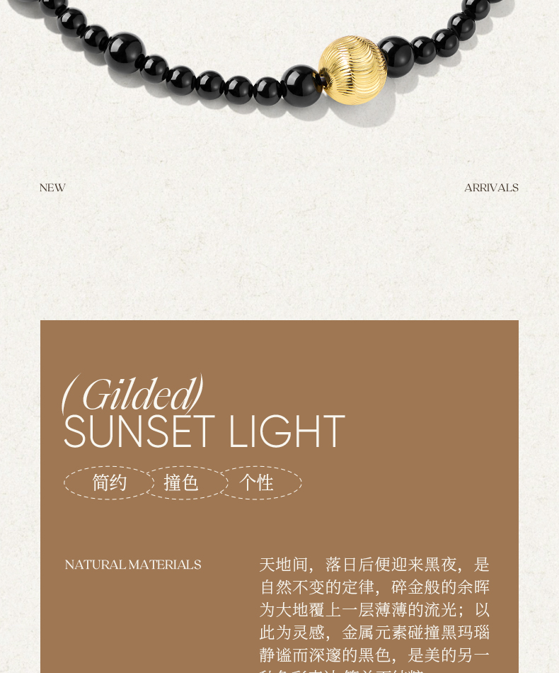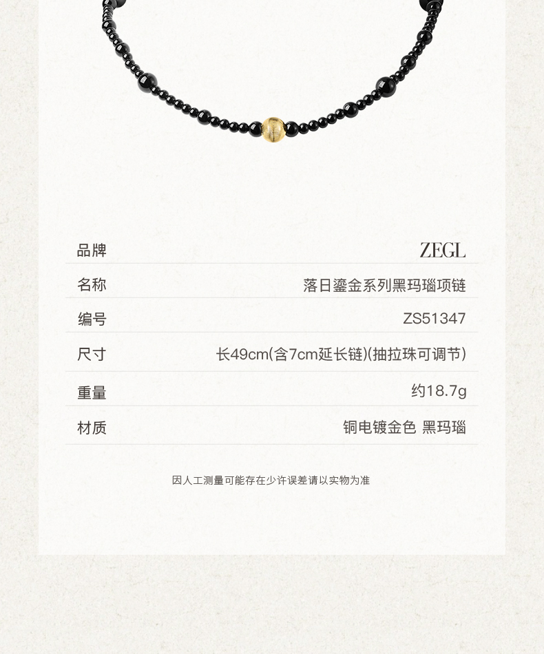ZEGL设计师落日鎏金系列黑玛瑙项链女款2024新款轻奢小众串珠配饰