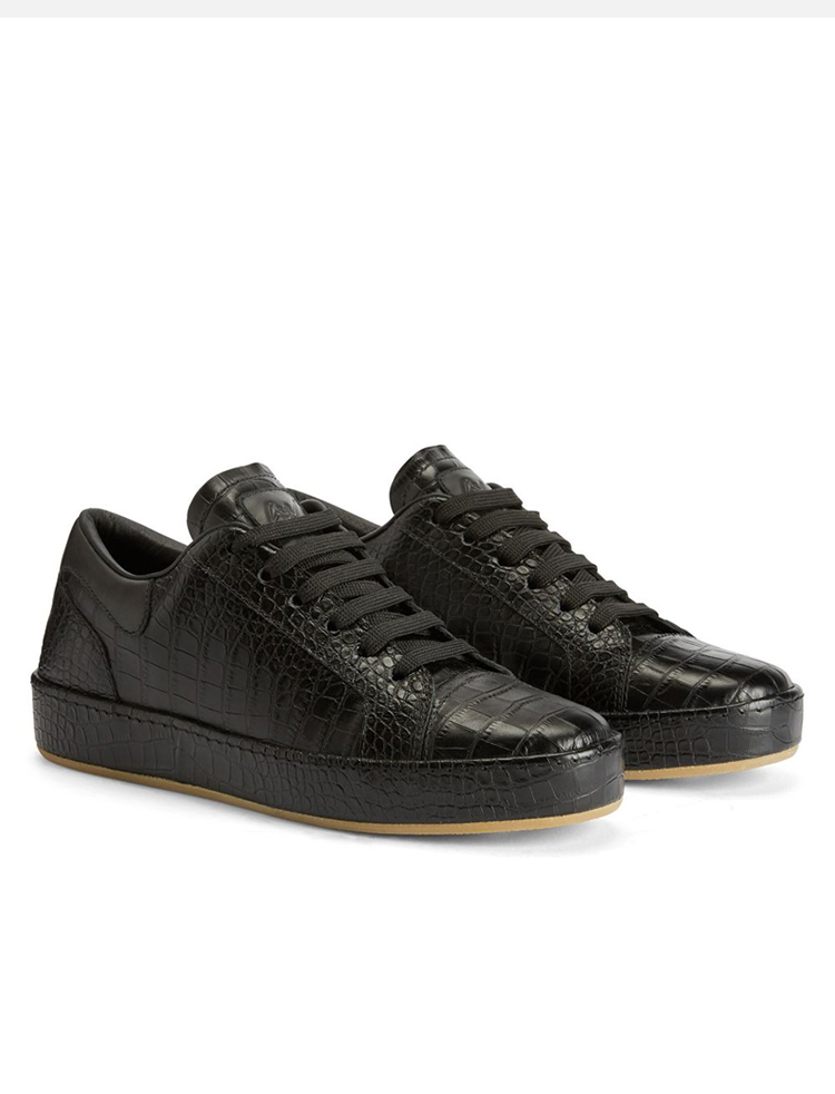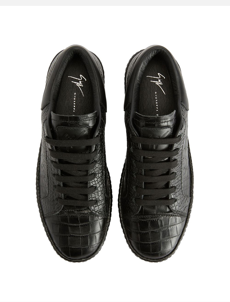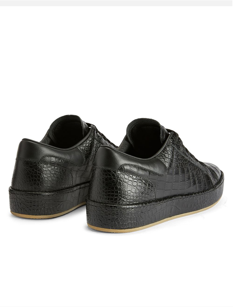 Giuseppe Zanotti 男士签名徽标压花鳄鱼纹皮革低帮休闲运动鞋 黑色 RM40015001