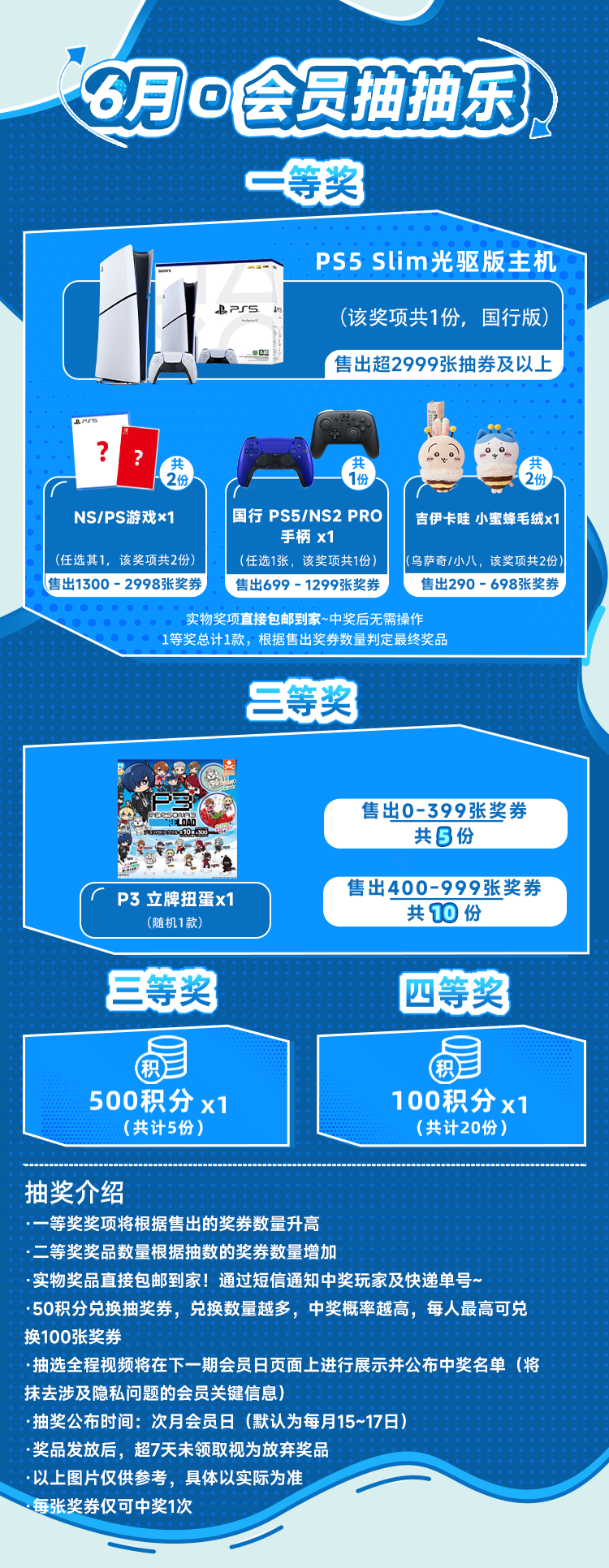 【6月会员日抽抽乐】本期最高奖项 - 价值3599 国行PS5 Slim主机(下期会员日期间公布中奖名单并发放奖品)