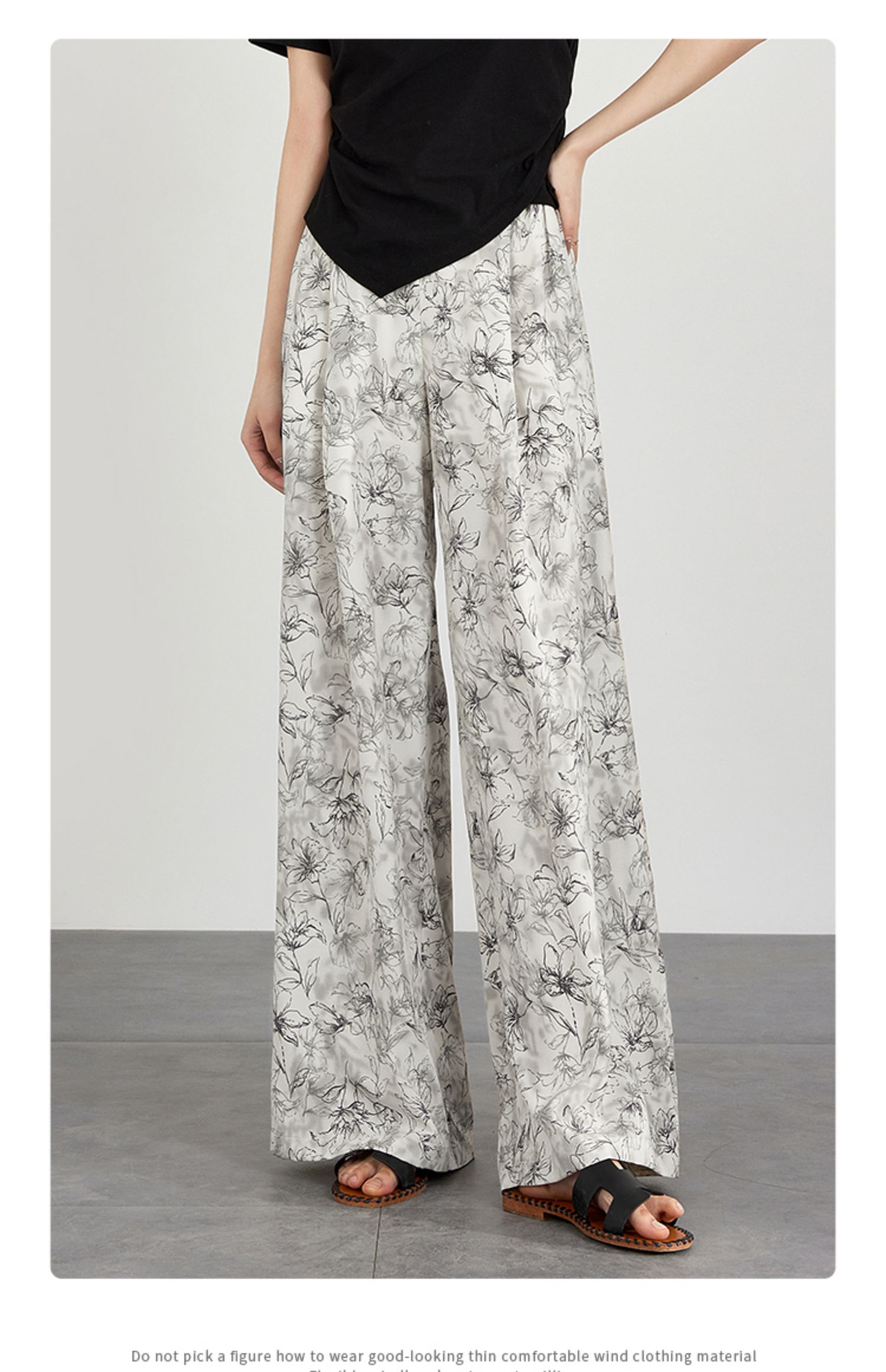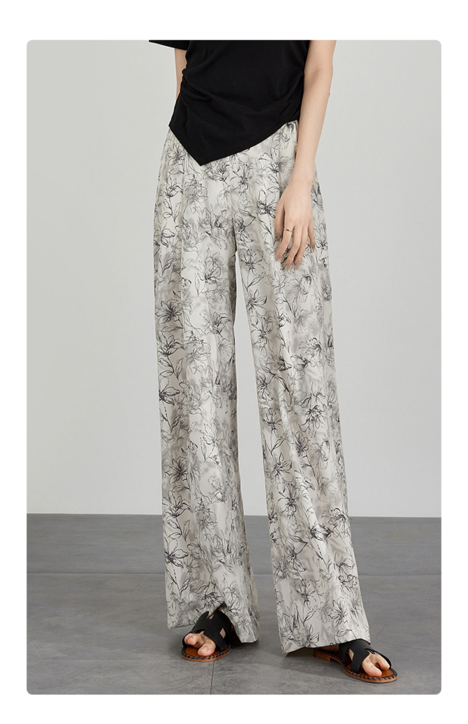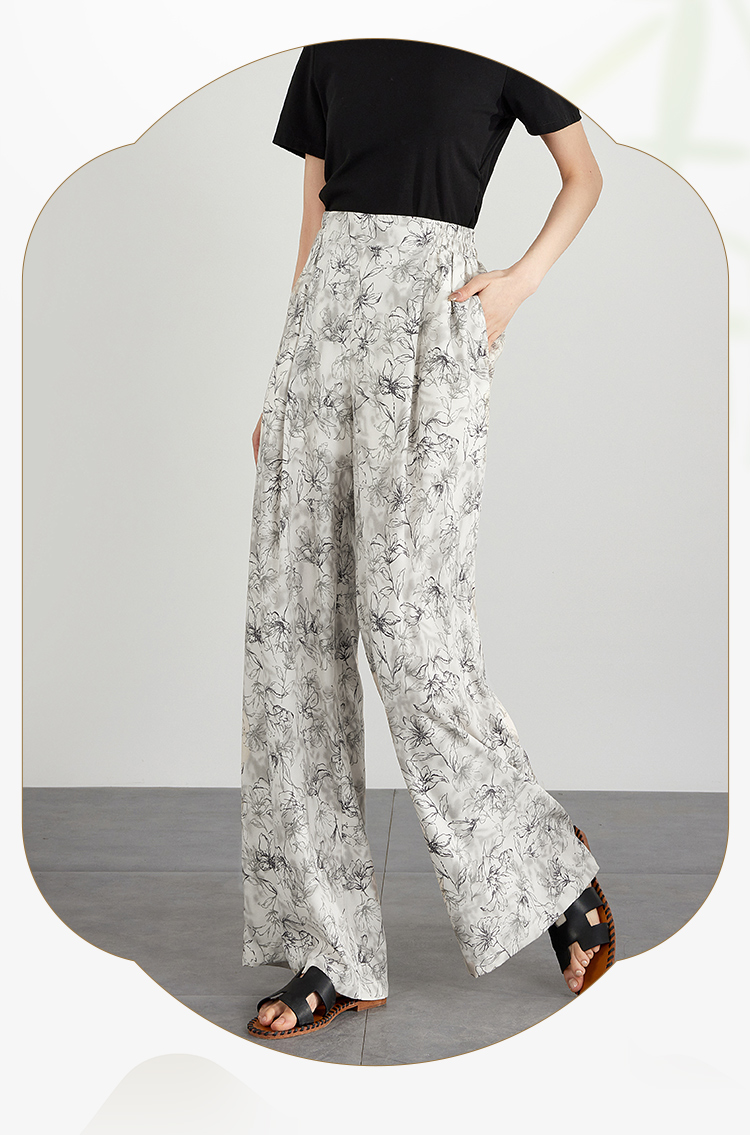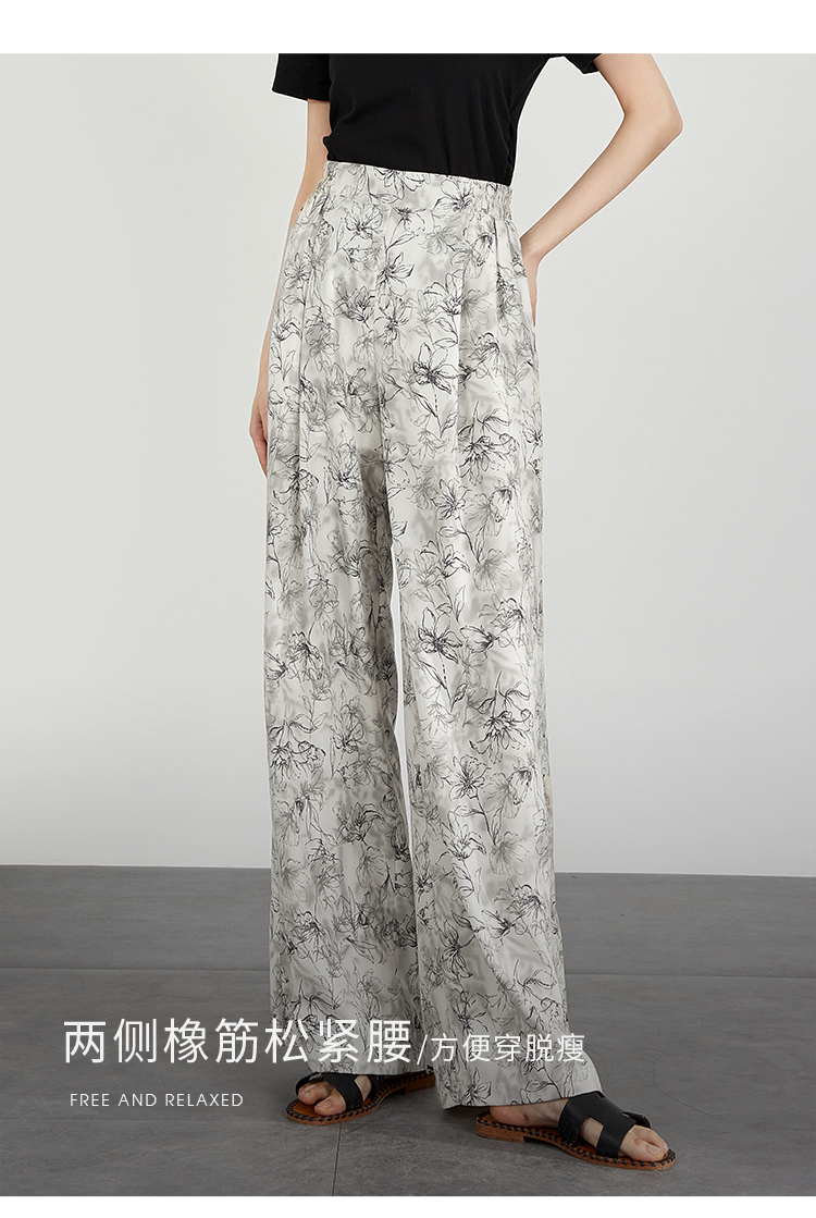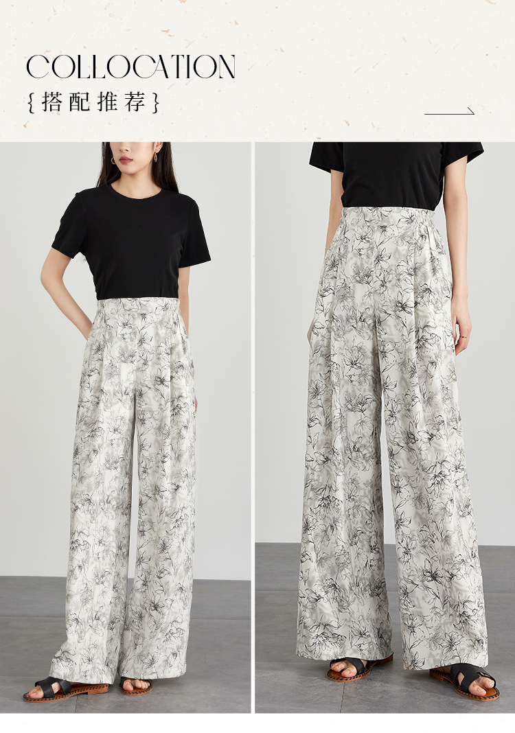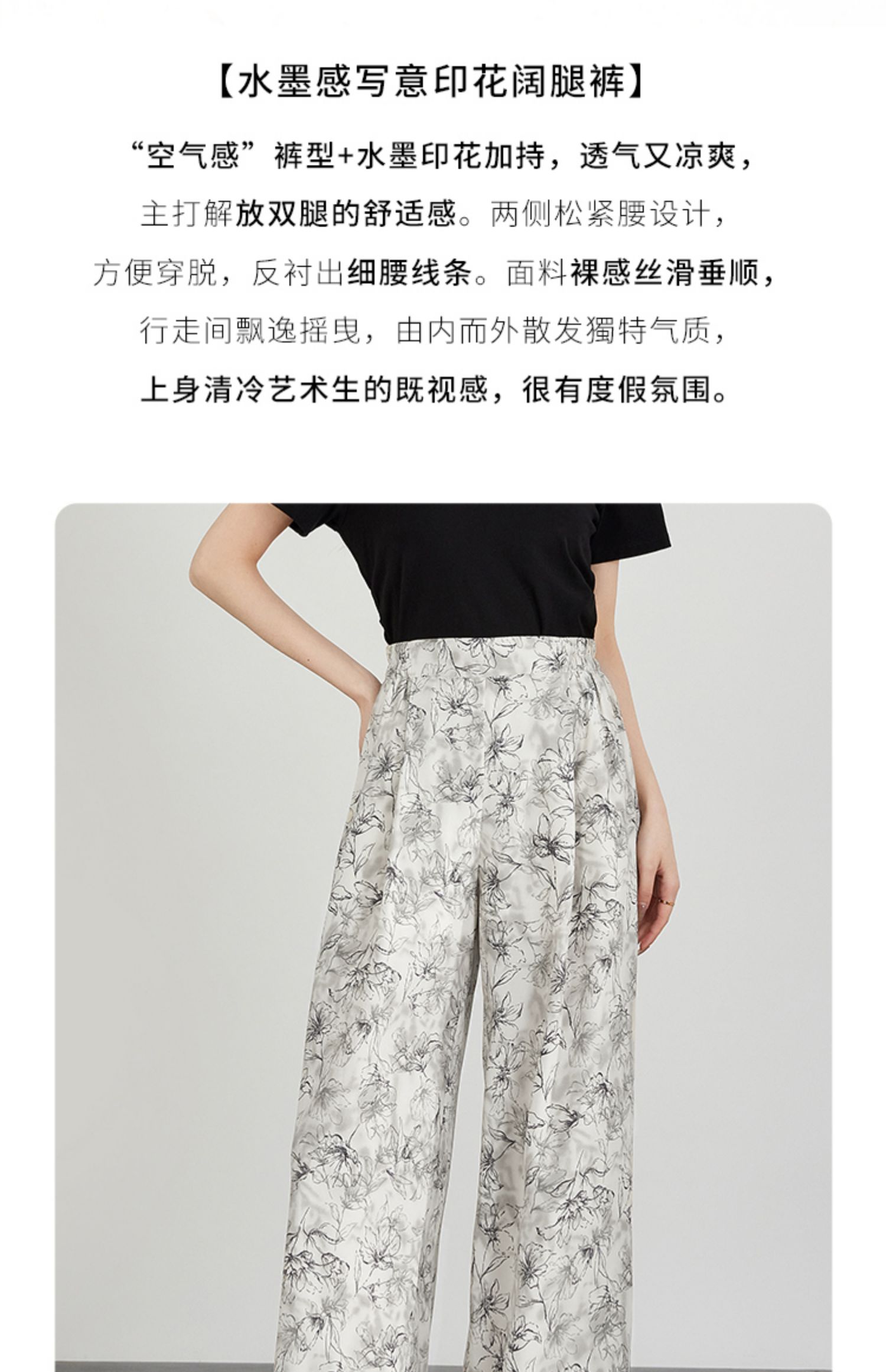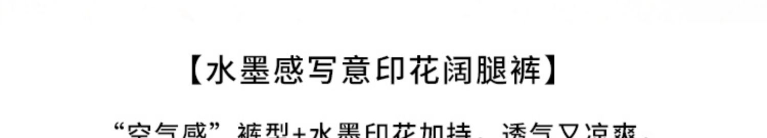【专属特价】熙世界国风复古水墨印花阔腿裤夏季薄款宽松慵懒度假垂感长裤子
