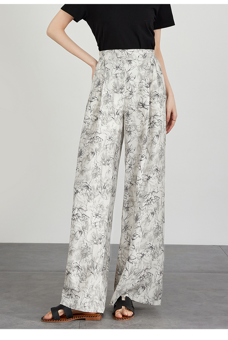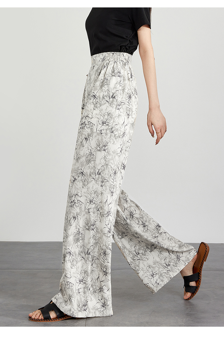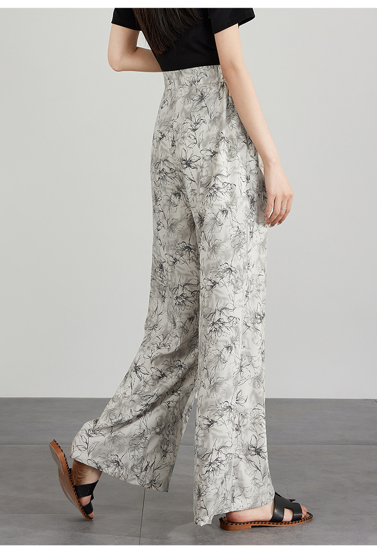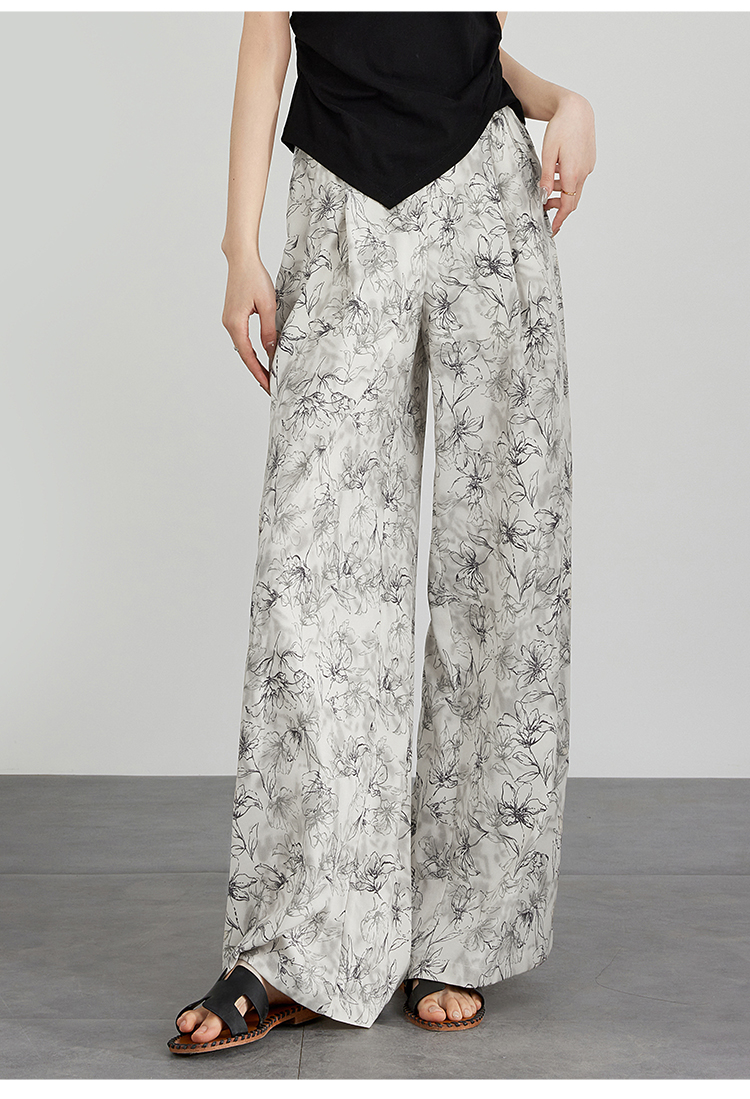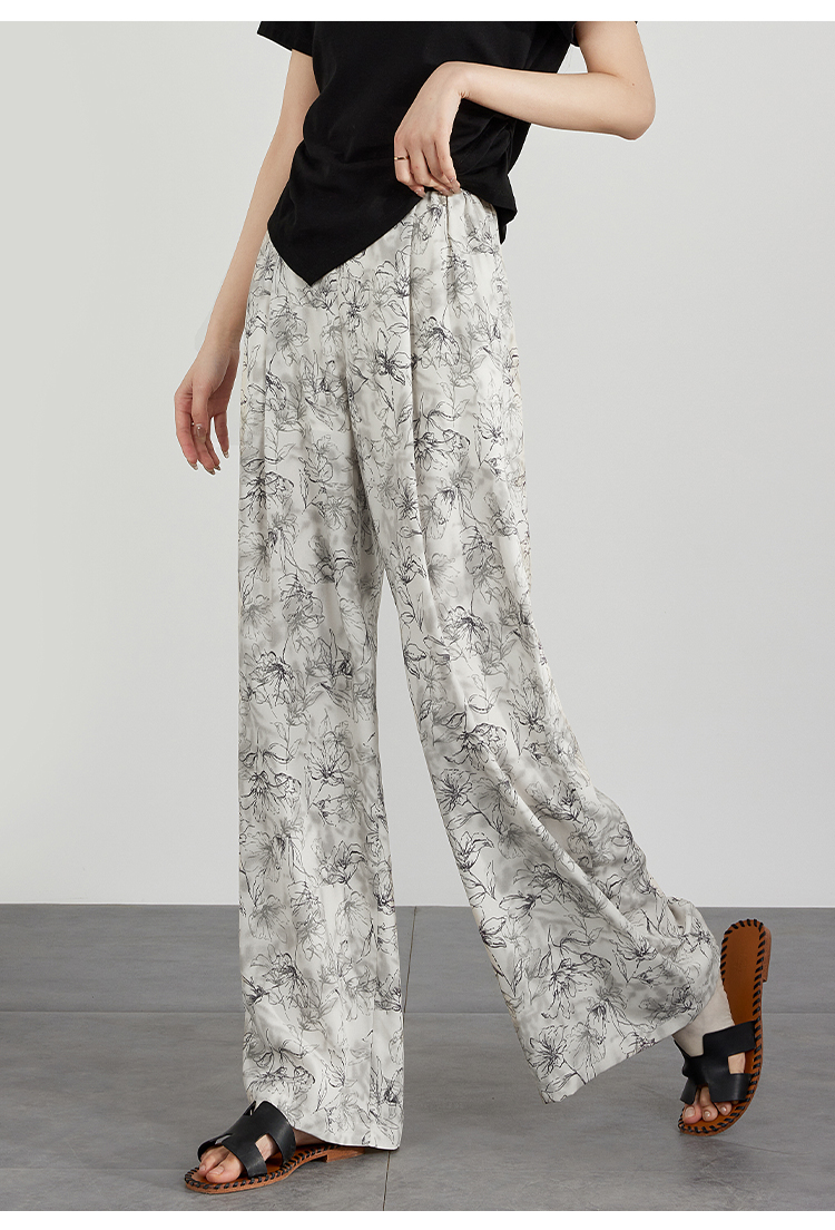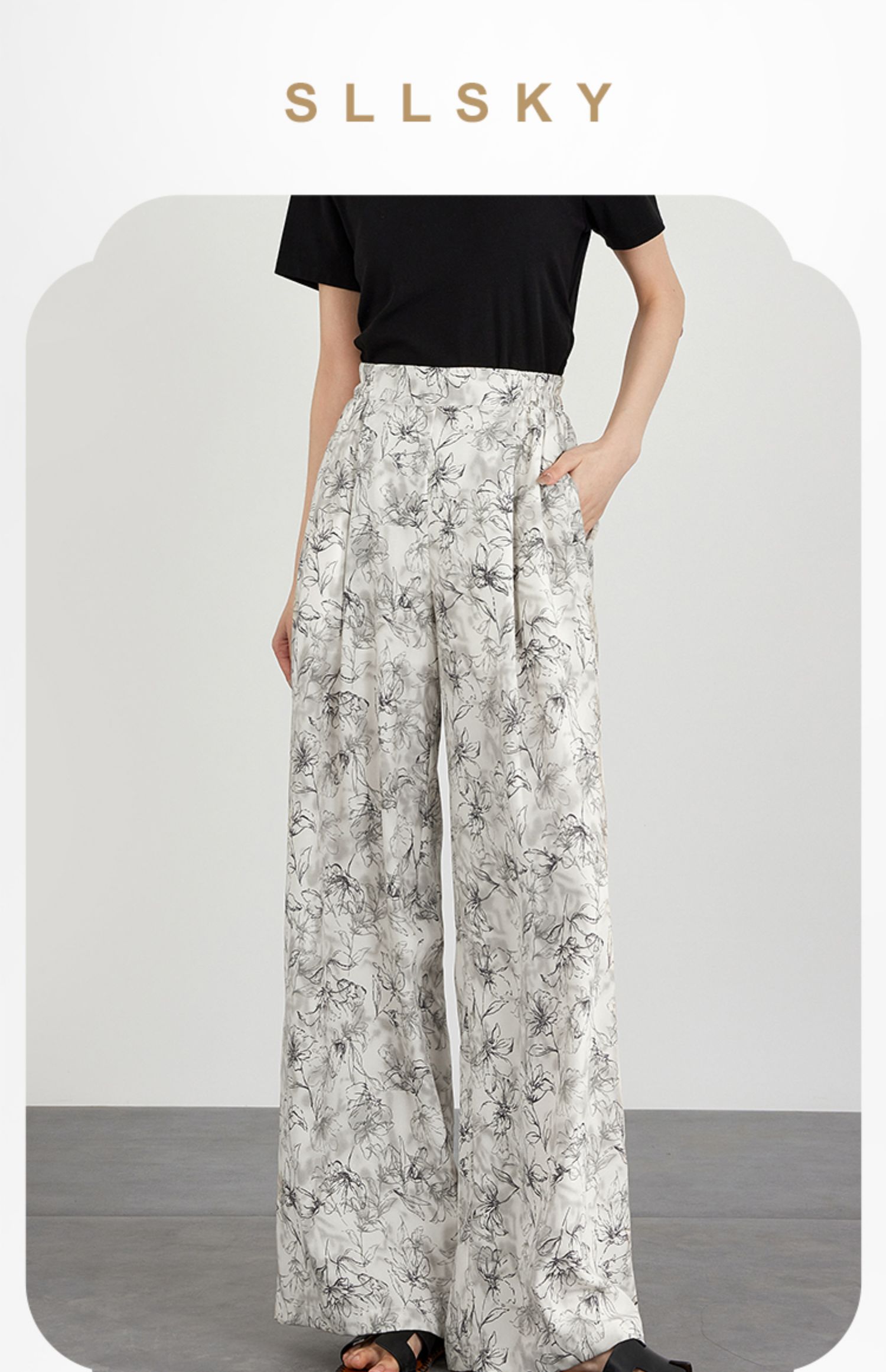 【专属特价】熙世界国风复古水墨印花阔腿裤夏季薄款宽松慵懒度假垂感长裤子
