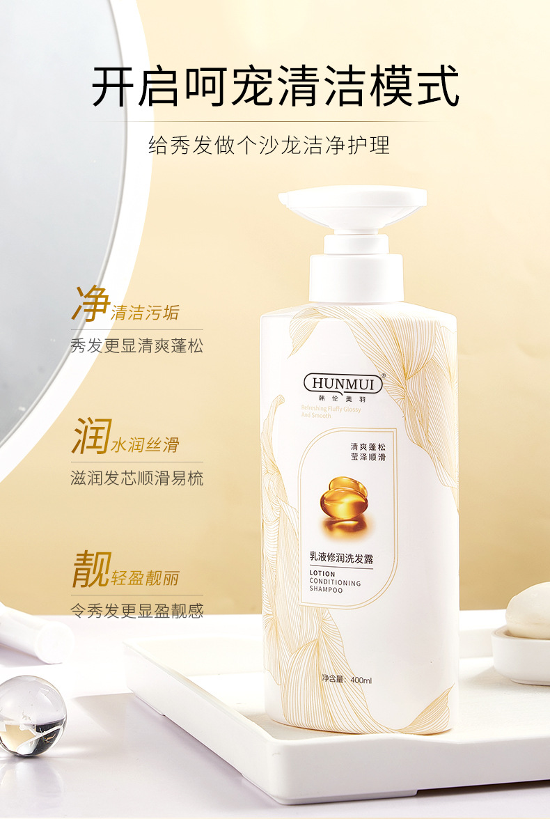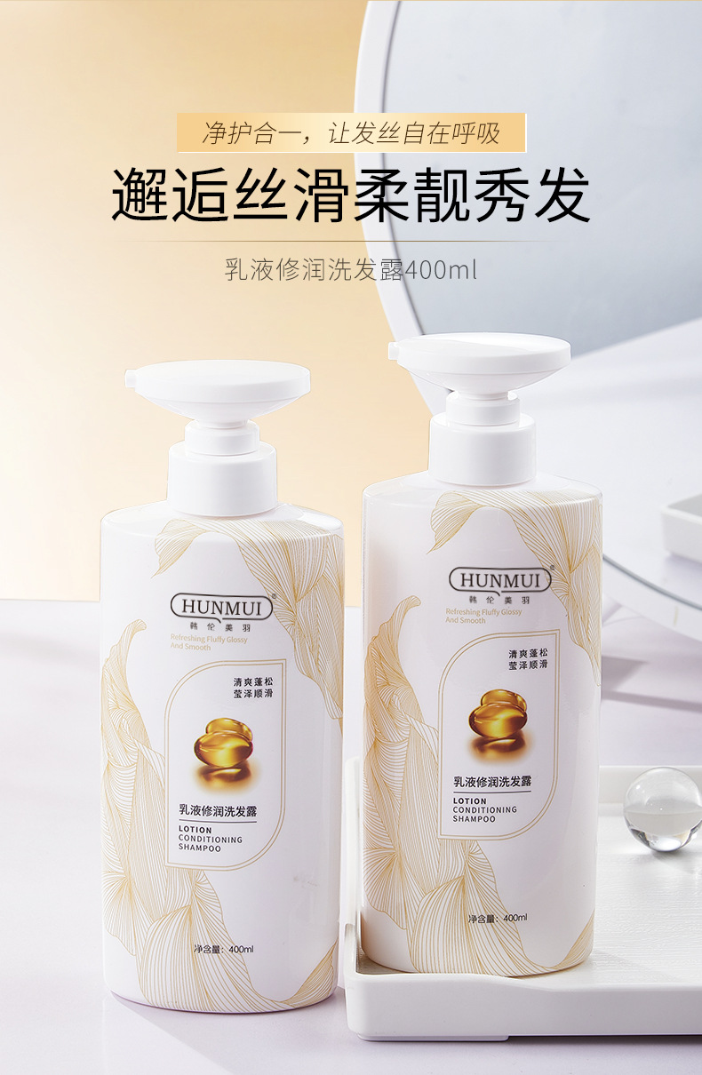 「净护合一!清爽蓬松」韩伦美羽乳液修护洗发露 抚头发毛躁柔顺发丝散发淡雅清香护发素洗发护发 商品图0