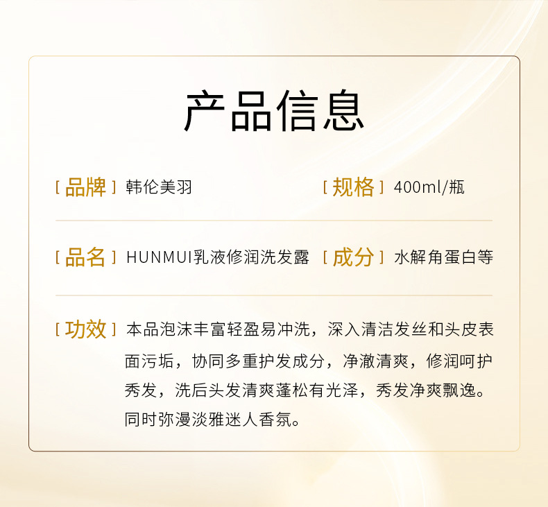 「净护合一!清爽蓬松」韩伦美羽乳液修护洗发露 抚头发毛躁柔顺发丝散发淡雅清香护发素洗发护发 商品图4