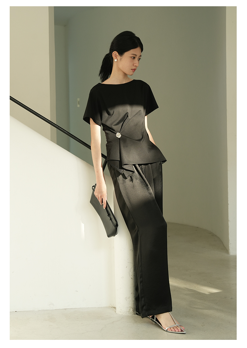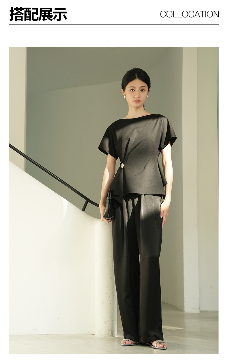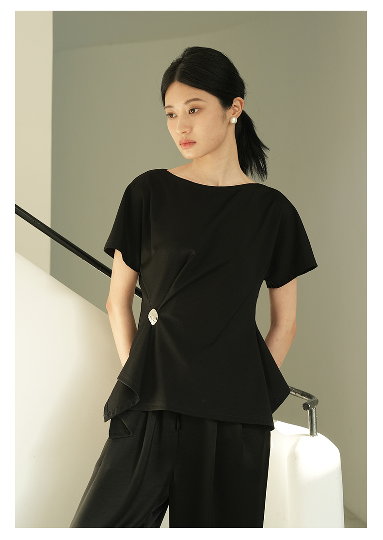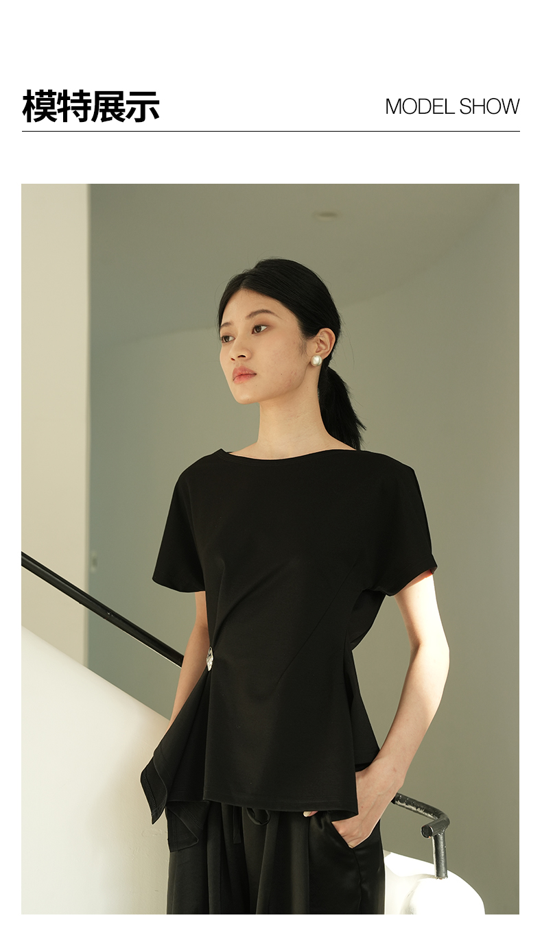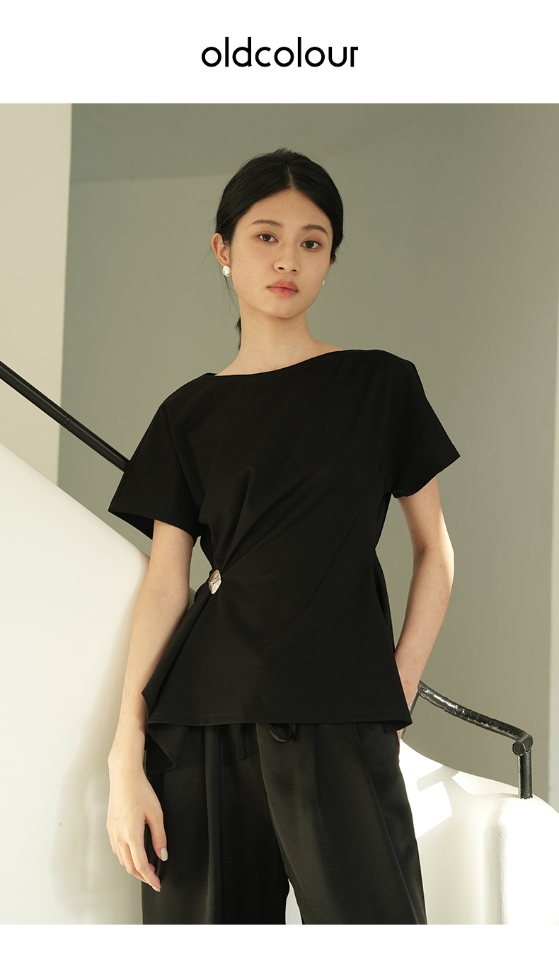 oldcolour夏季新款黑色简约时尚设计感百搭短袖T恤女Q230201A1