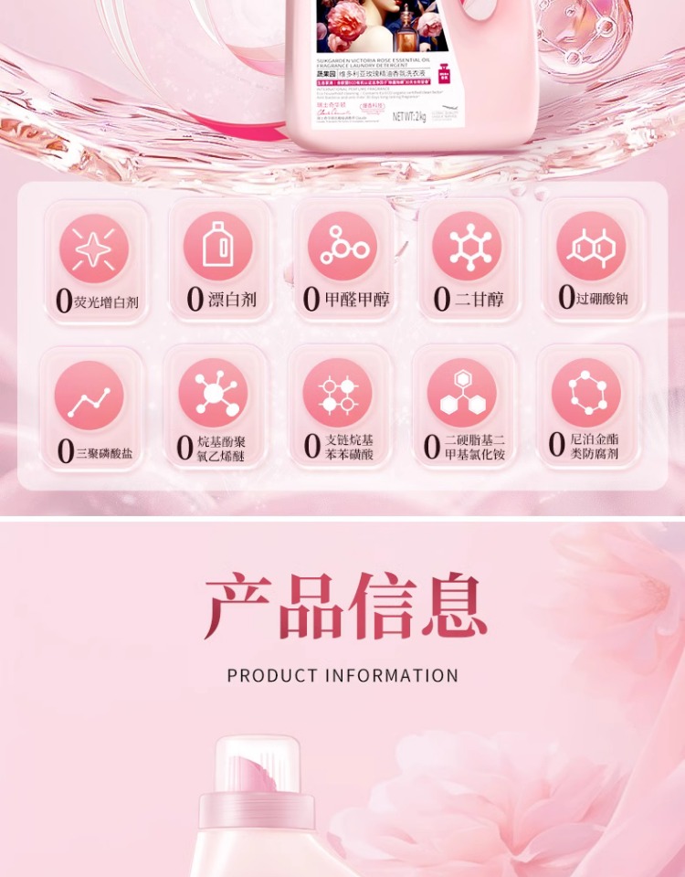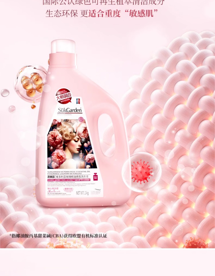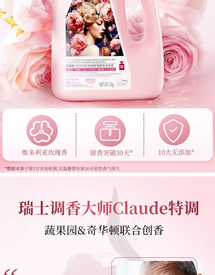 蔬果园大师调香维多利亚玫瑰精油香氛洗衣液2kg (3瓶)仅限门店自提
