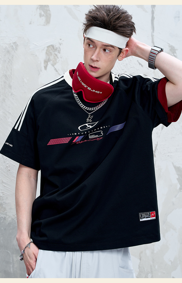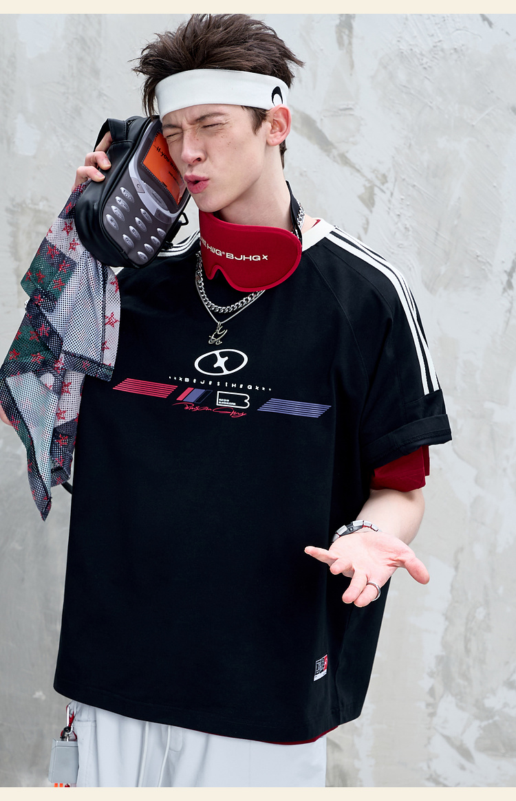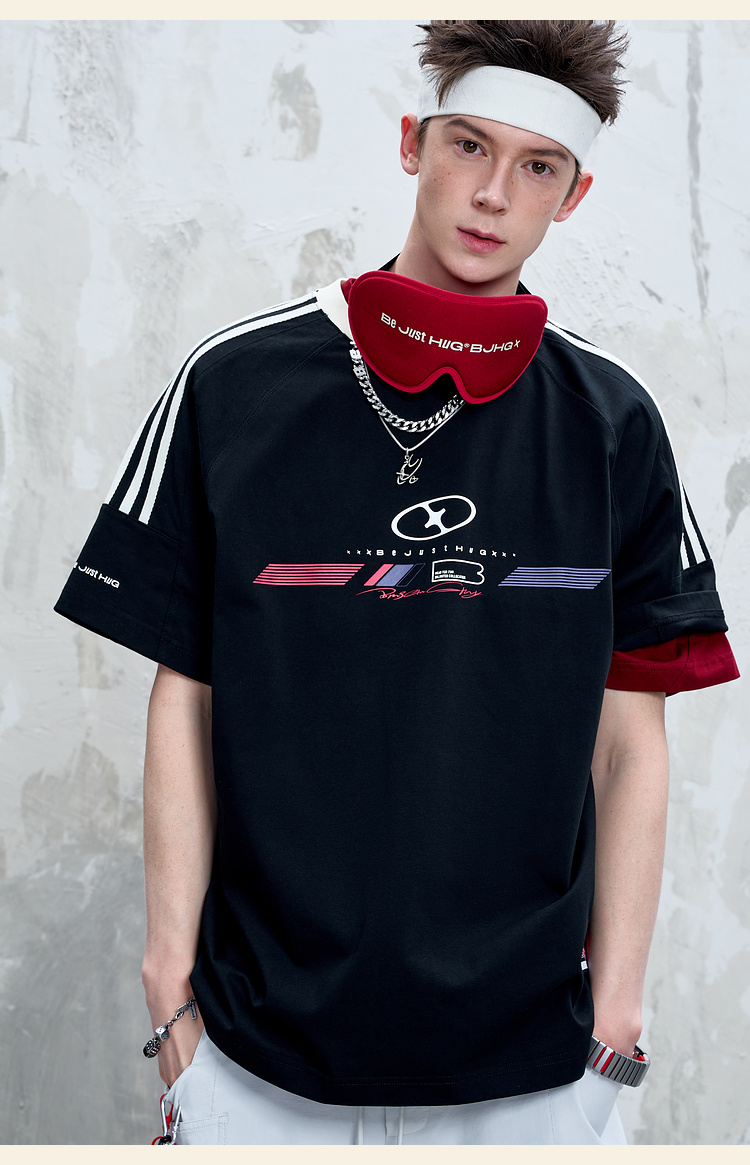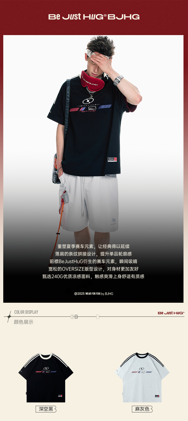 【李明峻同款】BJHG不计后果 美式复古赛车t恤短袖男款夏季潮牌凉感速干半袖T恤