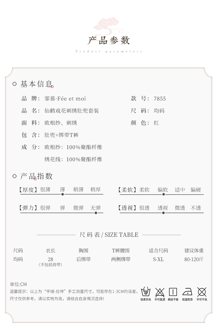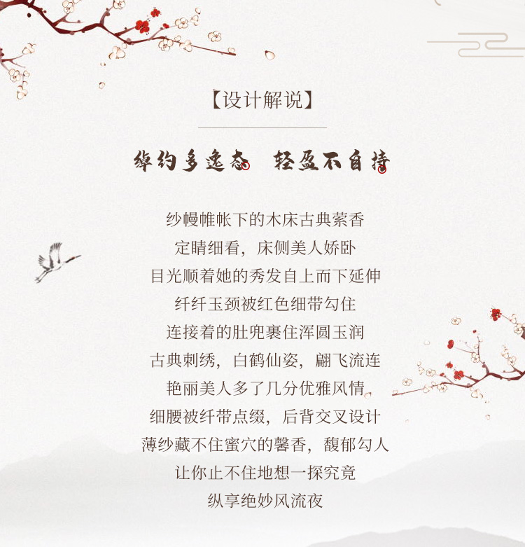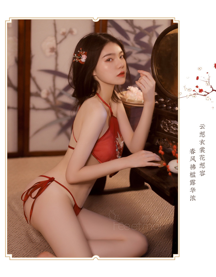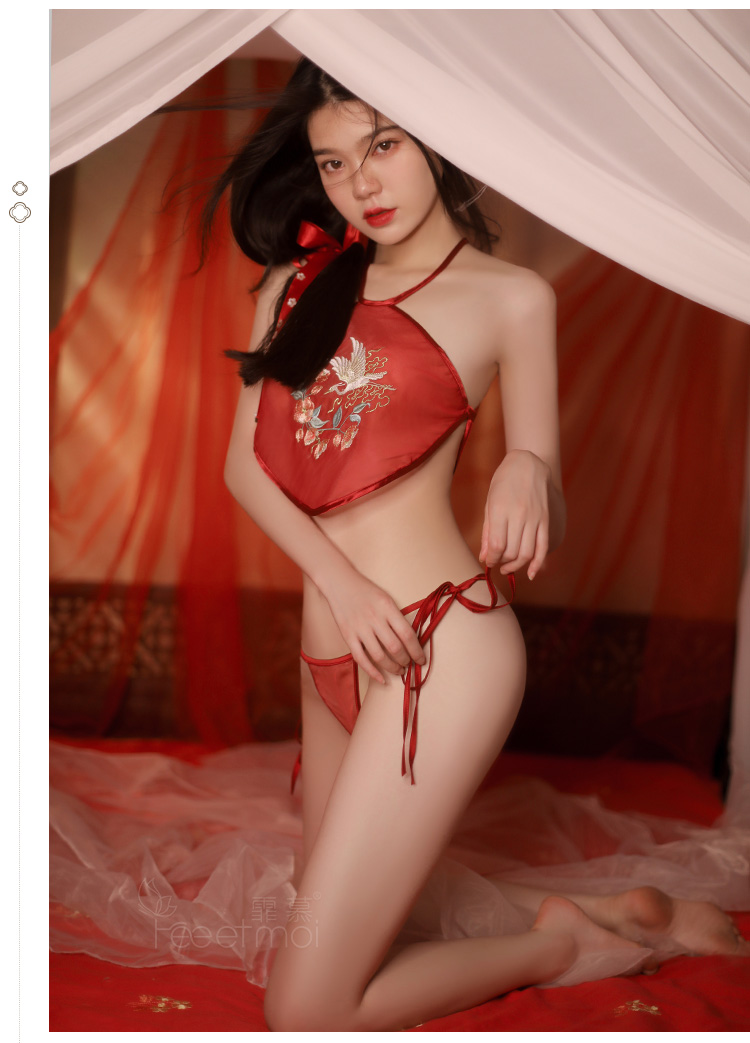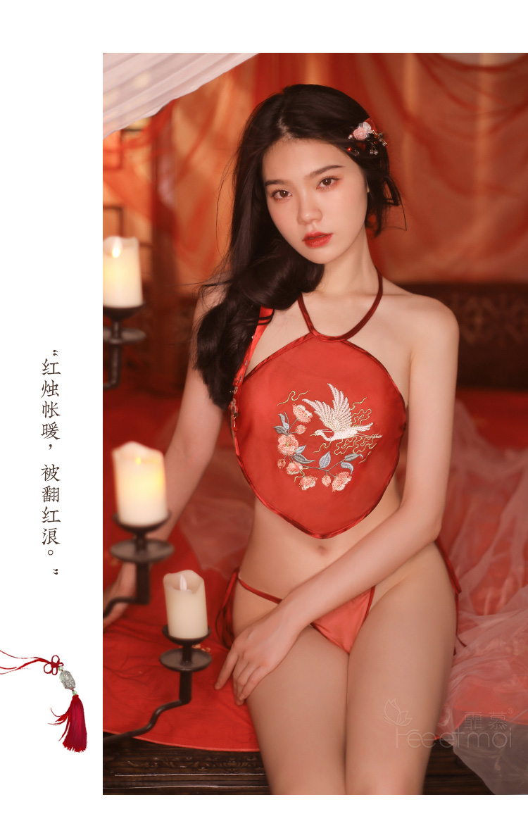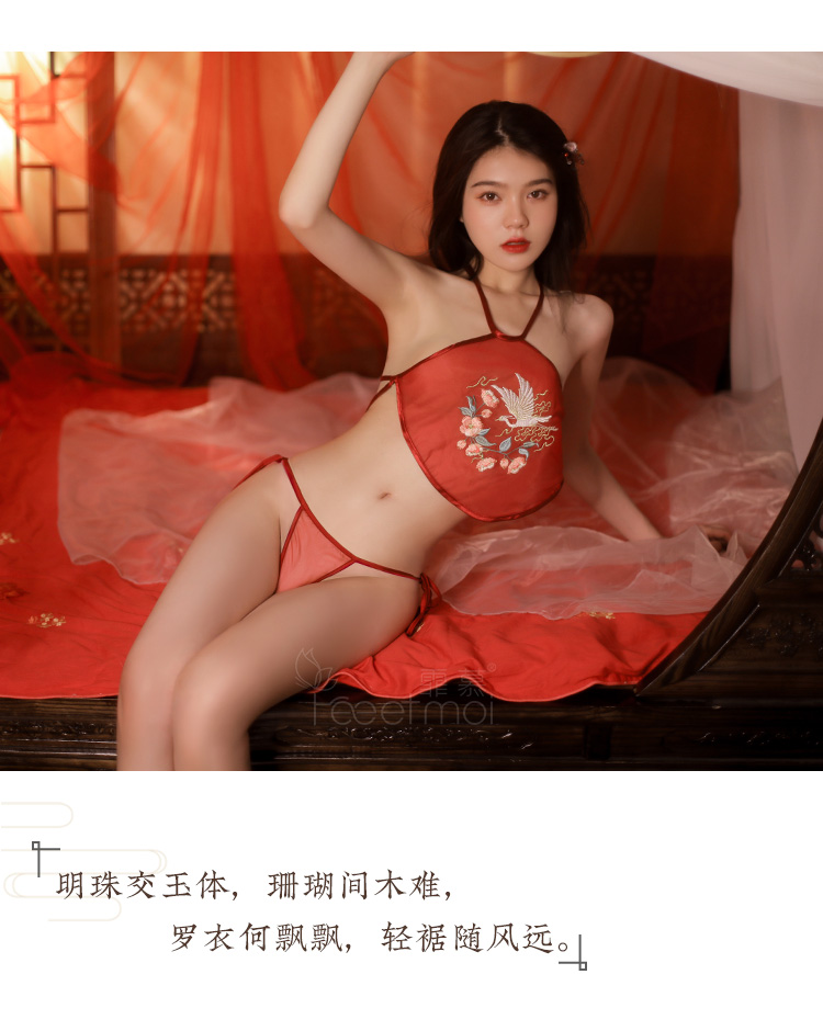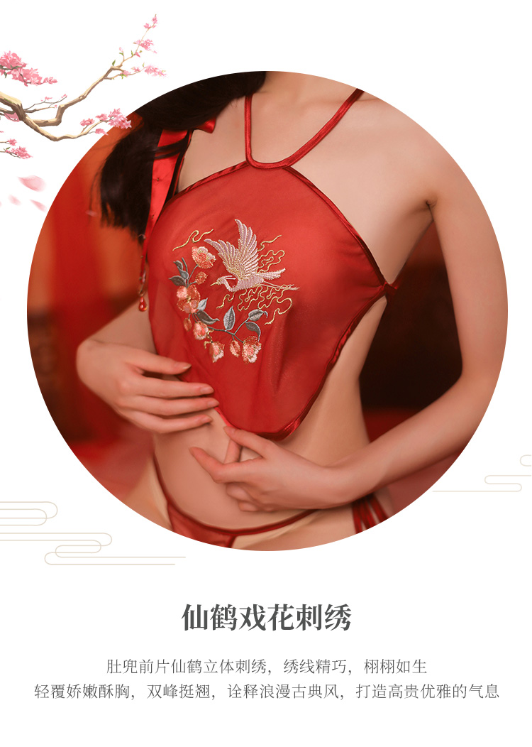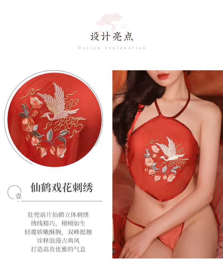 【古韵萦绕】情趣内衣 性感 仙鹤戏花刺绣 肚兜 套装 三点式 国潮风 7855