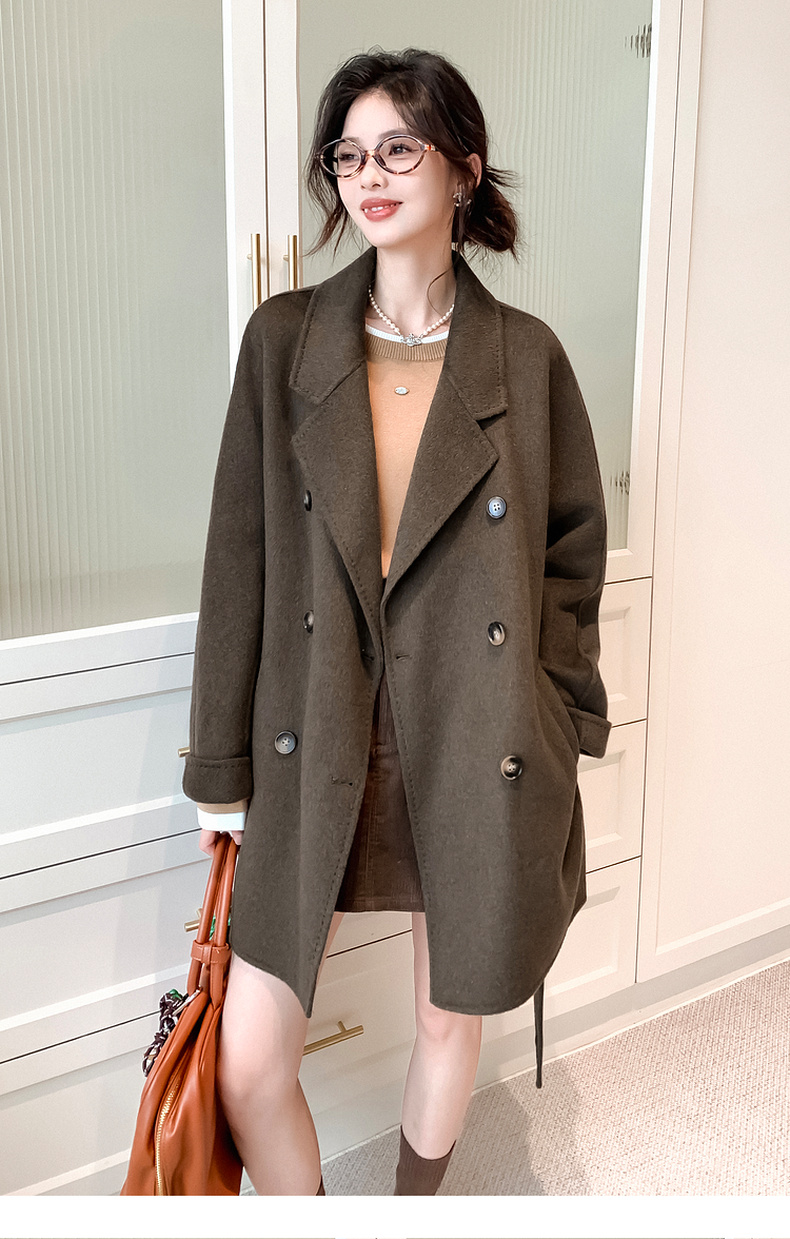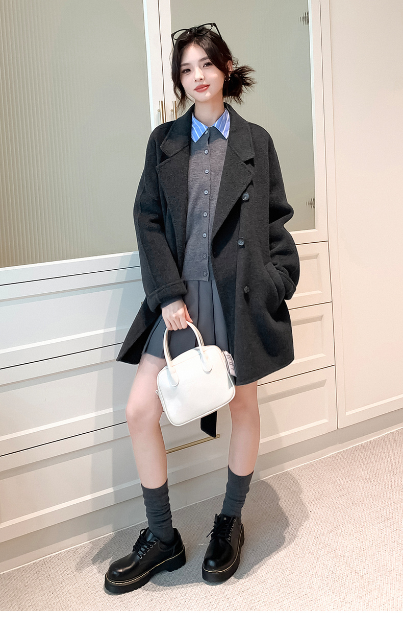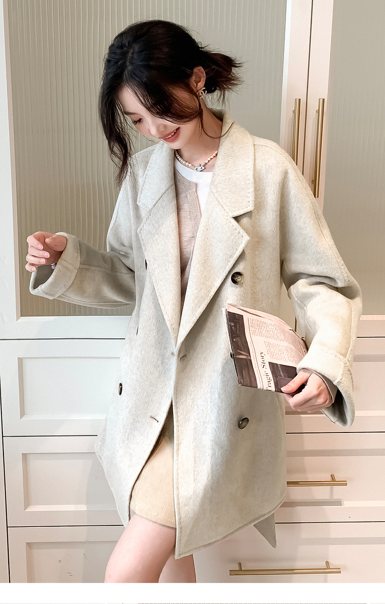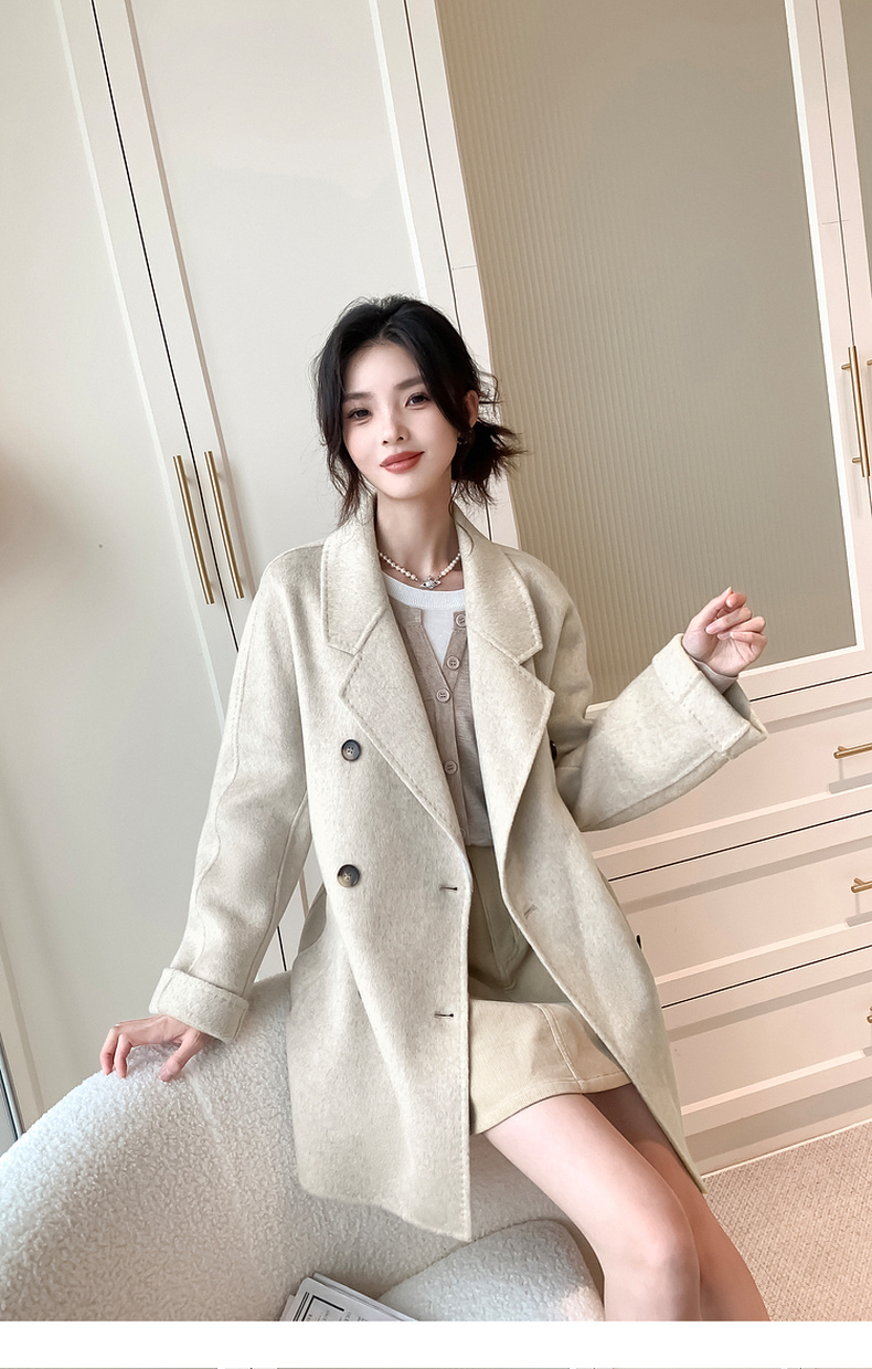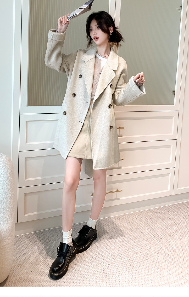 【严选】诗凡黎绵羊毛中长款西装毛呢外套24冬新款高级感小个子赫本风大衣SF7170101D